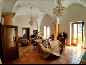 Proponiamo in vendita un antico palazzo del 1700 in posizione angolare e contrale del paese, composto da un piano terra e da un primo piano. La parte inferiore del palazzo e' composta da un locale grande di 300 mq, tutto voltato in pietra, con 8 ampie vetrine che dispongono di una bella esposizione. L'immobile nella parte superiore del locale, al primo piano dispone di un appartamento in ottime condizioni di circa 200 mq.