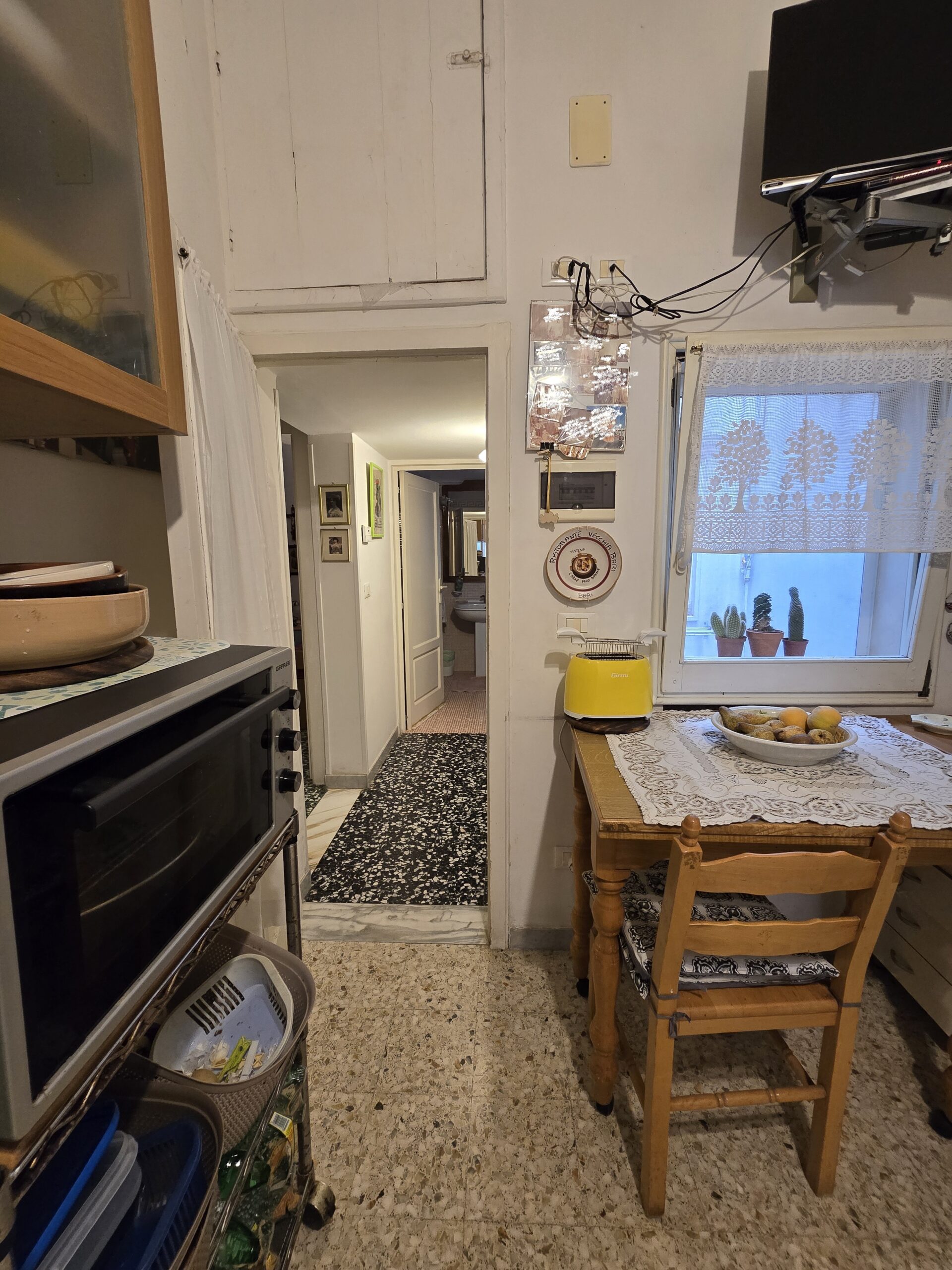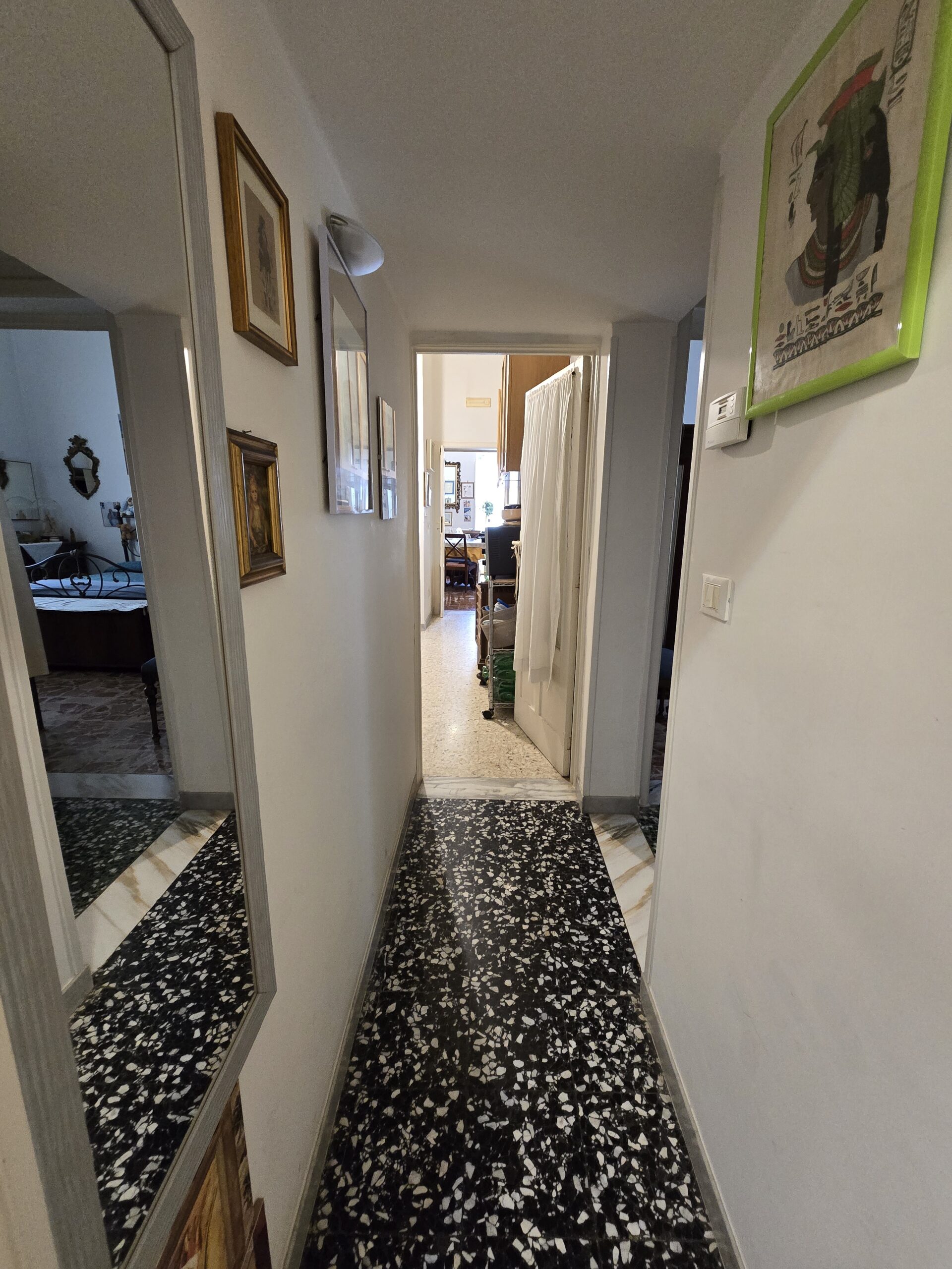 L’abitazione, spaziosa e ben distribuita, è composta da ingresso/soggiorno con balcone, cucina abitabile, ripostiglio, due ampie camere da letto, di cui una con balcone, e un bagno con doccia, ristrutturato qualche anno fa.Dotato di riscaldamento autonomo a metano, l’appartamento si distingue per la luminosità e per la posizione strategica e ben servita, vicina a negozi, uffici e tutti i principali servizi.