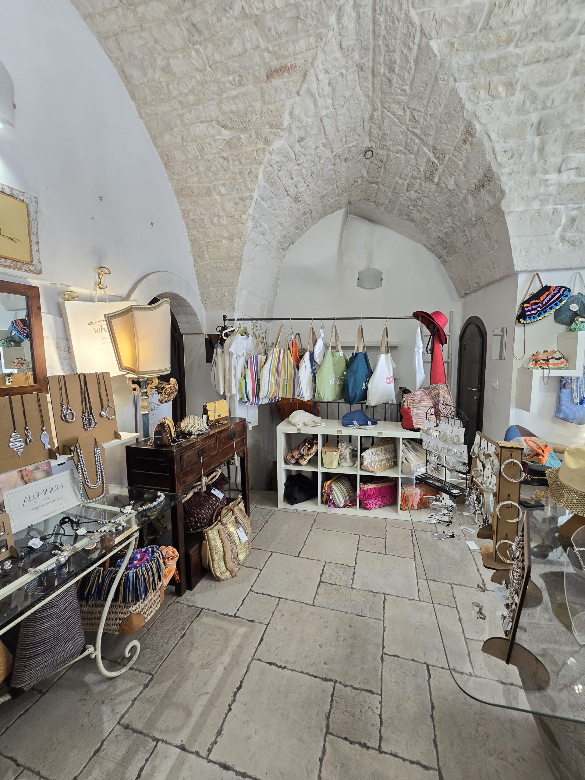 L'attivita' posta in un caratteristico locale in pietra di circa 35 mq, in ottime condizioni con pavimentazione in chianche e bellissime volte a stella con pietra a faccia vista, dispone anche di un magazzino sotteraneo di circa 15 mq.