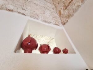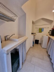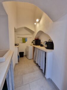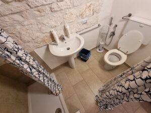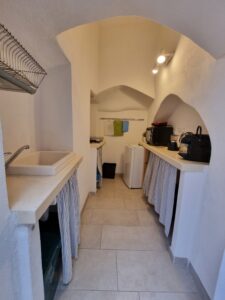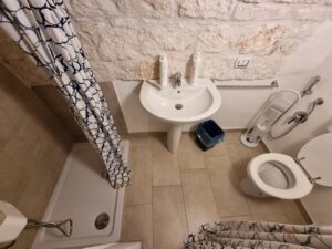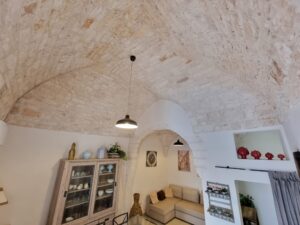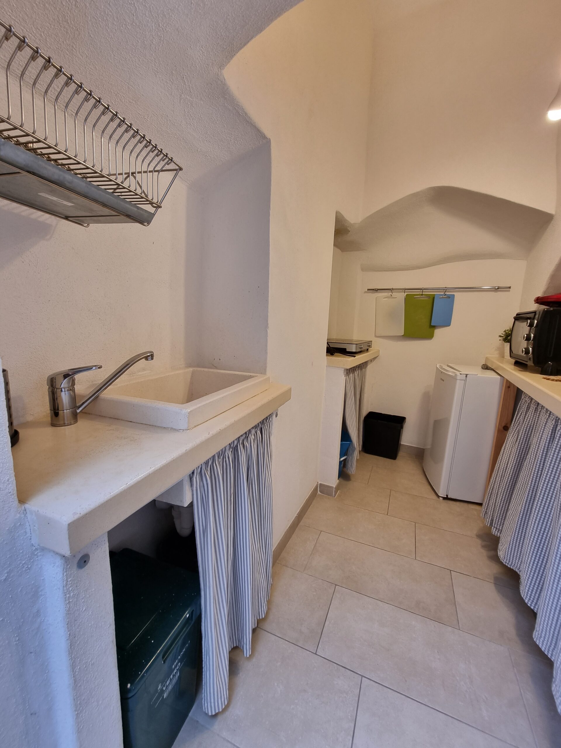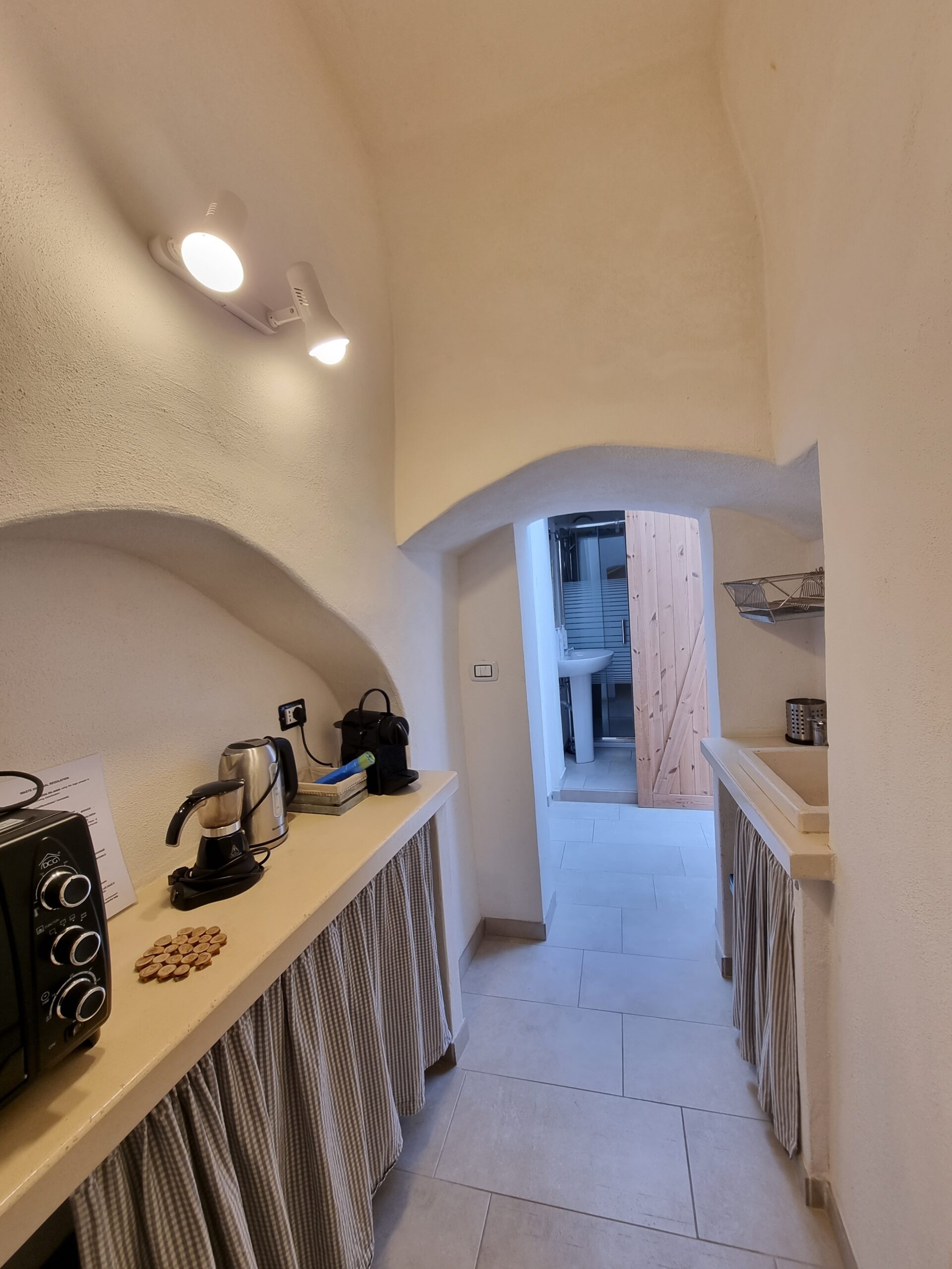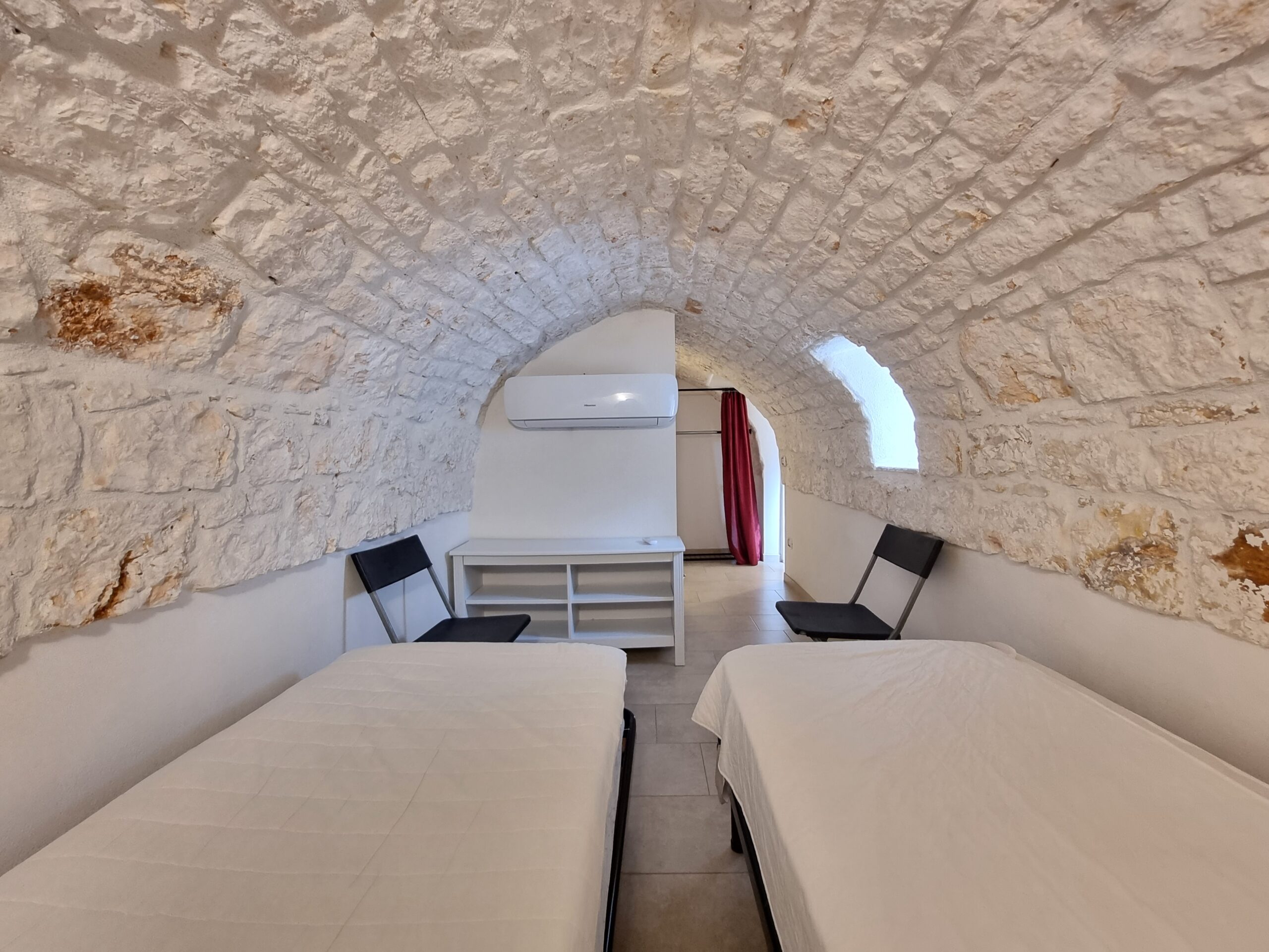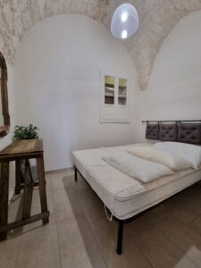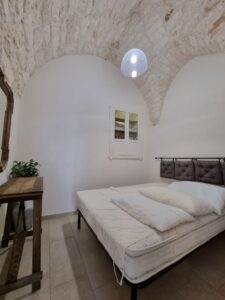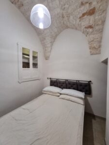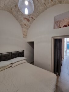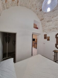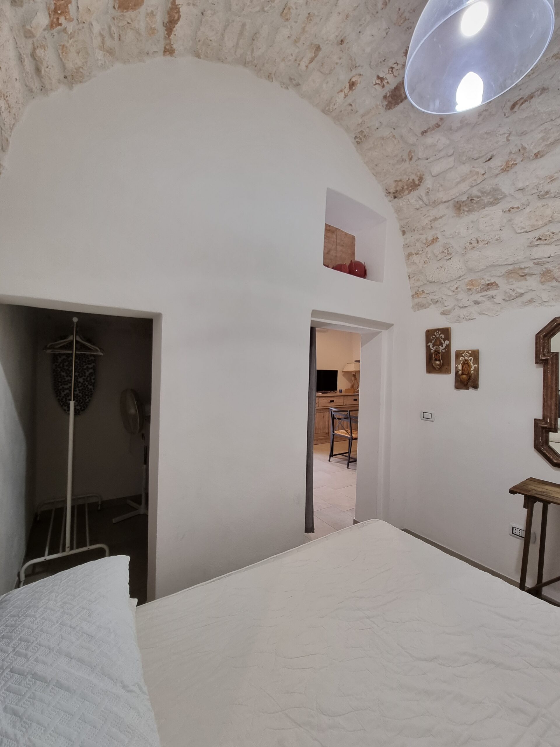 Al secondo livello troviamo un'altra stanza da letto con volta a botte in pietra faccia vista e un altro bagno con doccia.