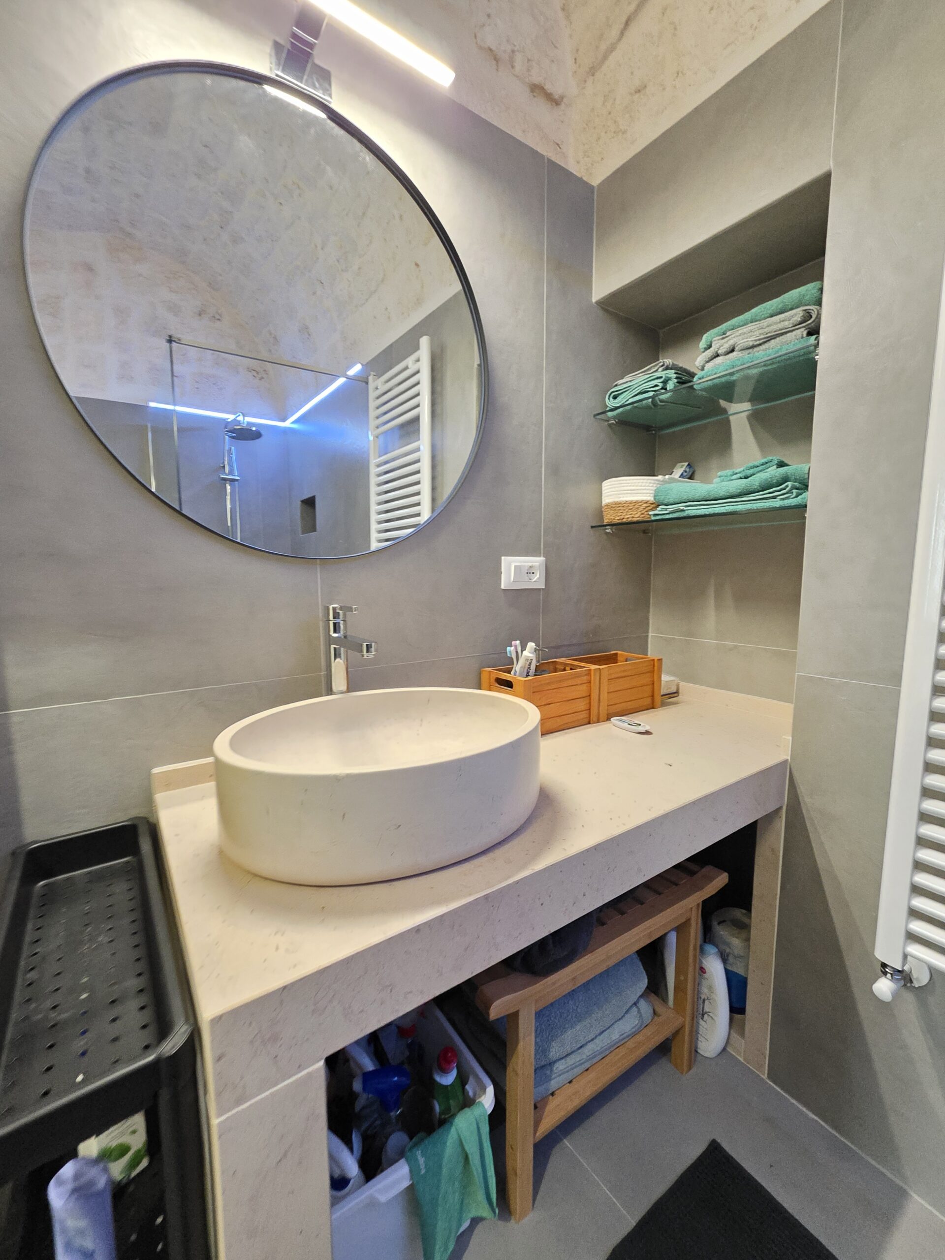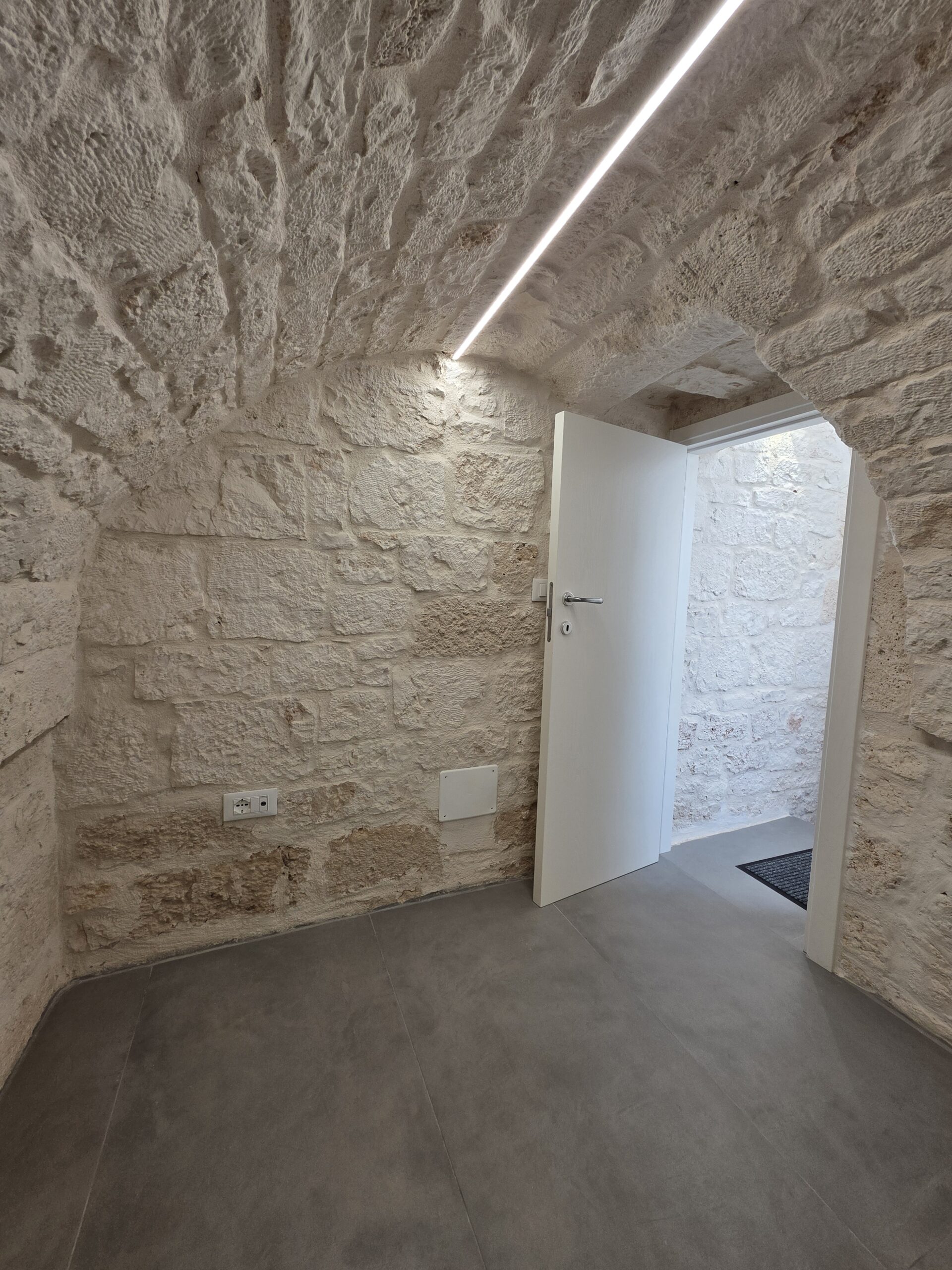 Proponiamo in vendita una bellissima casa in pietra, risalente ai primi dell’Ottocento, abitazione completamente ristrutturata, dove il fascino antico incontra il comfort moderno. Al primo piano ti accoglie una calda sala con balcone, impreziosita da un' alcova in pietra a vista, perfetta come zona notte. Il bagno, elegante e contemporaneo, offre una doccia con luci cromoterapiche per un’esperienza di totale relax. Il cucinino, realizzato con cura artigianale, vanta un piano in marmo, piano a induzione e mobili in legno su misura, creando un ambiente unico e funzionale. Salendo al livello superiore, un comodo ripostiglio anticipa una stanza aggiuntiva – un tempo magazzino – che conduce al lastrico solare di 30 mq da cui si gode una piacevole parzìziale vista mare. Dotata di aria condizionata e riscaldamento autonomo a metano, la casa mantiene in ogni ambiente le sue splendide volte in pietra a faccia vista, che raccontano storie di un tempo passato pur regalando un’eleganza senza tempo. Un rifugio autentico, luminoso e ricco di charme: la perfetta fusione tra storia e comfort moderno.
