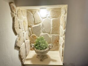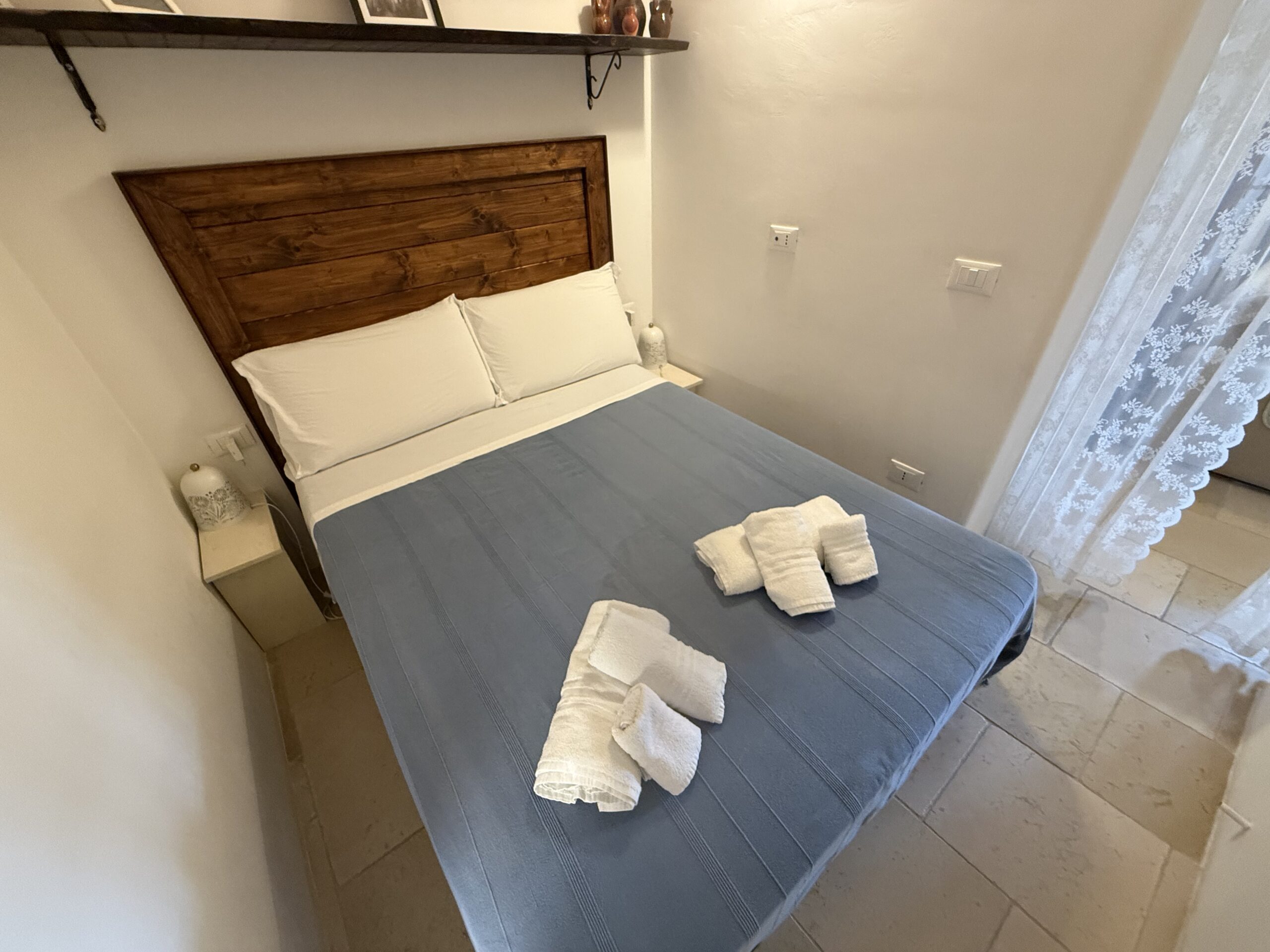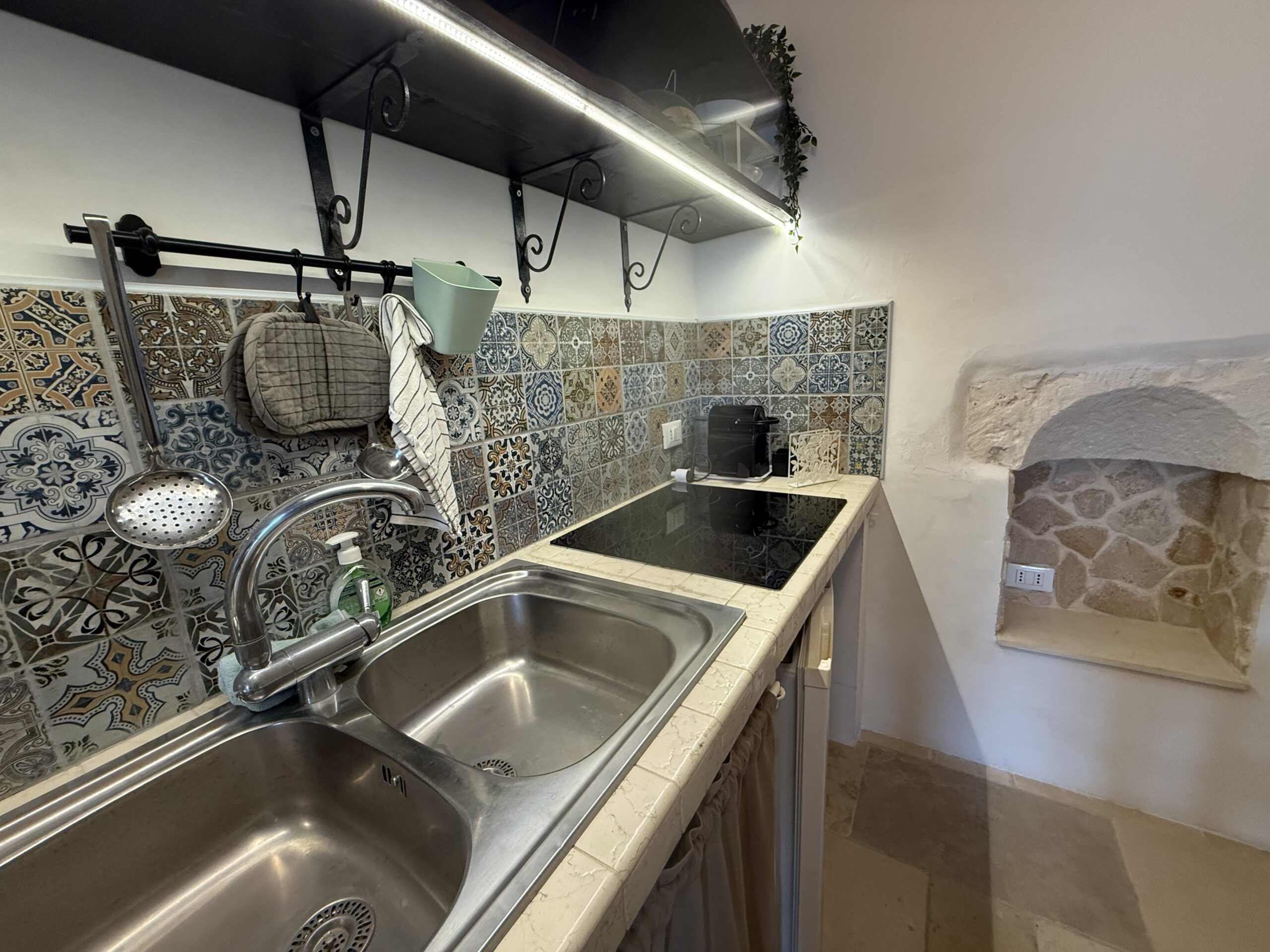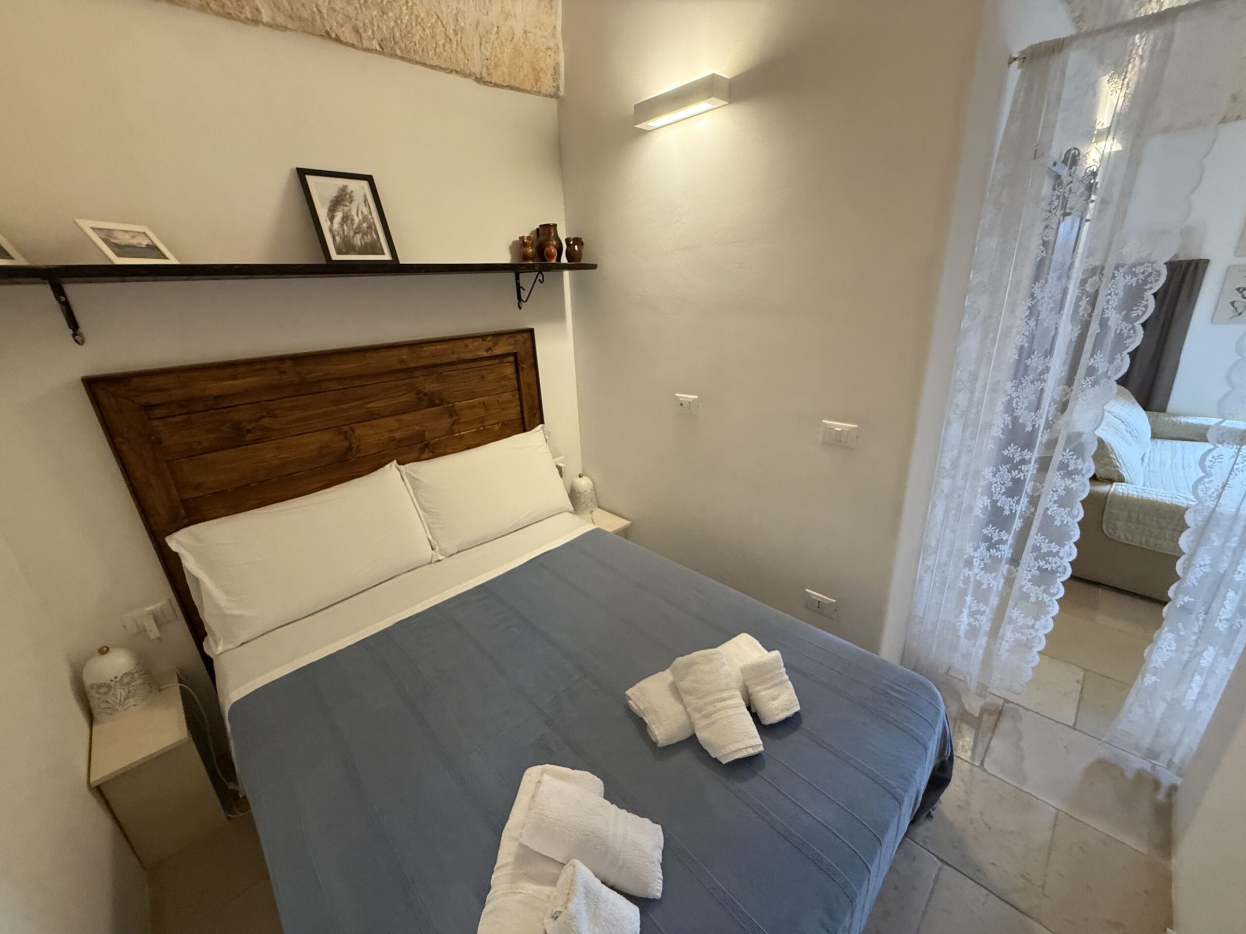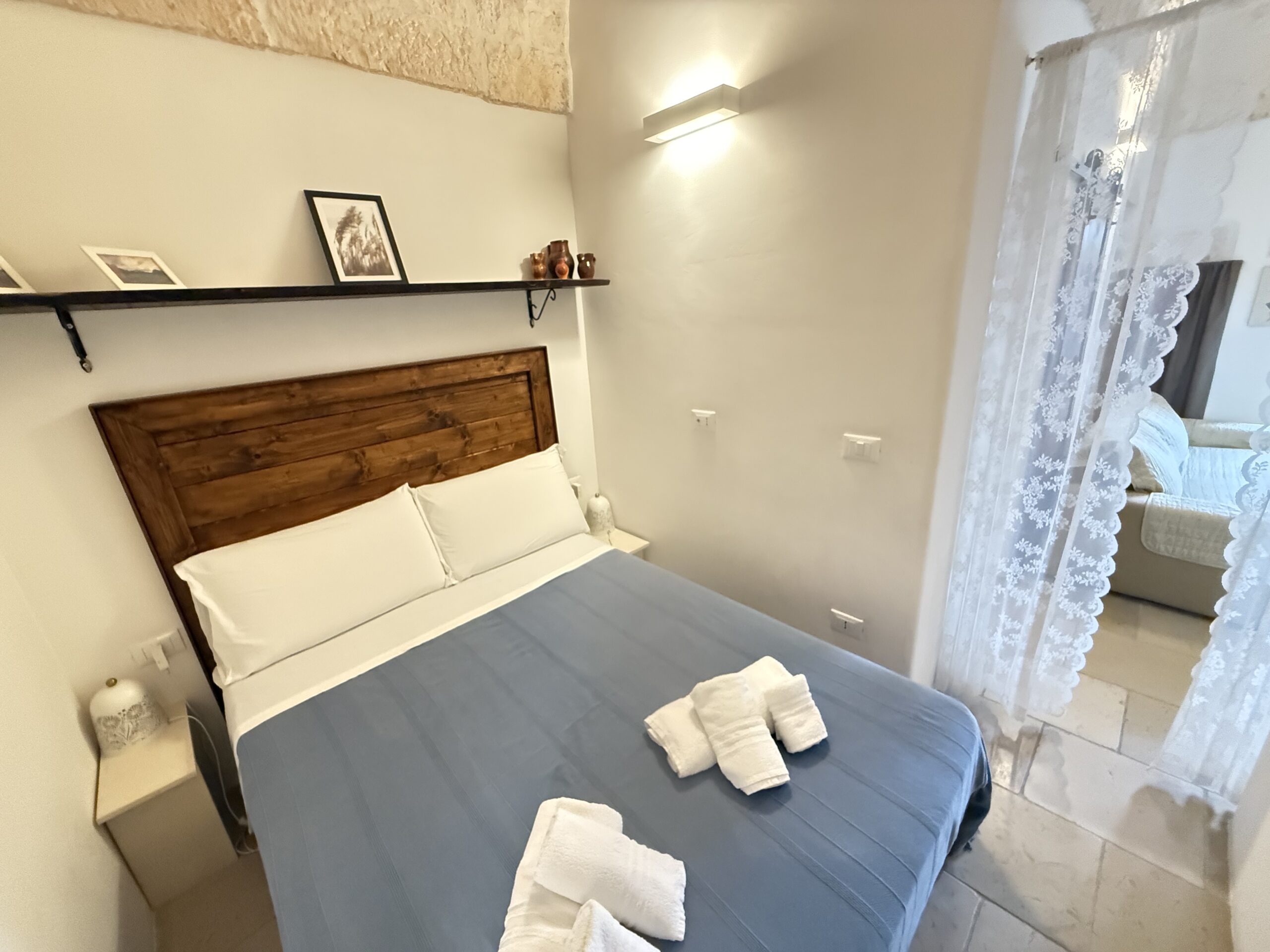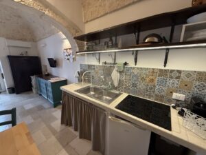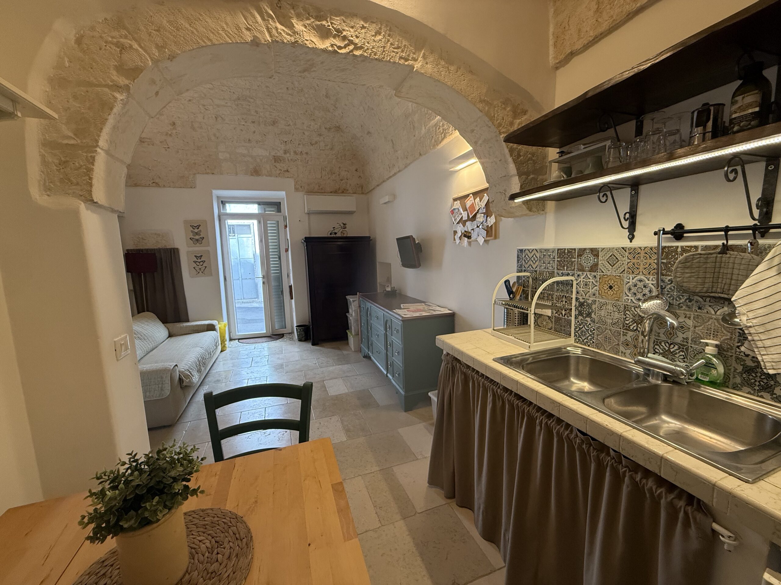 L’abitazione, di circa 35 mq, è composta da una sala con suggestive volte in pietra a faccia vista, un’alcova in cui è stato realizzato un pratico cucinino, una piccola camera da letto e un bagno con doccia. L’immobile è dotato di condizionatore, predisposizione per il riscaldamento e vespaio.