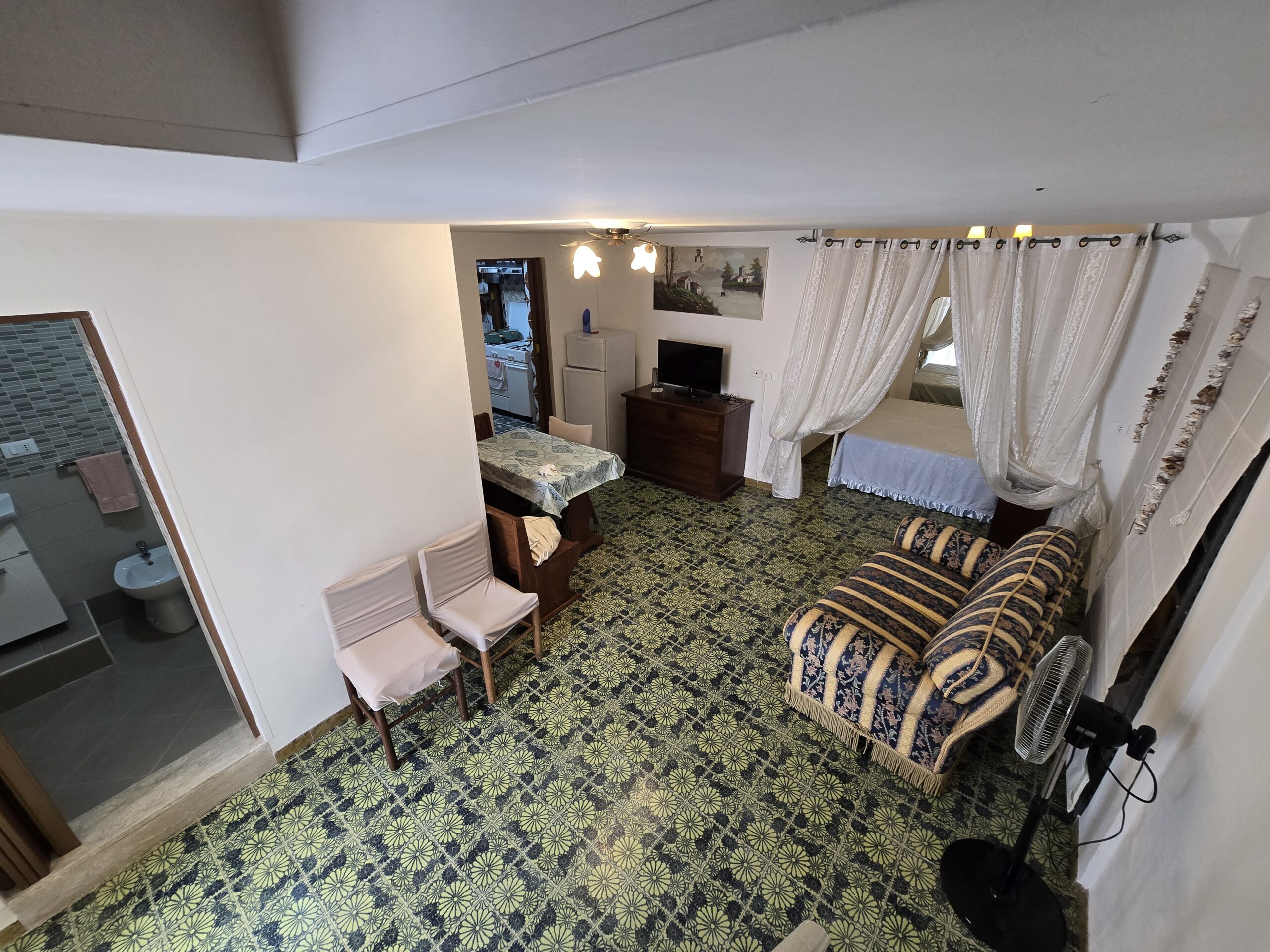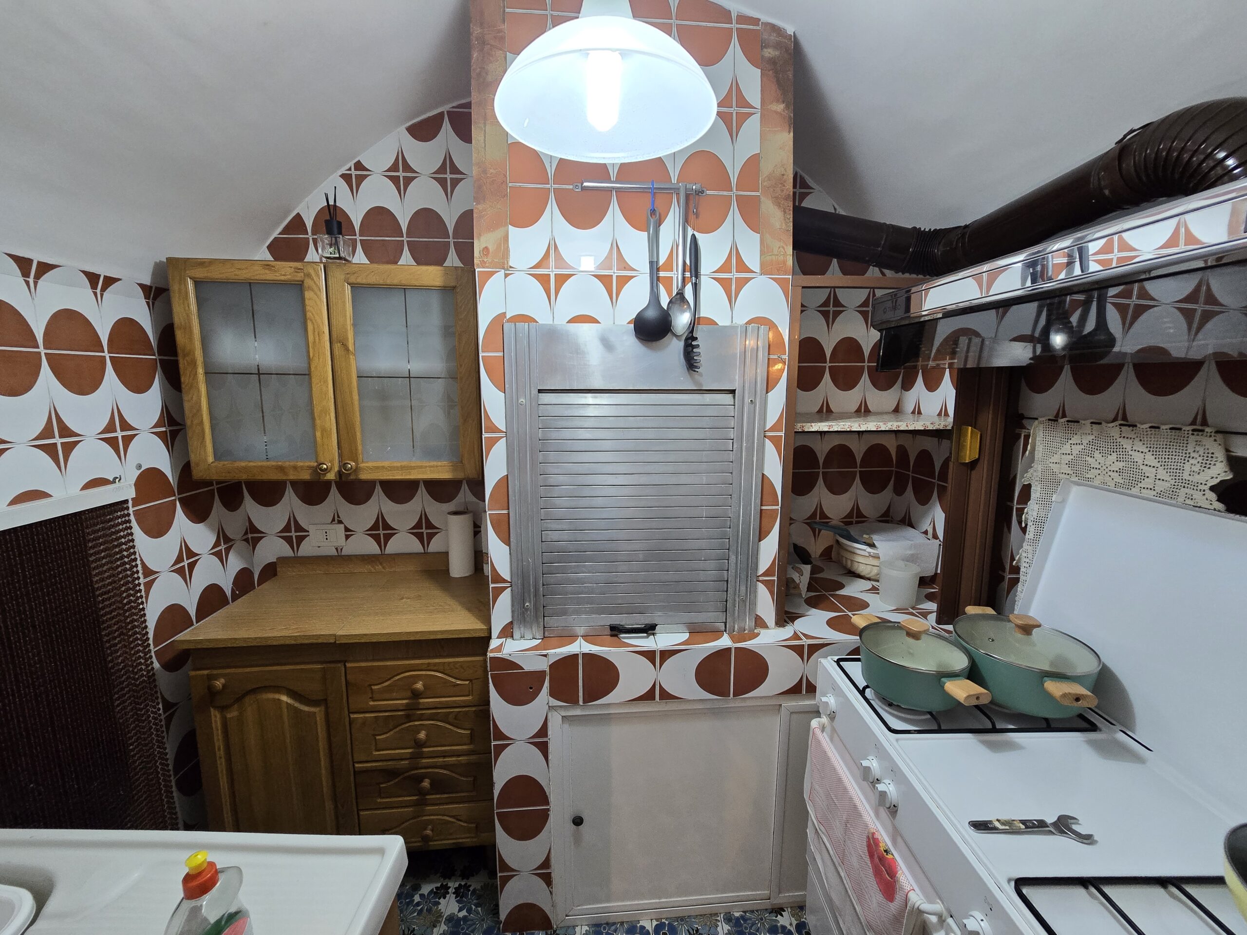 L'abitazione posta al piano terra dispone di 40 mq e' composta da un grande vano d'ingresso, un'alcova con una bella volta a stella, un cucinino con un bel caminoed un bagno ristrutturato recentemente . Al piano sovrastante vi e' un sopplaco, creato negli anni '80, con la camera da letto di oltre 30 mq con caratteristica finestra medievale ed una meravigliosa volta a stella .