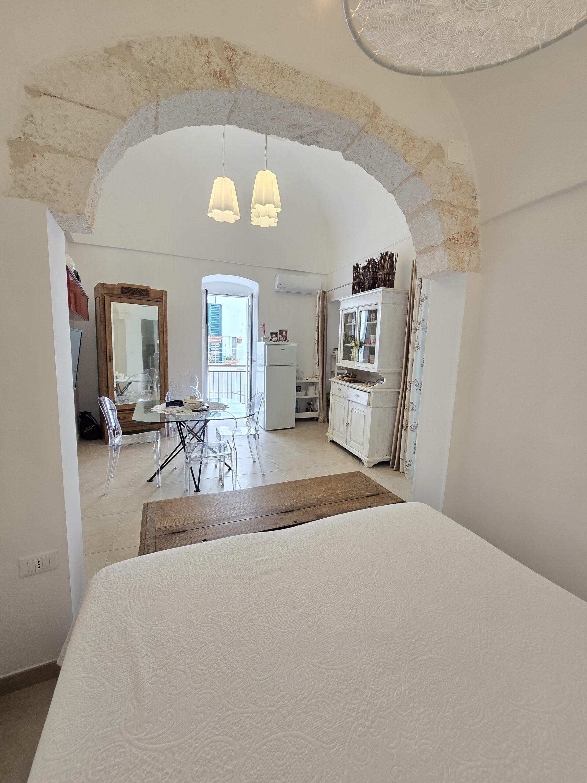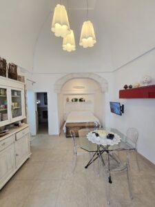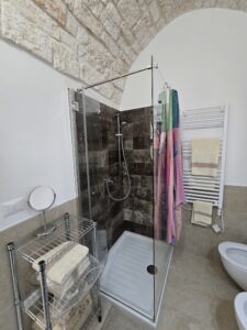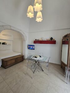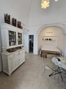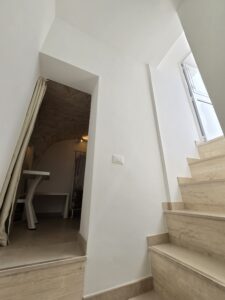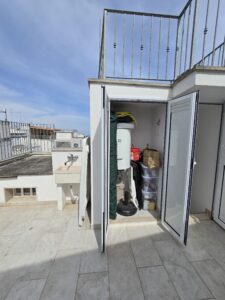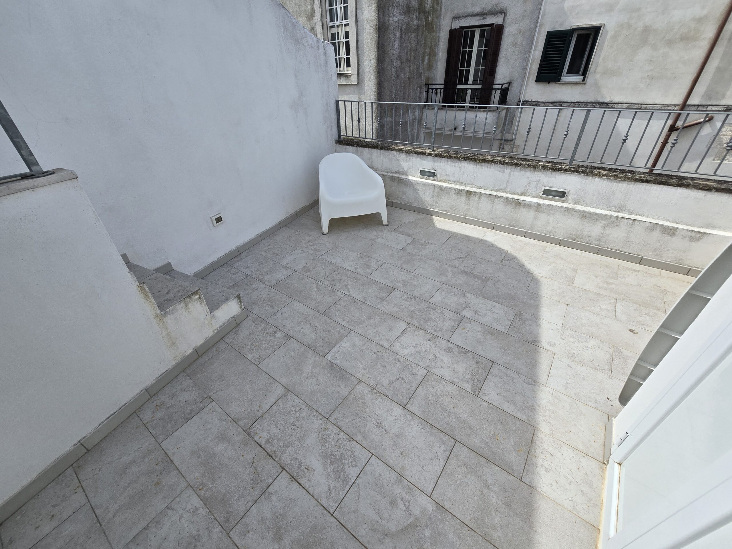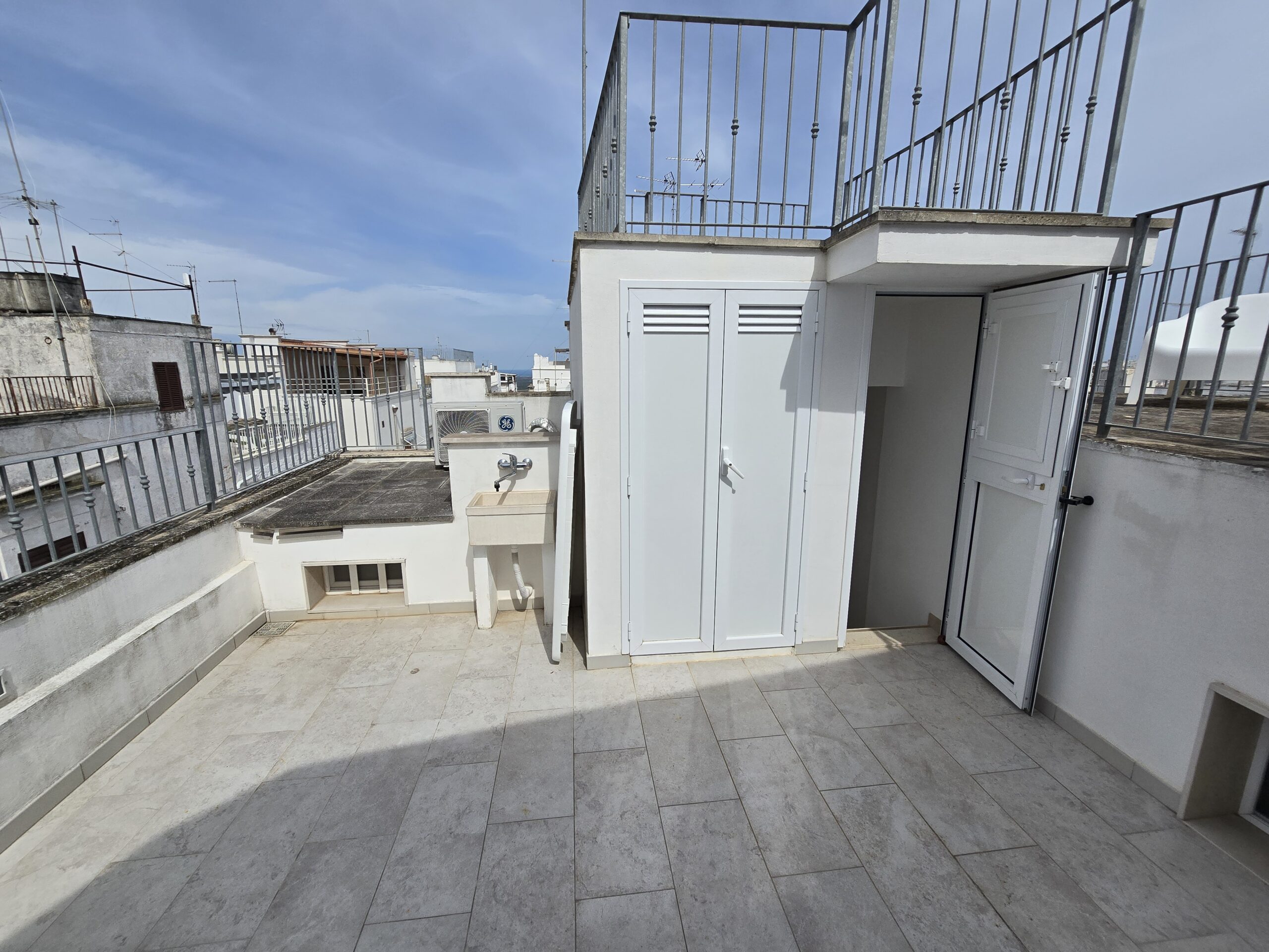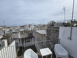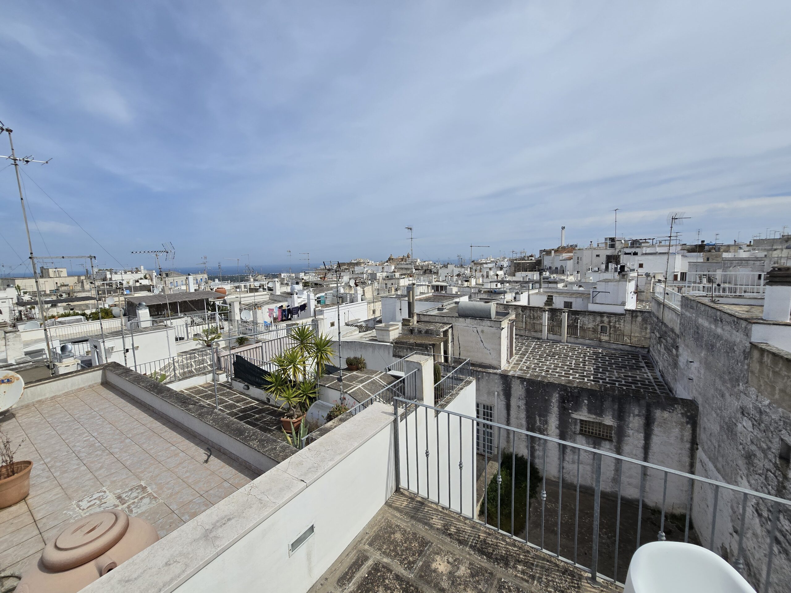 Dispone di un bel terrazzo che si sviluppa su 3 livelli differenti da dove si gode un bel panorama sulla Marina di Ostuni ed il Centro Storico.