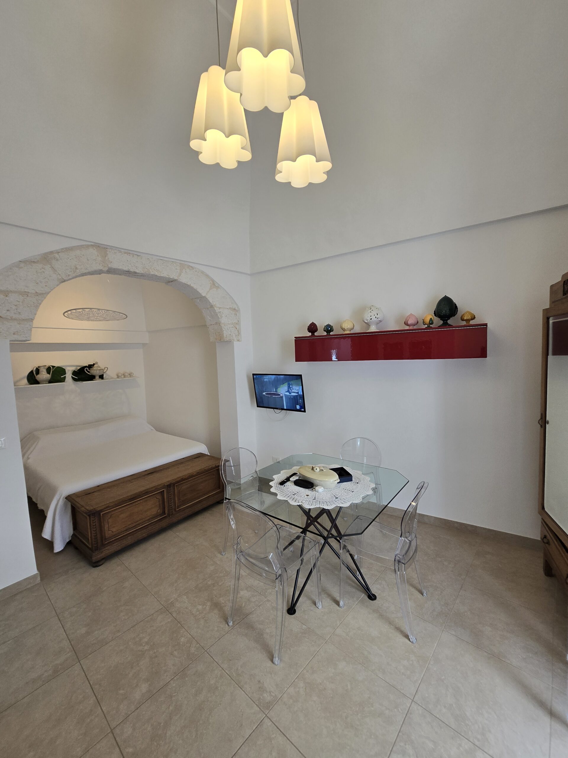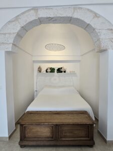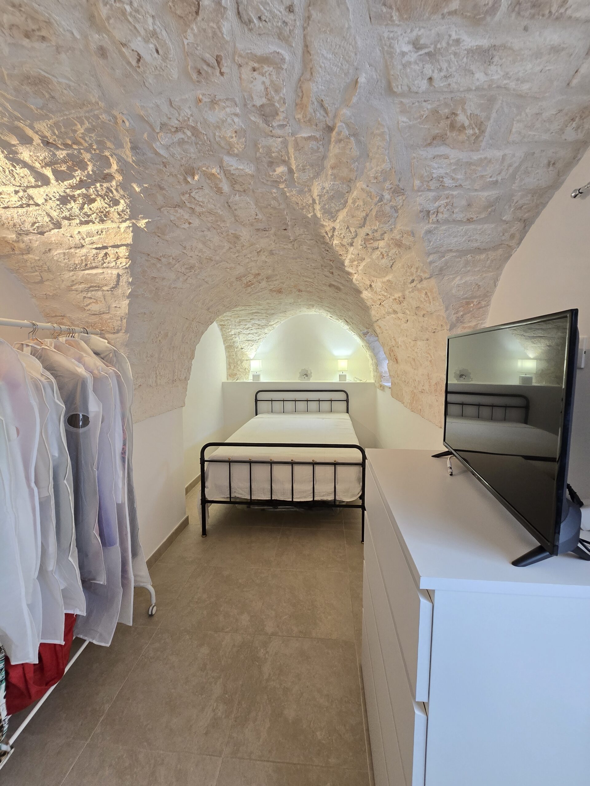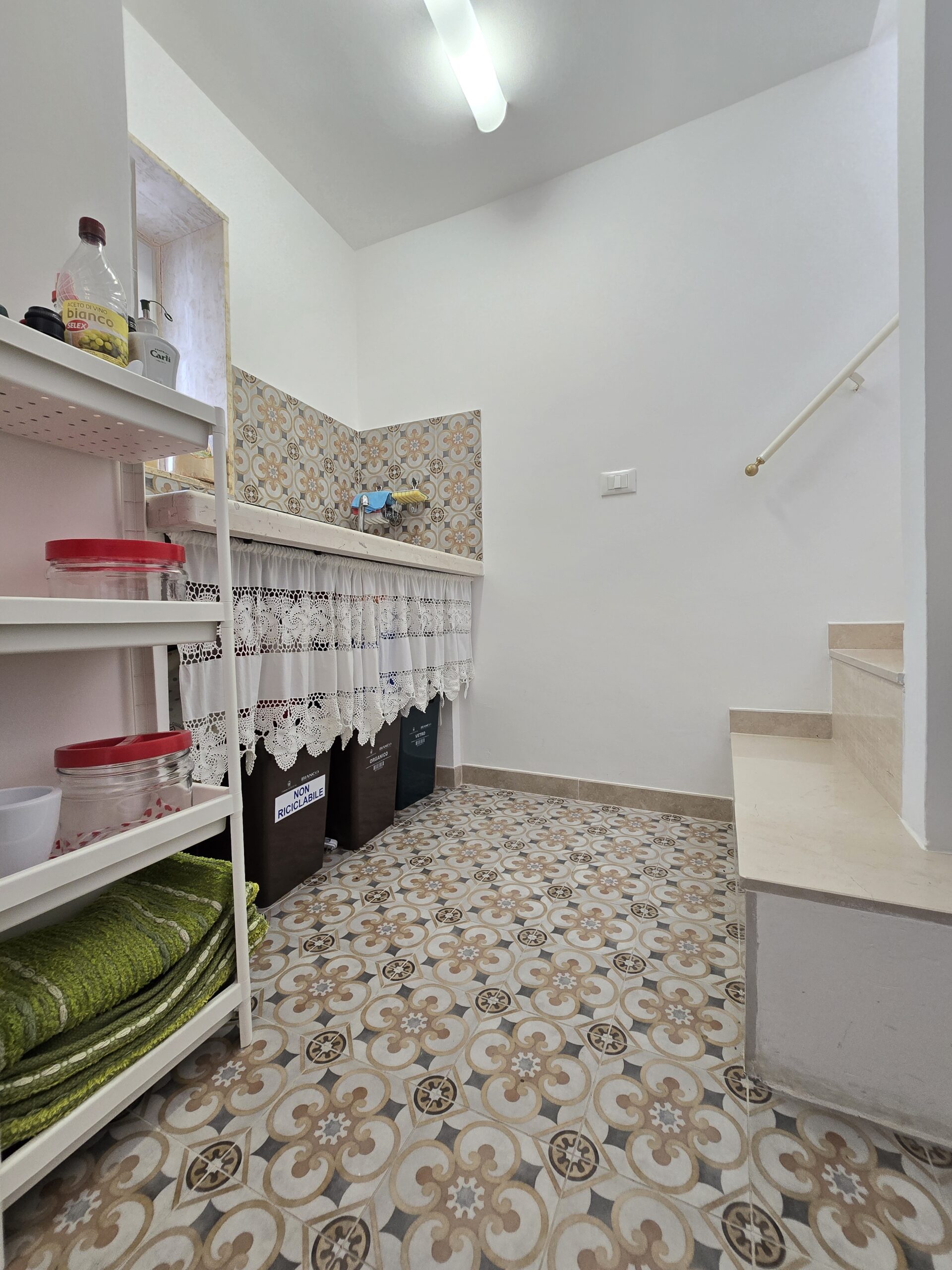 Dispone di un bel terrazzo che si sviluppa su 3 livelli differenti da dove si gode un bel panorama sulla Marina di Ostuni ed il Centro Storico.