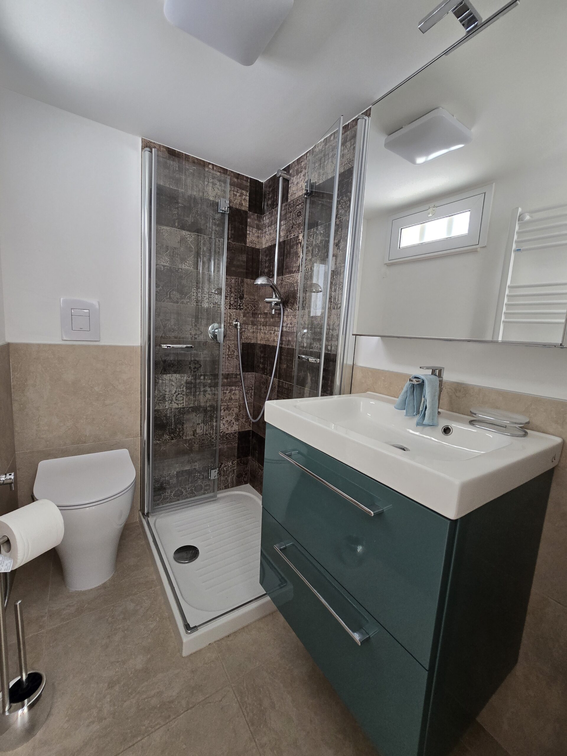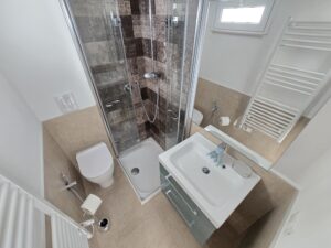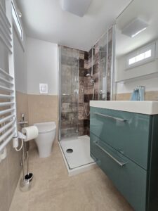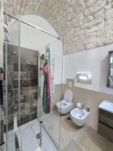 Al secondo piano vi e' un altro bagno con doccia e con termoarredo elettrico ed una camera da letto.