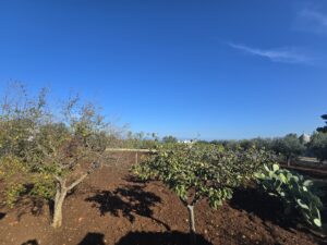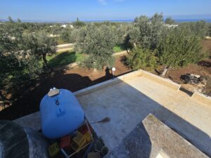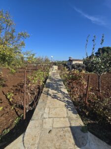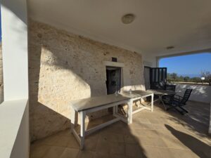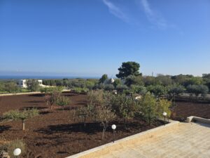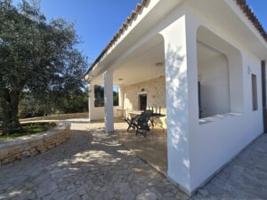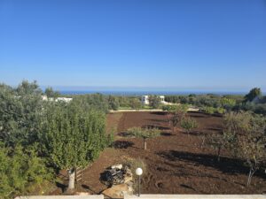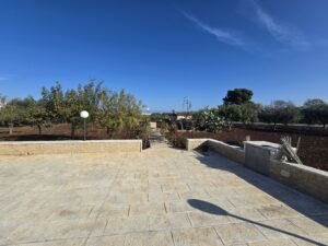 Bel terreno circostante di 2500 mq circa con la presenza di alberi di ulivo e frutti vari. La proprieta' gode di vista mare.