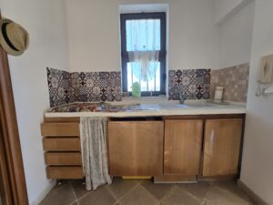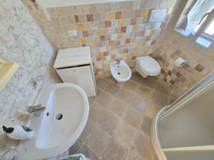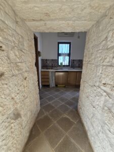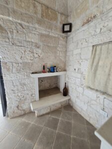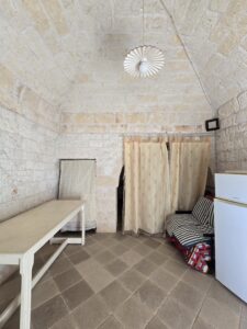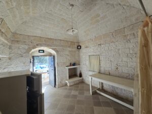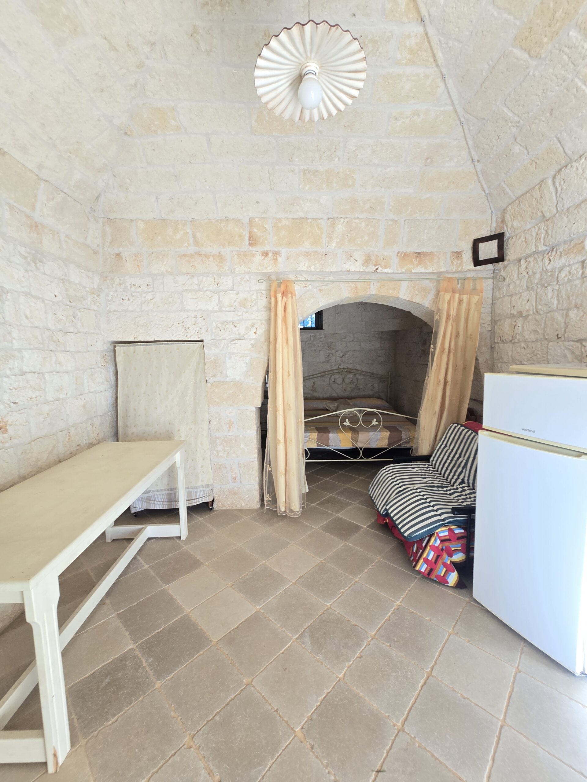 Il fabbricato internamente dispone di 45 mq con all'interno una sala con volte in pietra a faccia vista, una camera da letto realizzata in alcova doppia, un bagno con doccia e un cucinino.