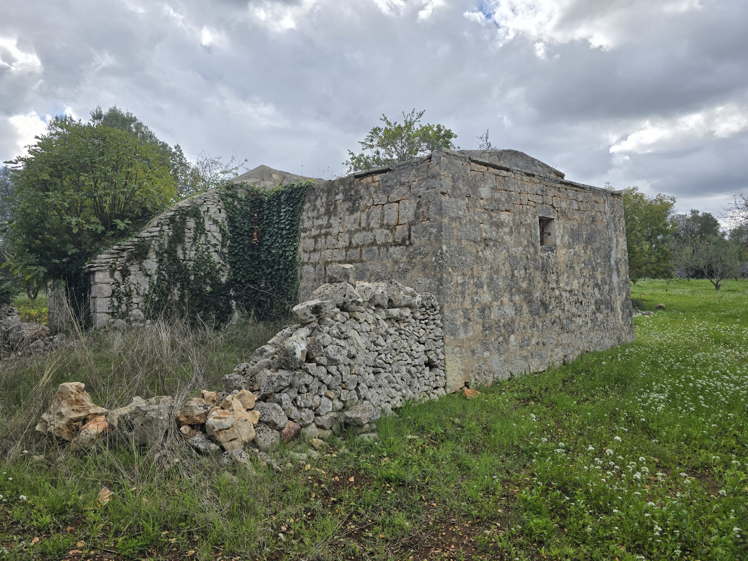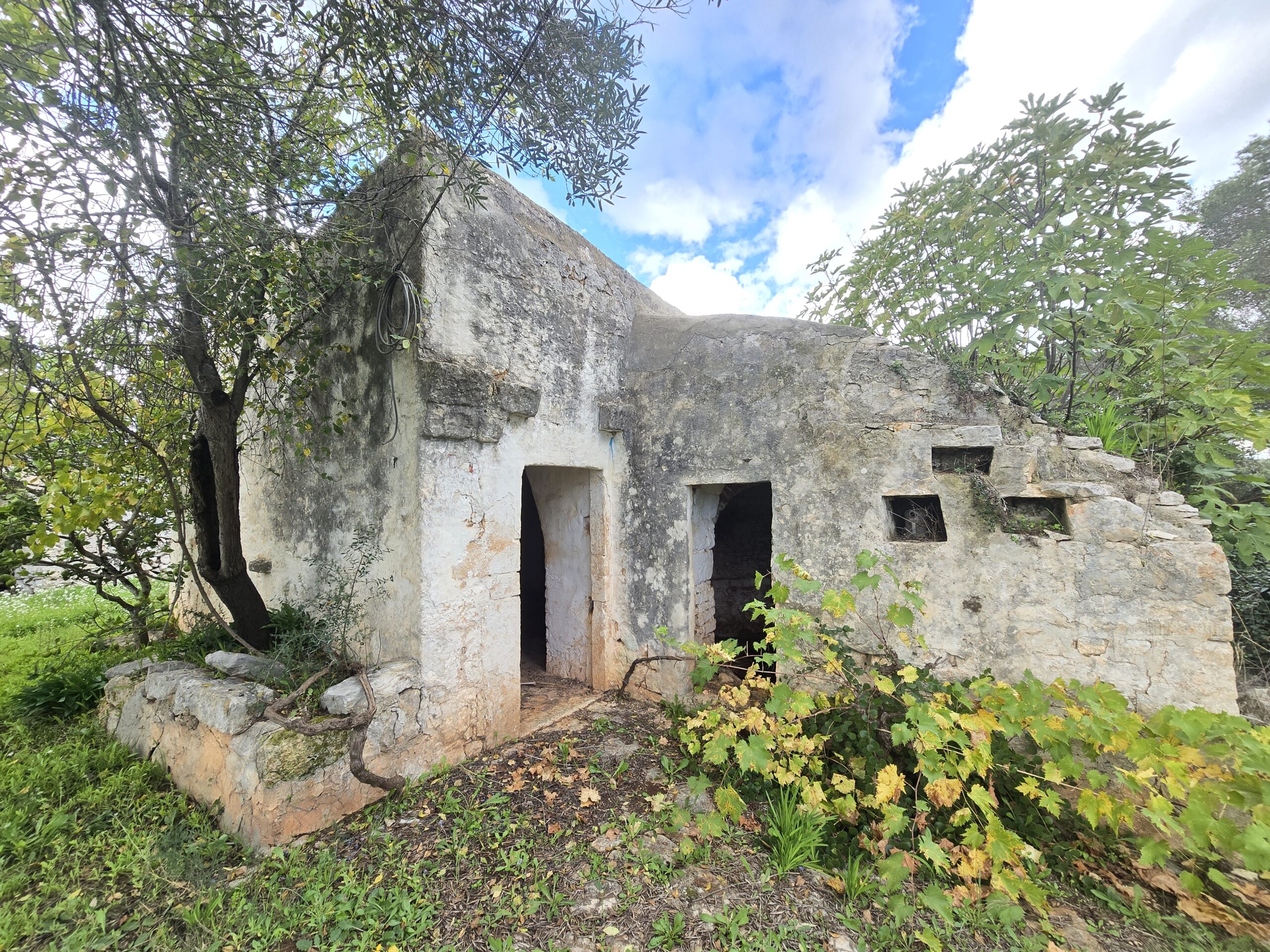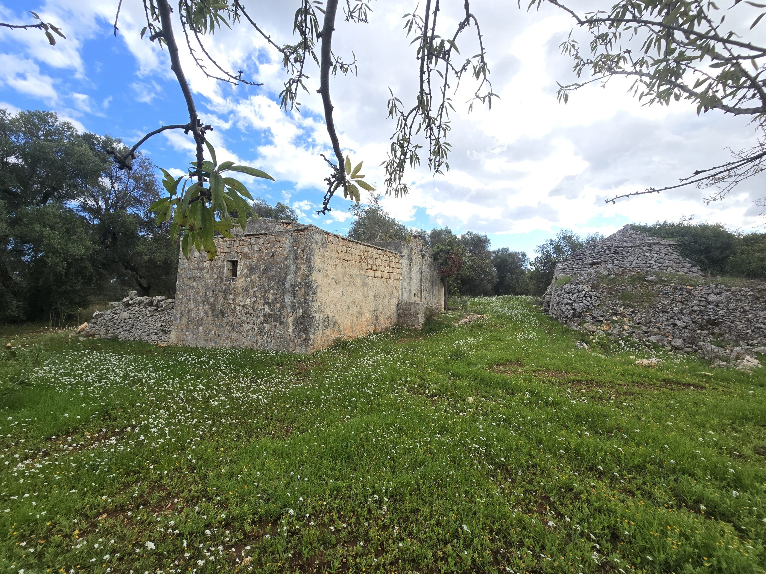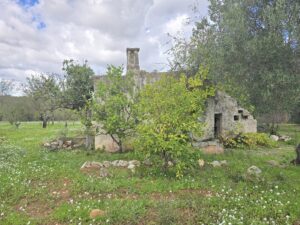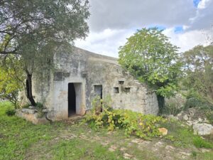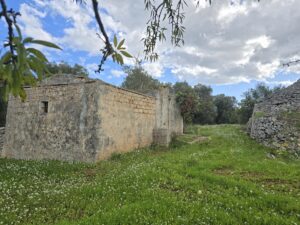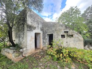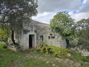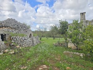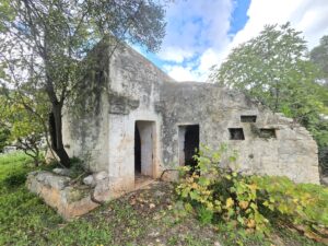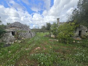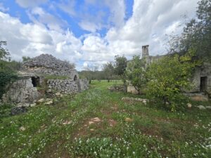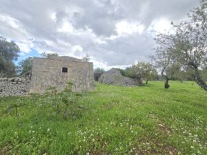 All'interno del terreno vi sono caratteristiche strutture in pietra del 1800, completamente da ristrutturare, di cui uno e' un trullo e a circa 5 mt vi e' un fabbricato di pietra piu' grande con volte a botte e con 2 stanze ampie.
