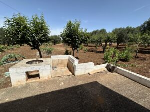 Dispone di cisterna, di un terreno di 7000 mq con la presenza di ulivi e alberi da frutto.
