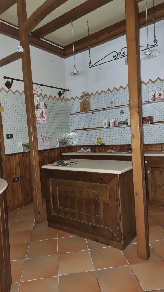 Il locale viene venduto con arredamento completo, mobili in legno e celle frigorifere.