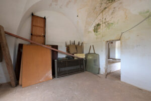 Il fabbricato della masseria e' composta da un piano terra , un primo piano e dall'area scoperta comprendente sia la corte interna del fabbricato sia lo spazio esterno alla corte stessa recintato per tutta la lunghezza con muri in blocchi irregolari di pietra disposti a secco. Per tutto il piano terra vi sono una serie di stanze voltate che seguono quasi per intero il perimetro della corte per una superficie compessiva di 800 mq con una trentina di locali tutti in aderenza ma divisi tra loro per utilizzi differenti. Tutti i locali affacciano e hanno ingresso sulla corte interna la quale ha una superficie di circa 300 mq , dove vi e' anche un orto.