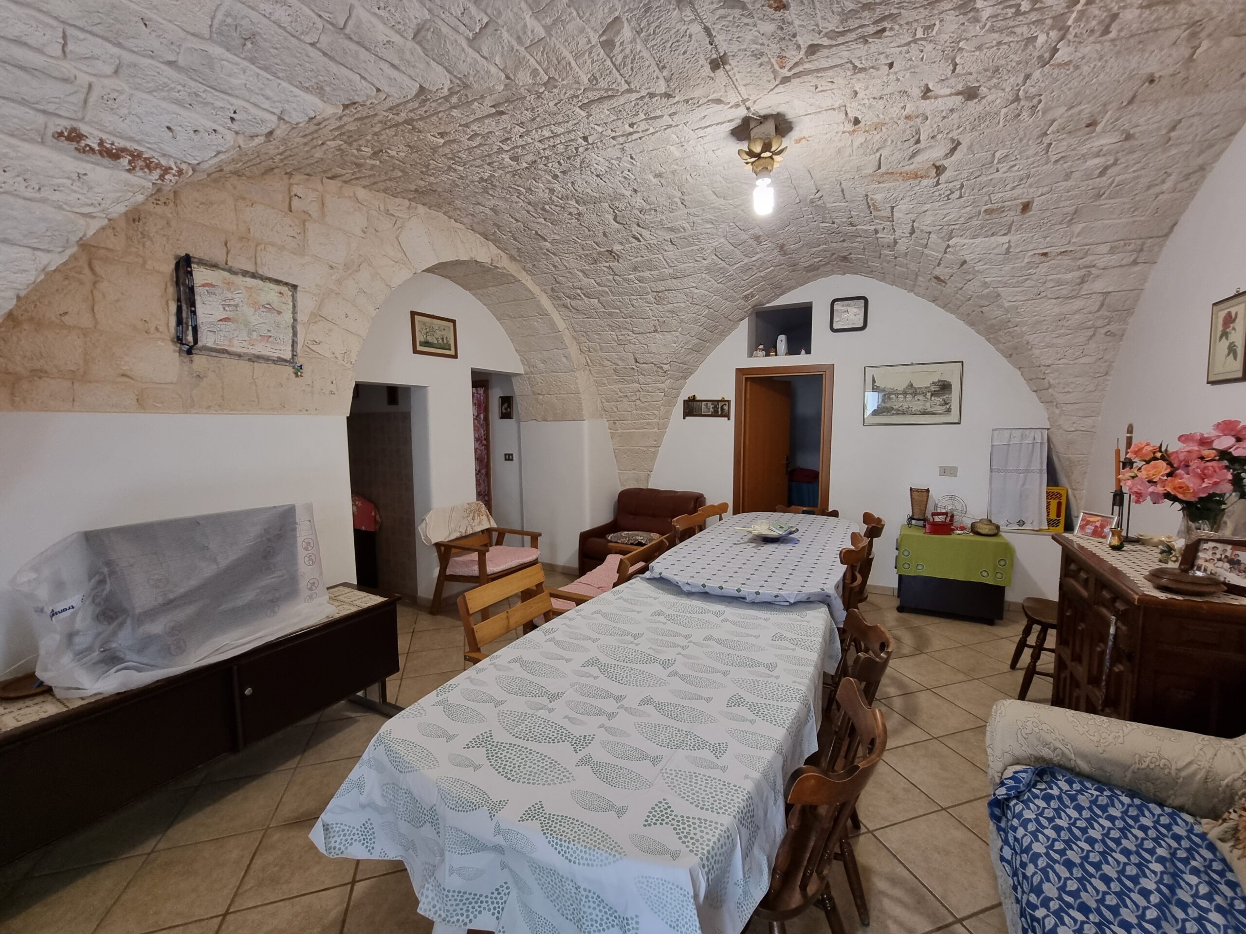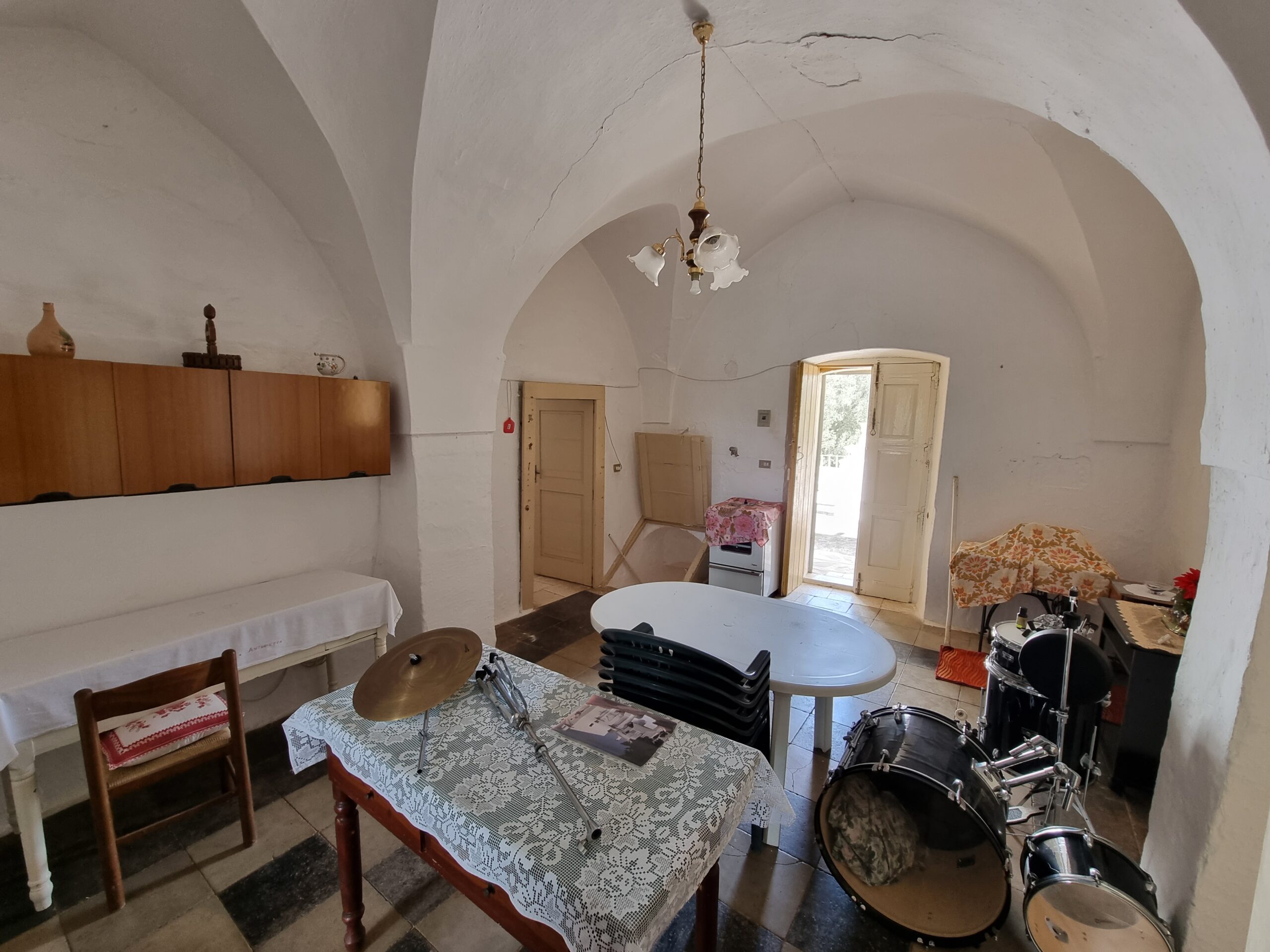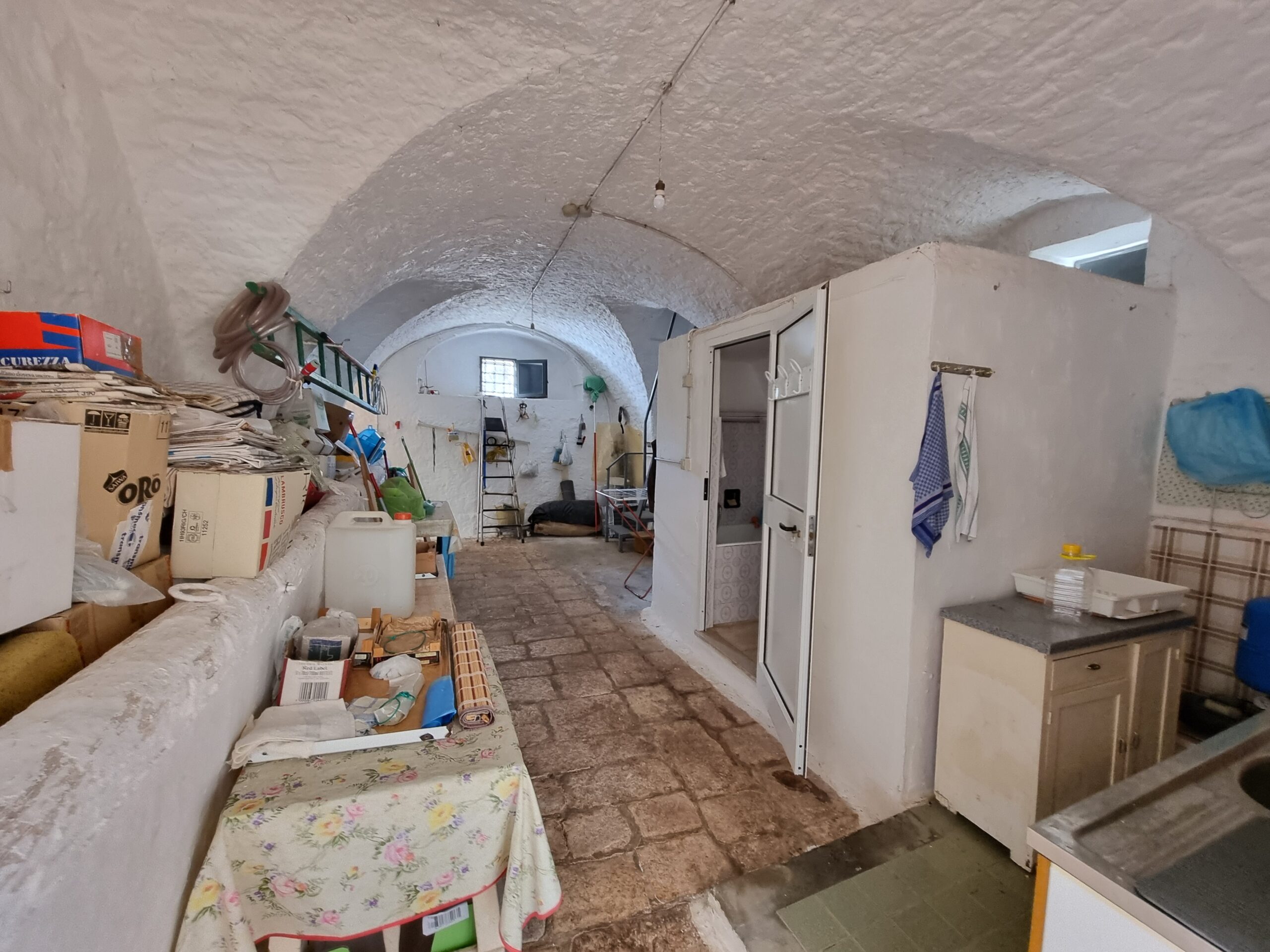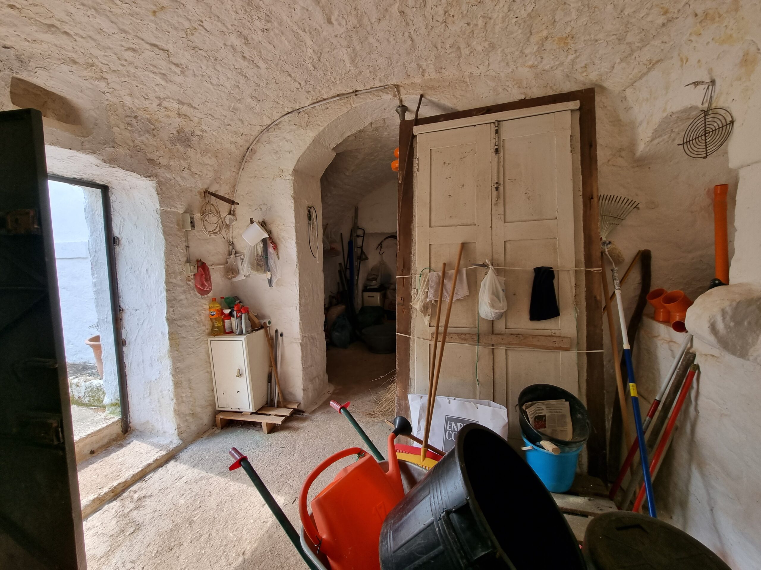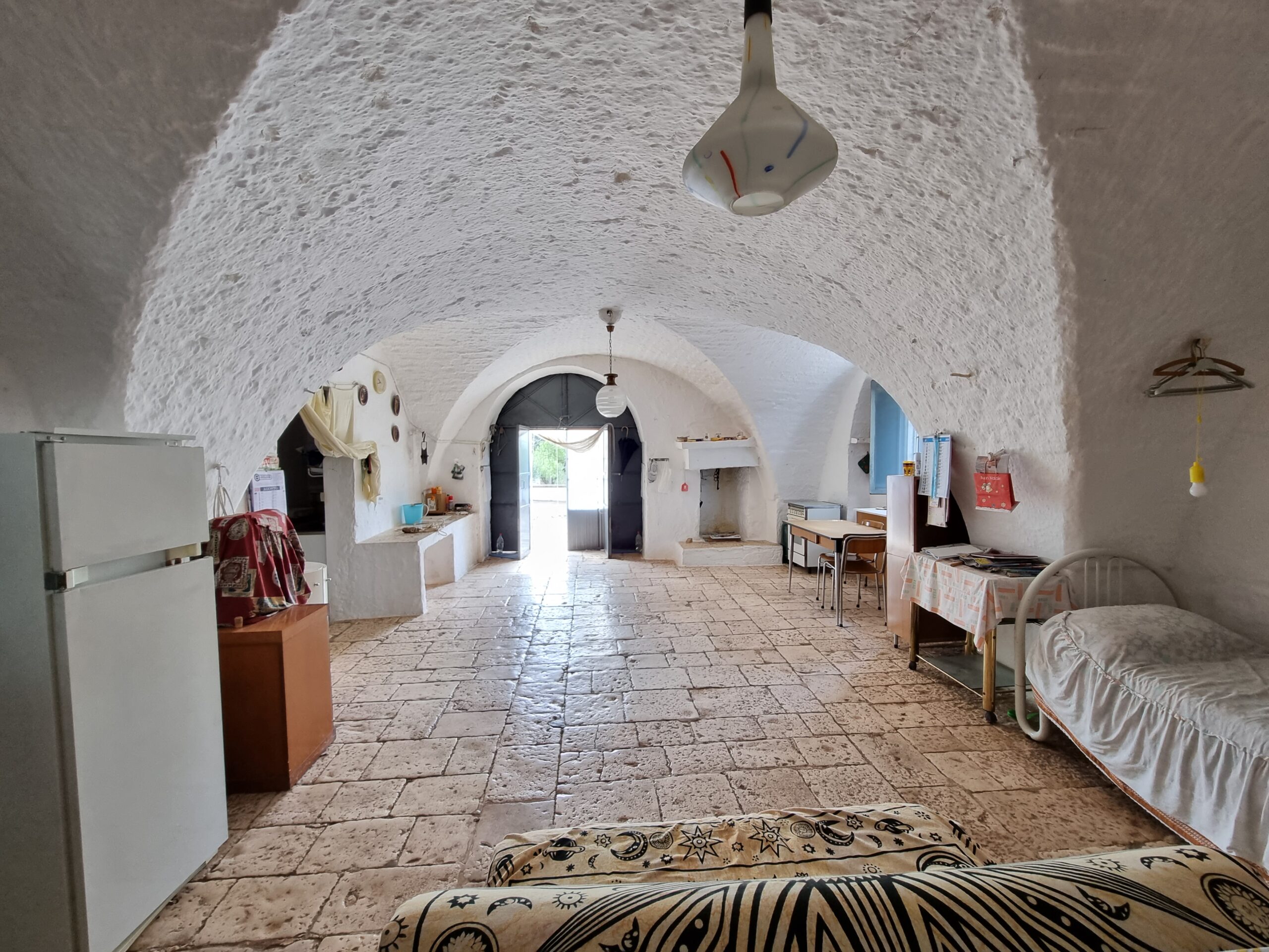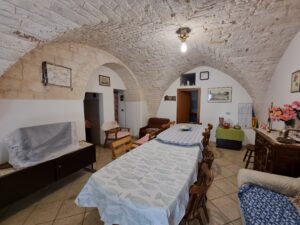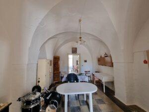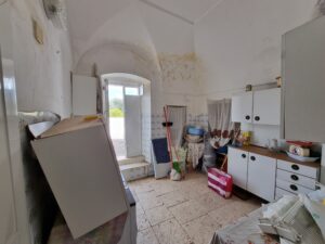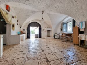 La masseria si sviluppa su 2 livelli, al piano terra vi sono diversi locali tra cui alcuni di ampia metratura, le vecchie stalle, tutte con splendide volte in pietra e con una metratura totale di 380 mq.