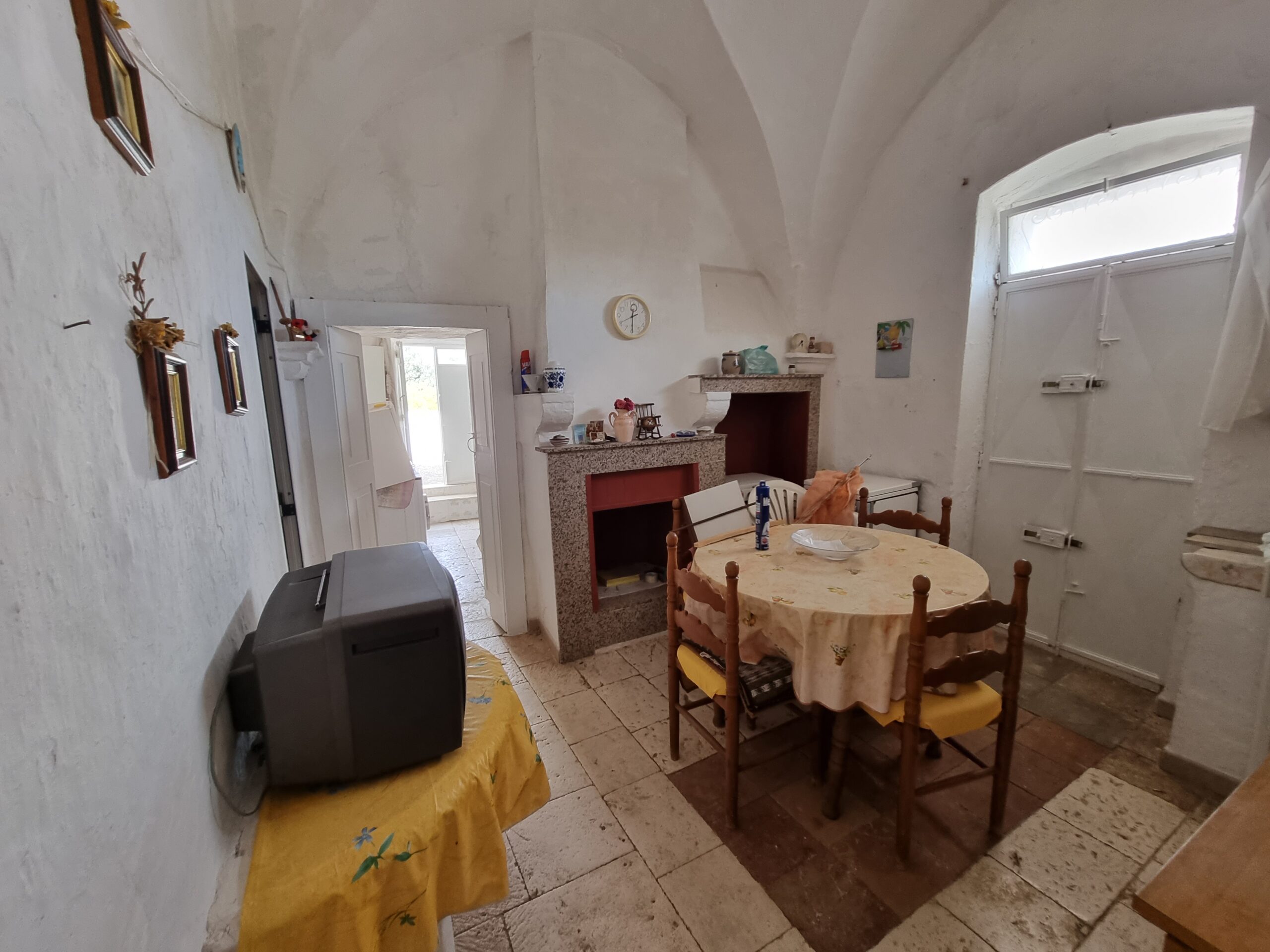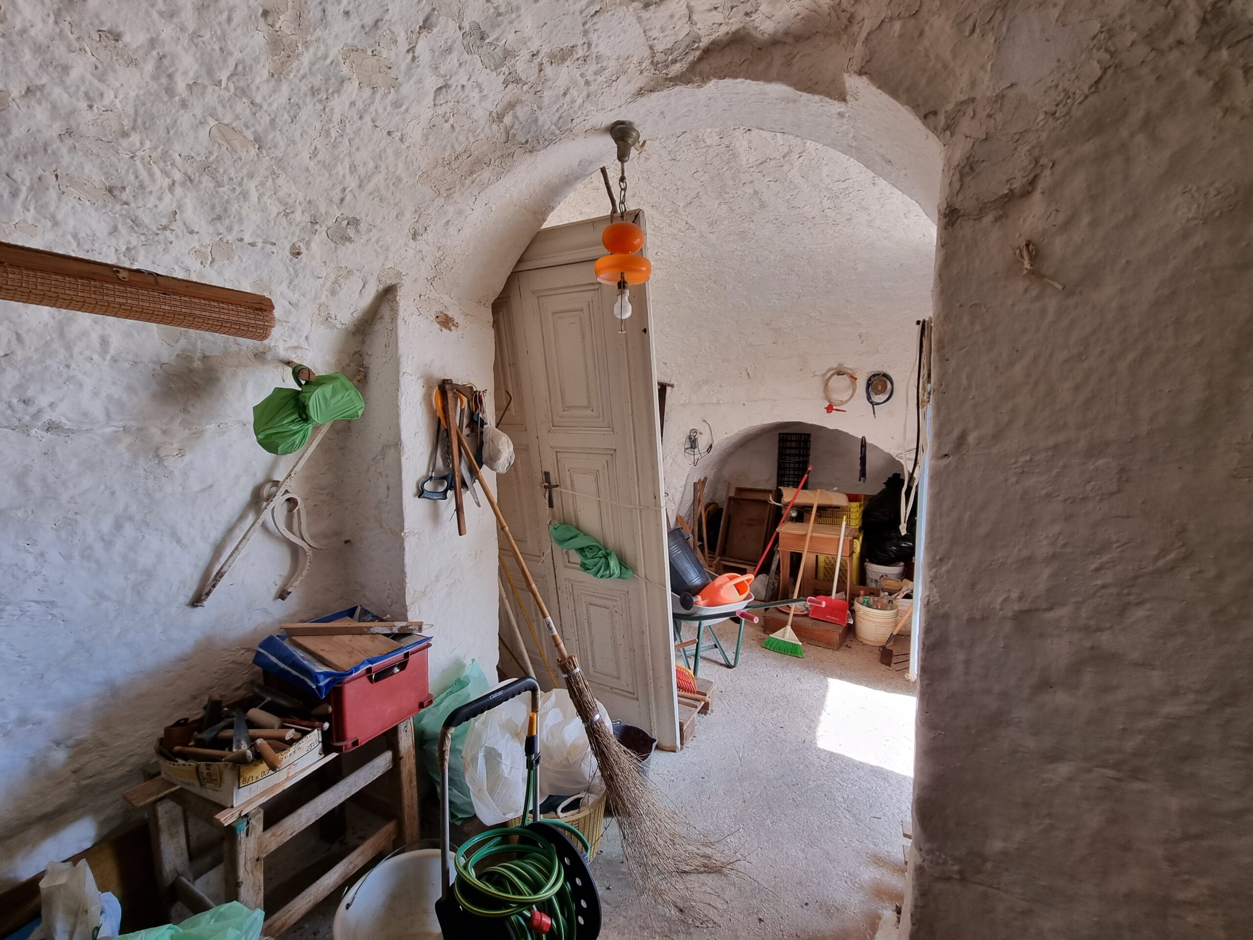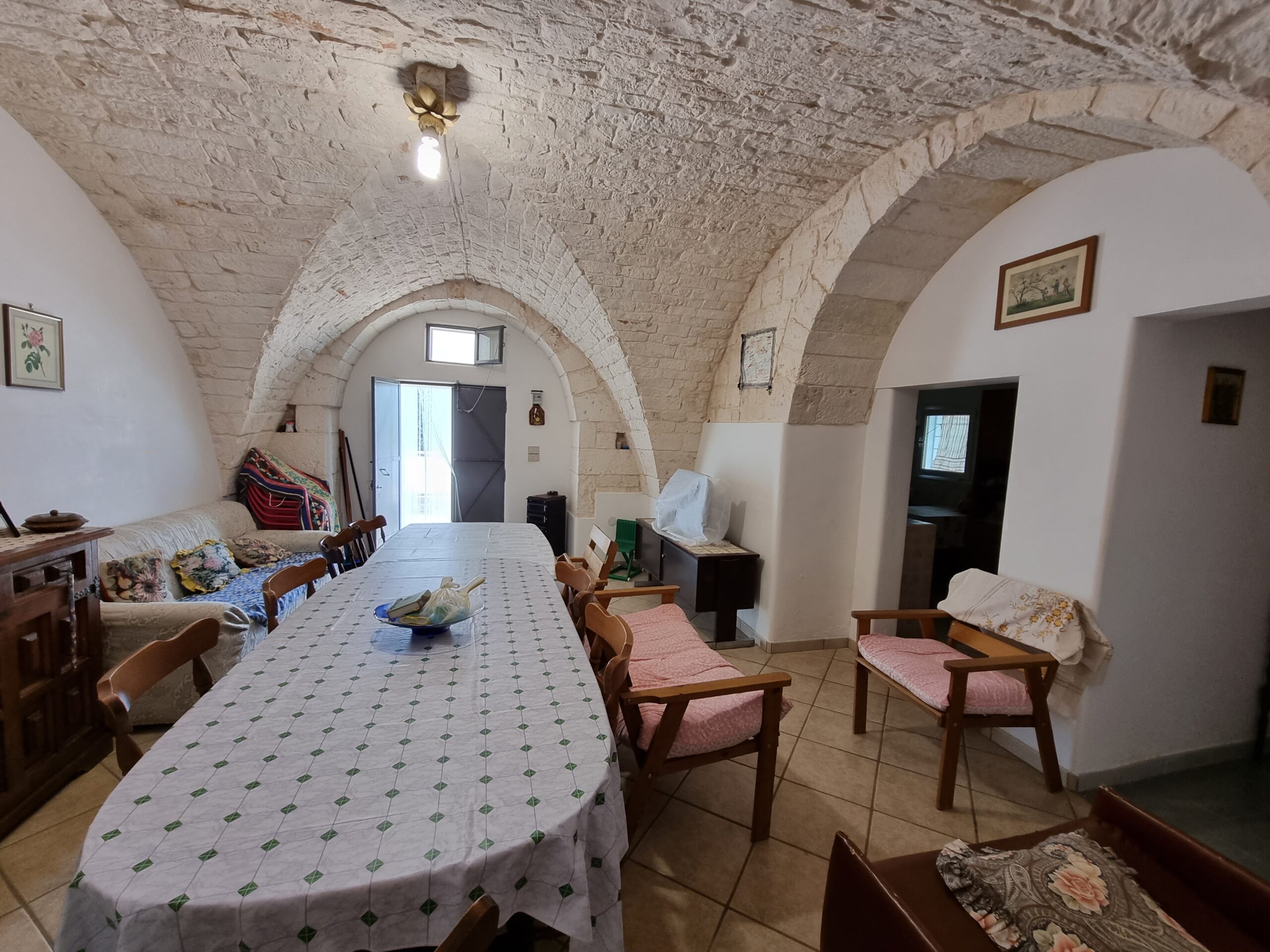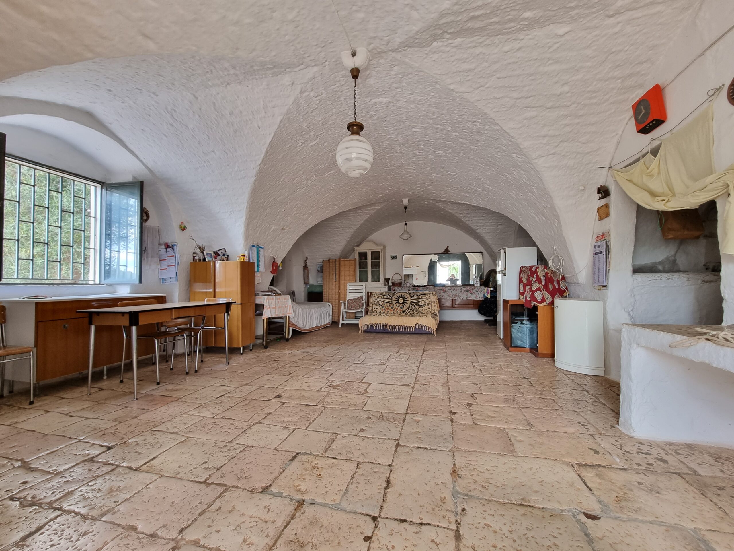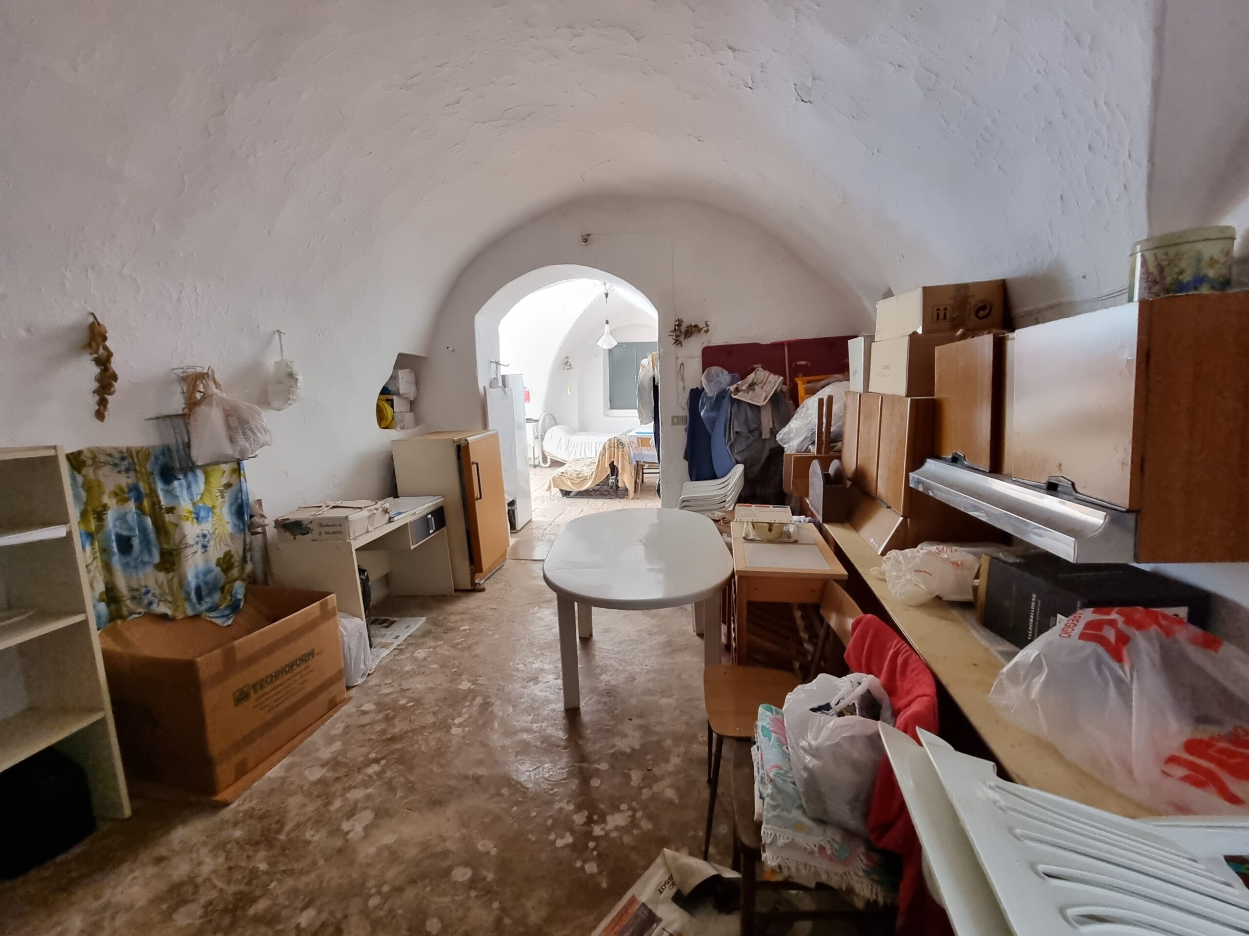 La masseria si sviluppa su 2 livelli, al piano terra vi sono diversi locali tra cui alcuni di ampia metratura, le vecchie stalle, tutte con splendide volte in pietra e con una metratura totale di 380 mq.
