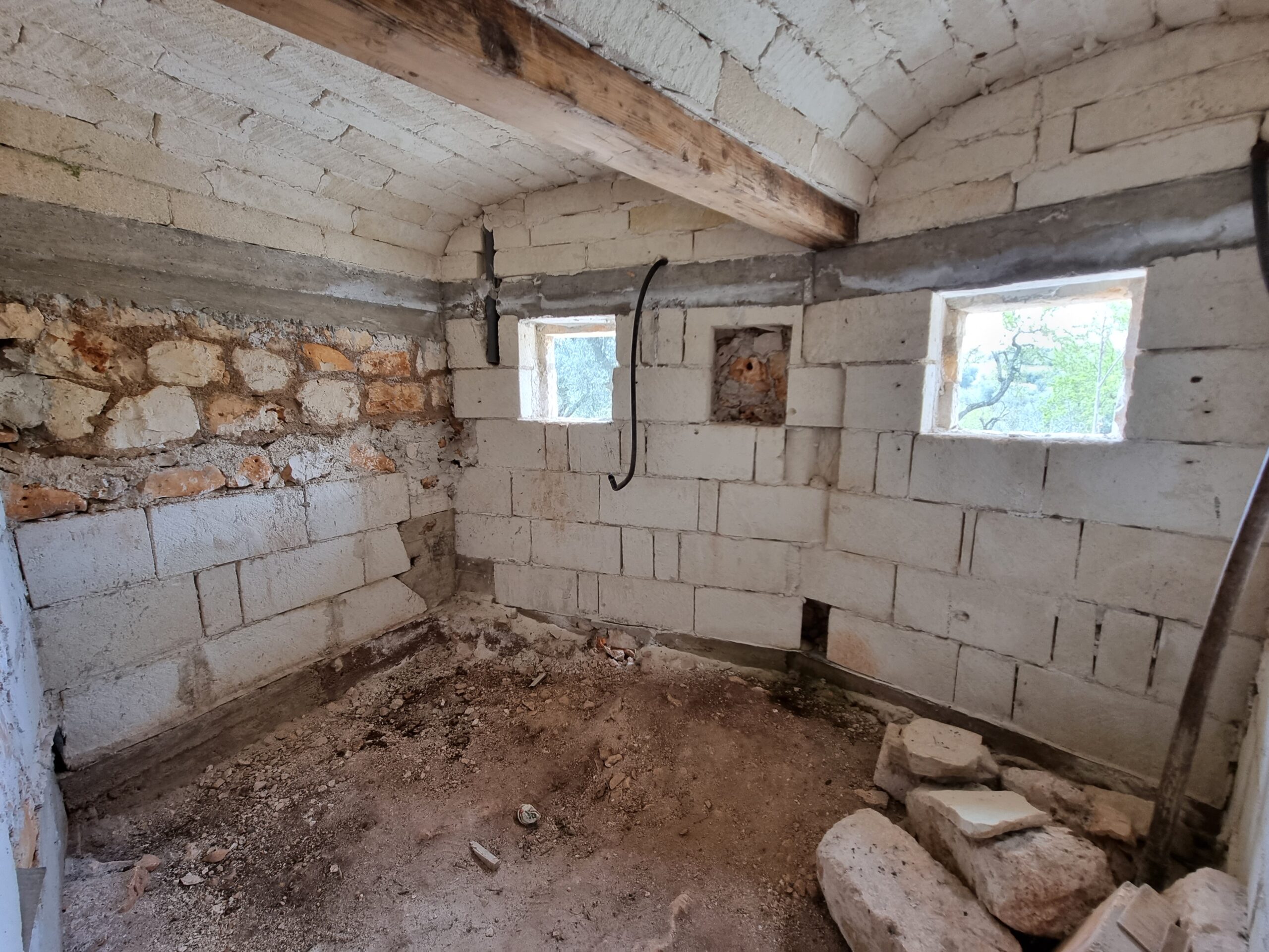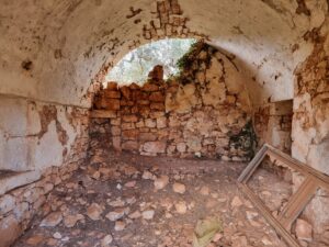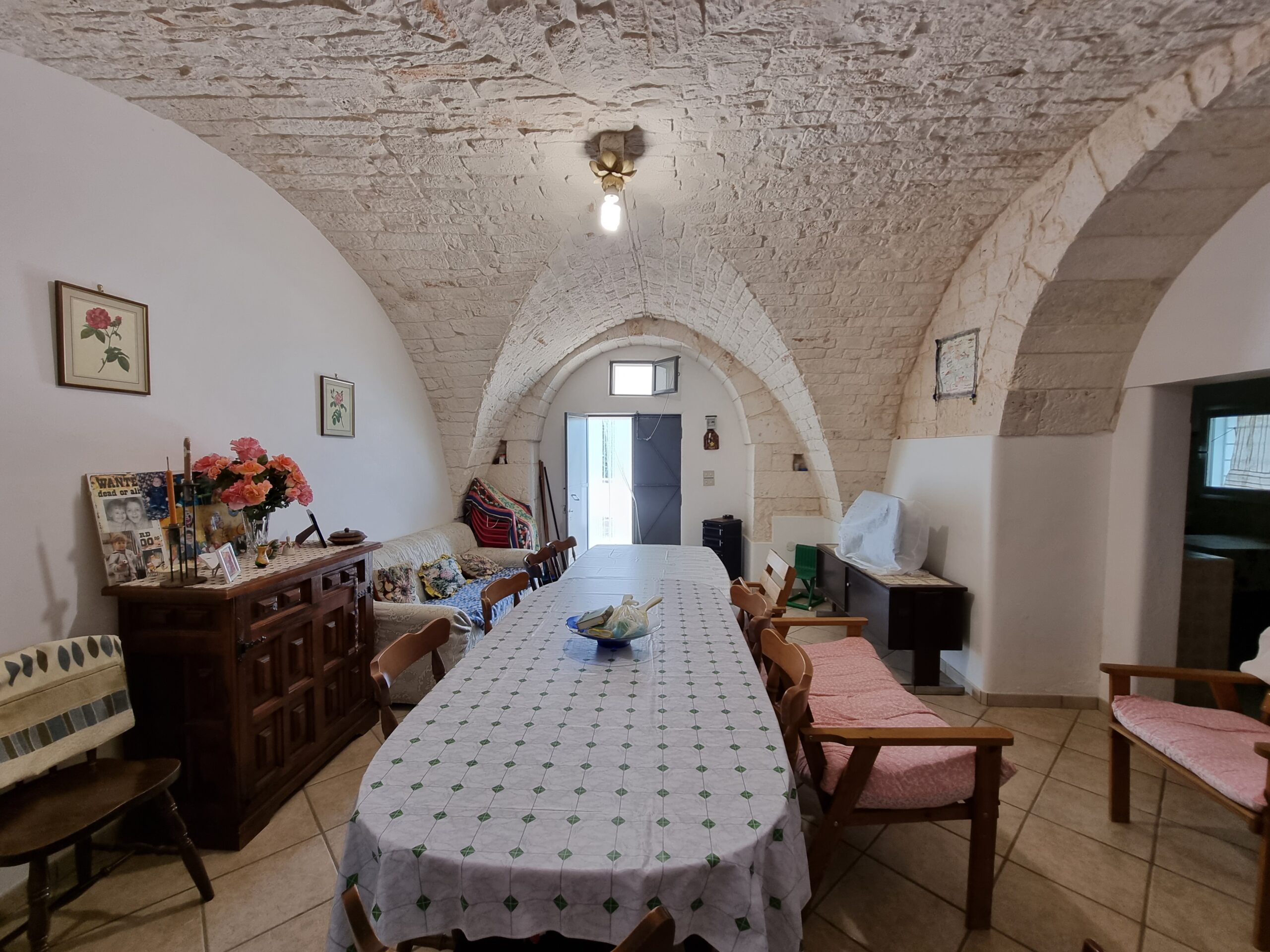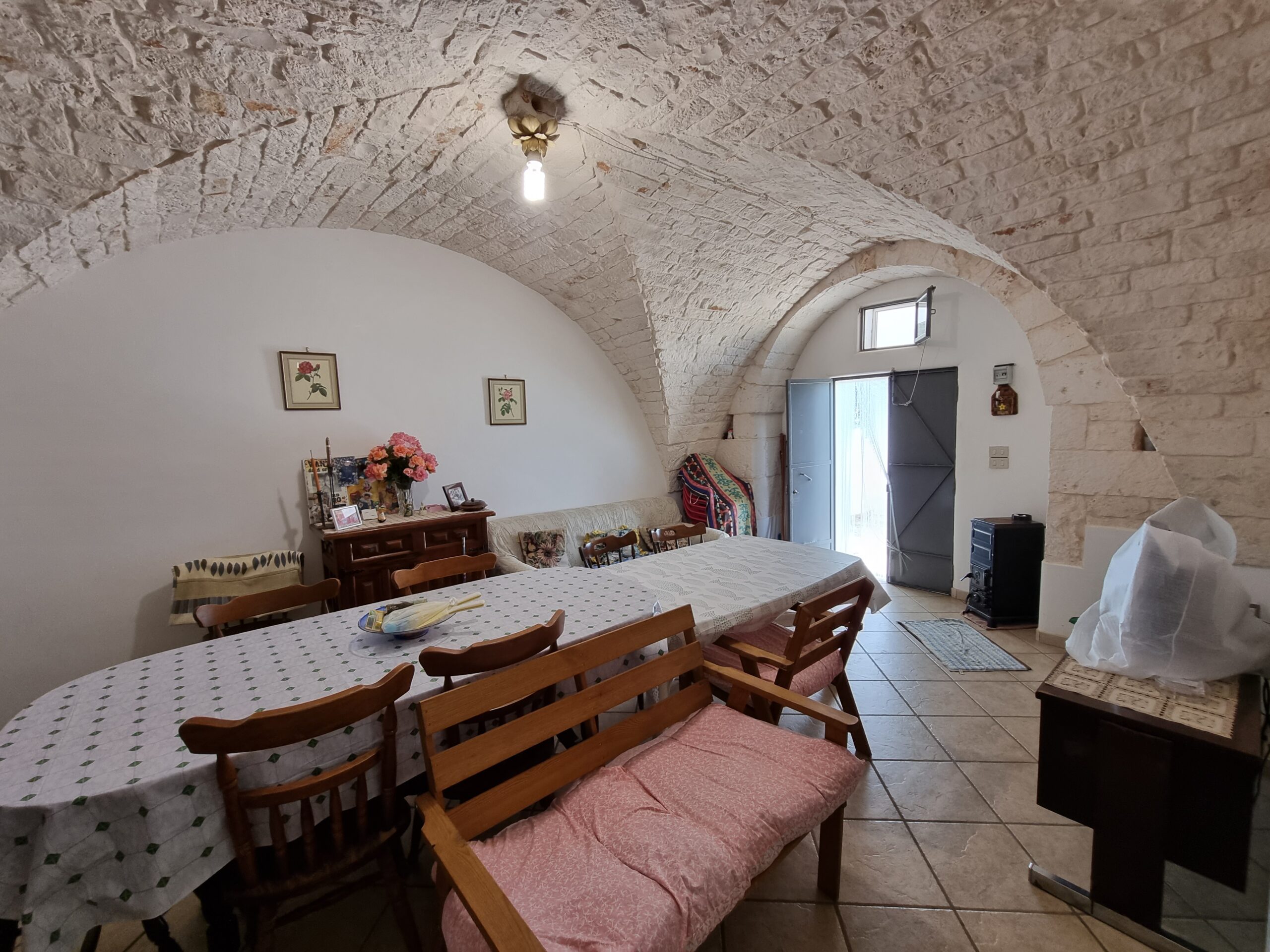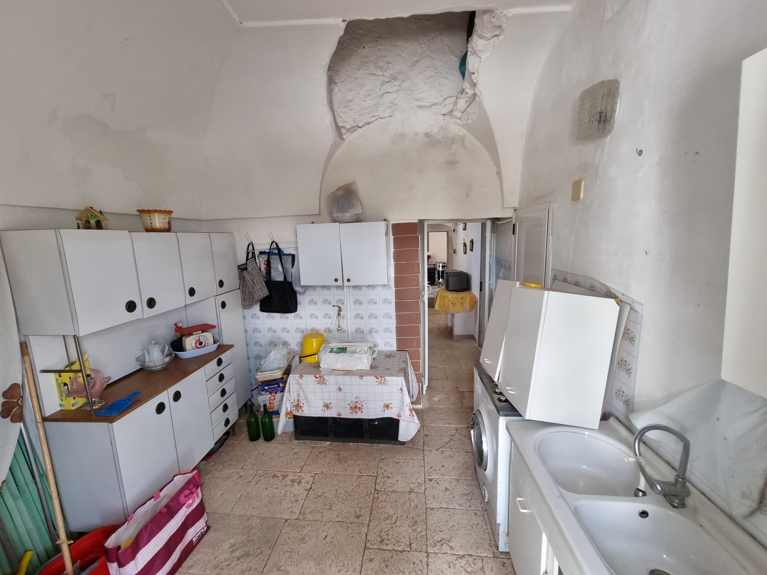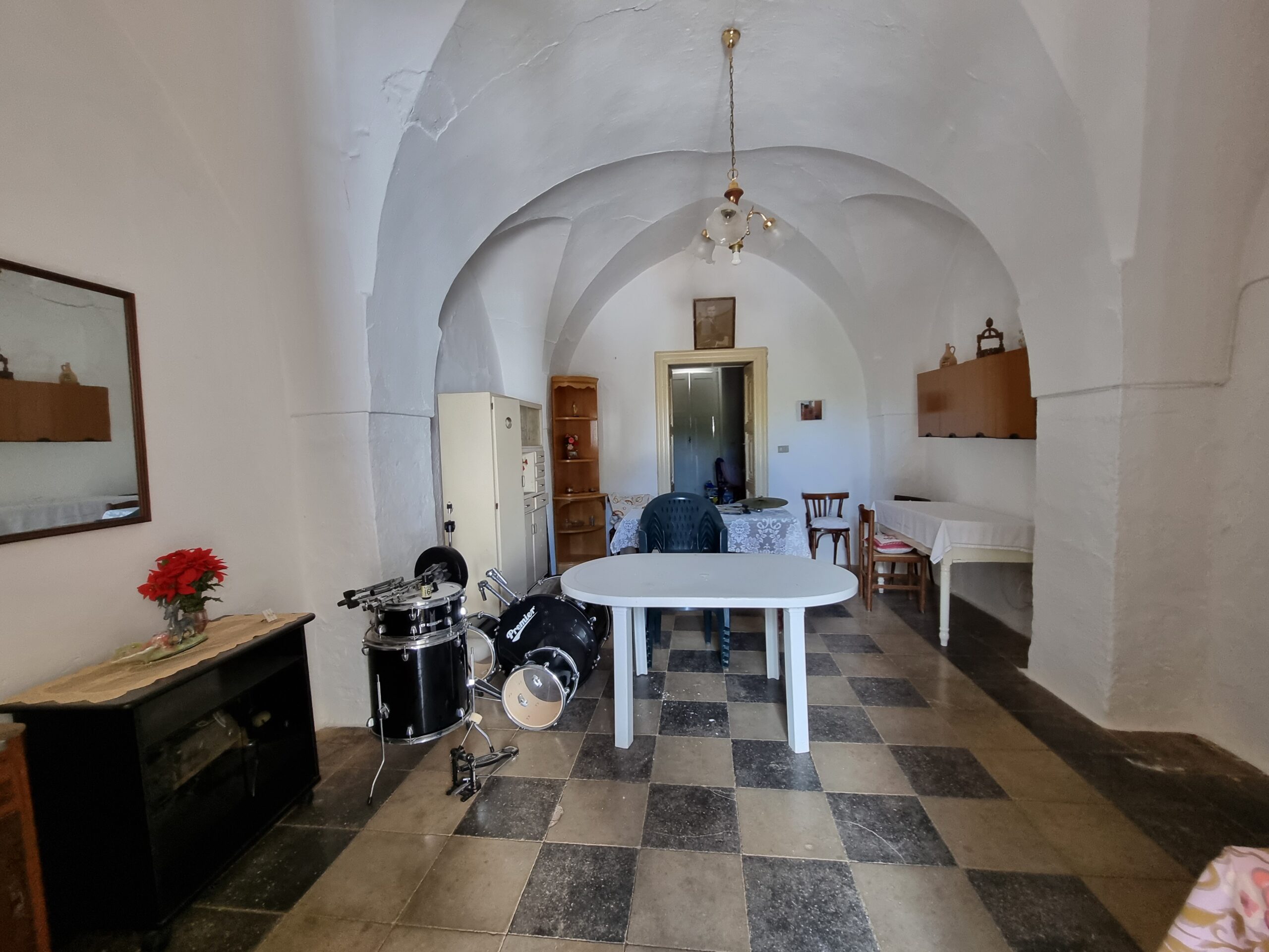 La masseria si sviluppa su 2 livelli, al piano terra vi sono diversi locali tra cui alcuni di ampia metratura, le vecchie stalle, tutte con splendide volte in pietra e con una metratura totale di 380 mq.