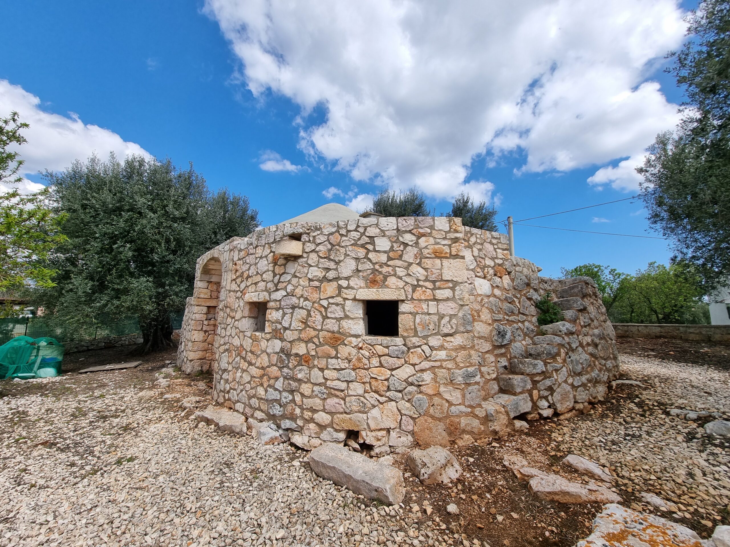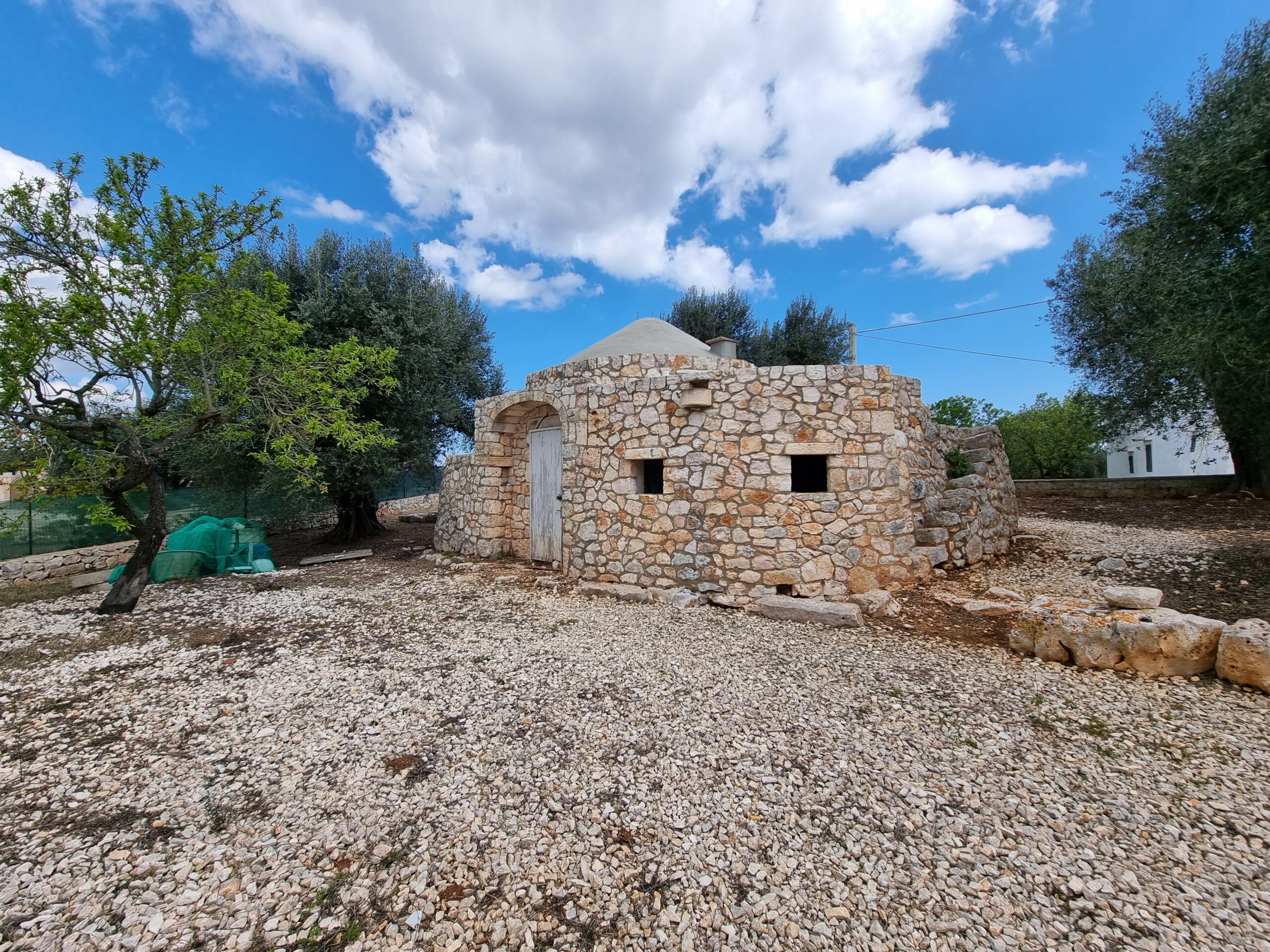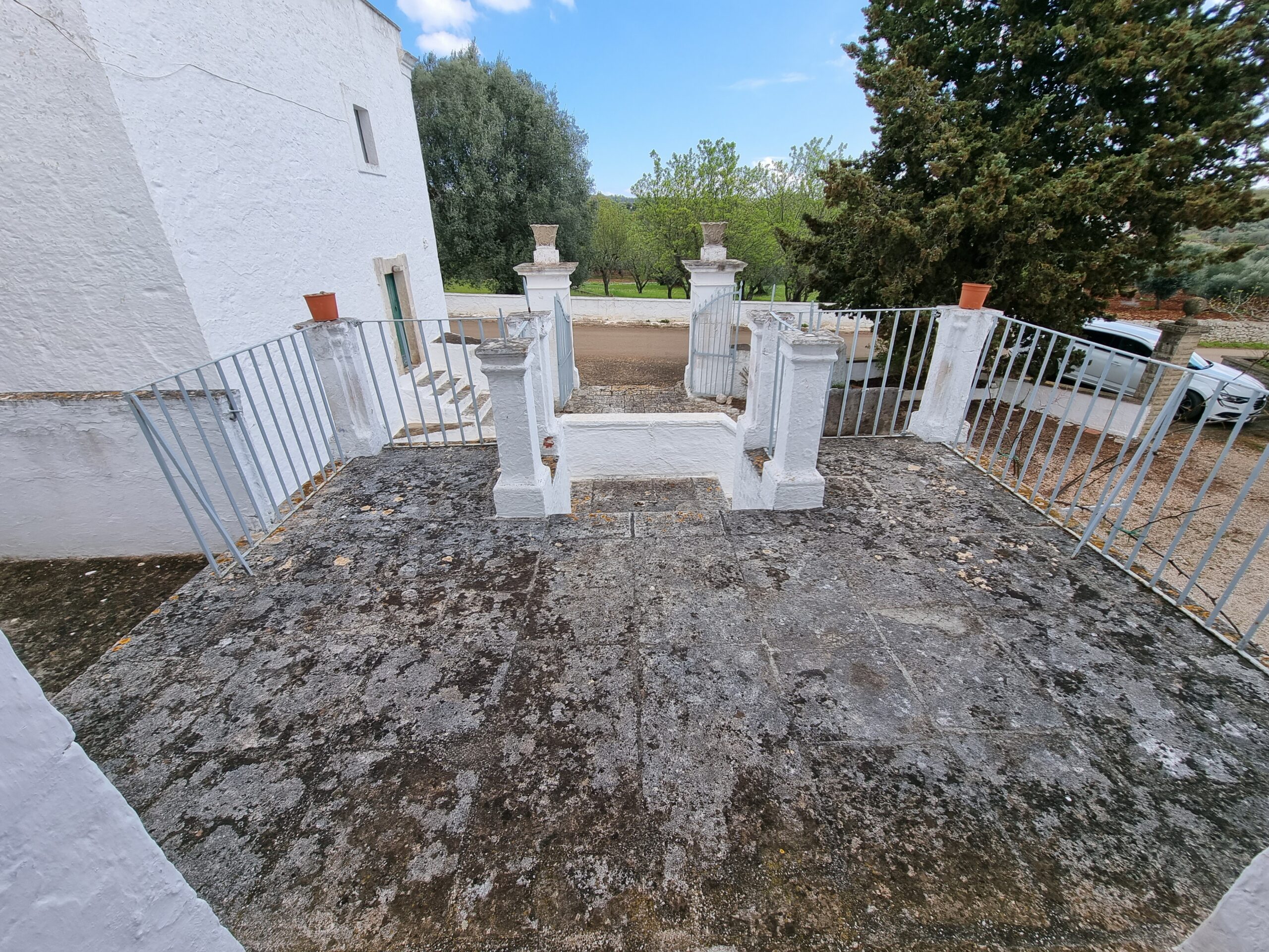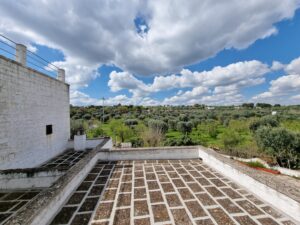 La proprieta' e' circondata da un terreno di 6 ettari con la presenza di 500 ulivi, all'interno del quale vi sono 2 trulli saraceni e una lamia con vista panoramica, che necessitano di ristrutturazione.
