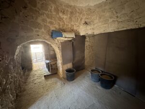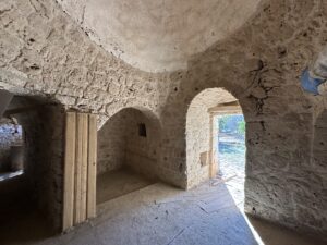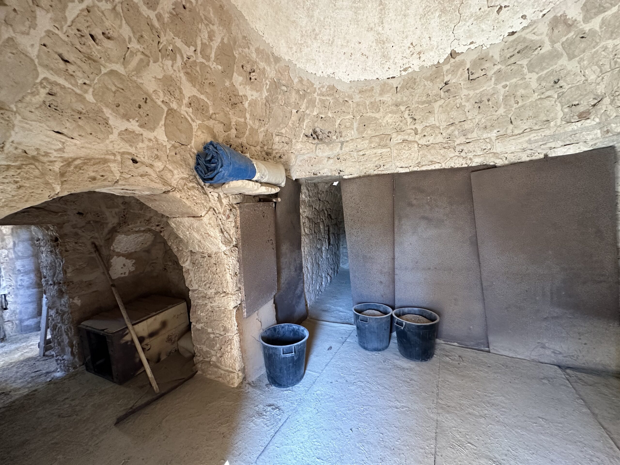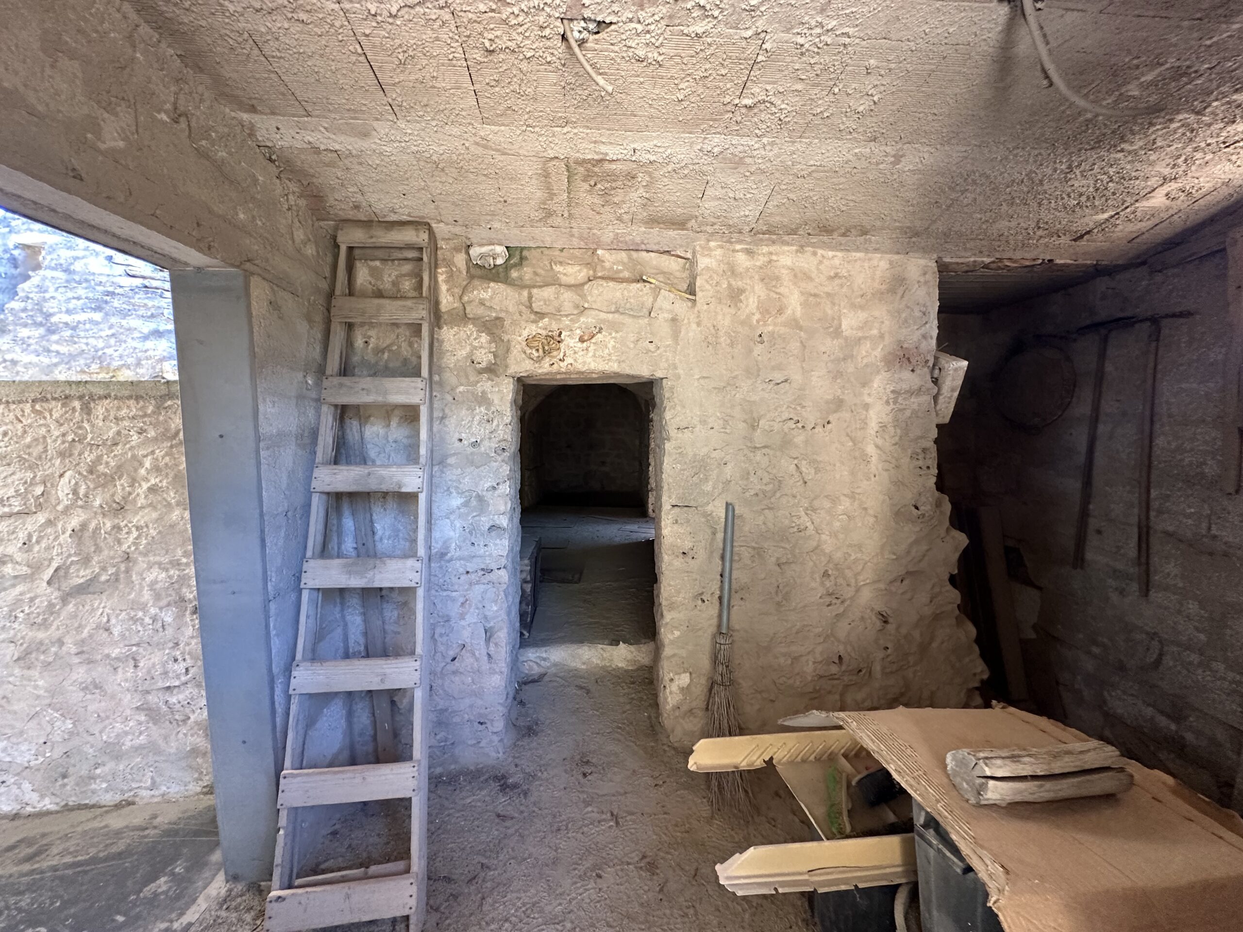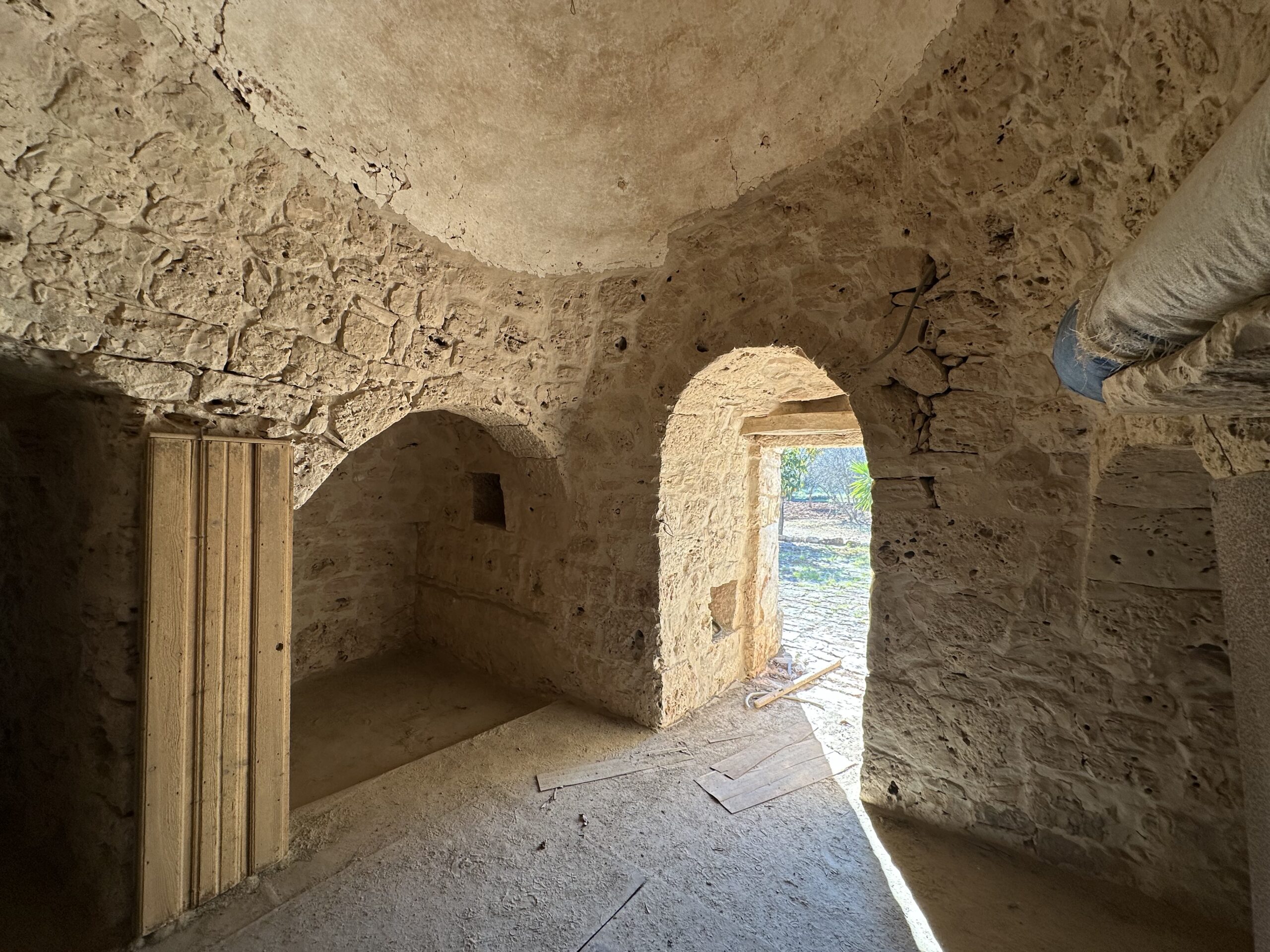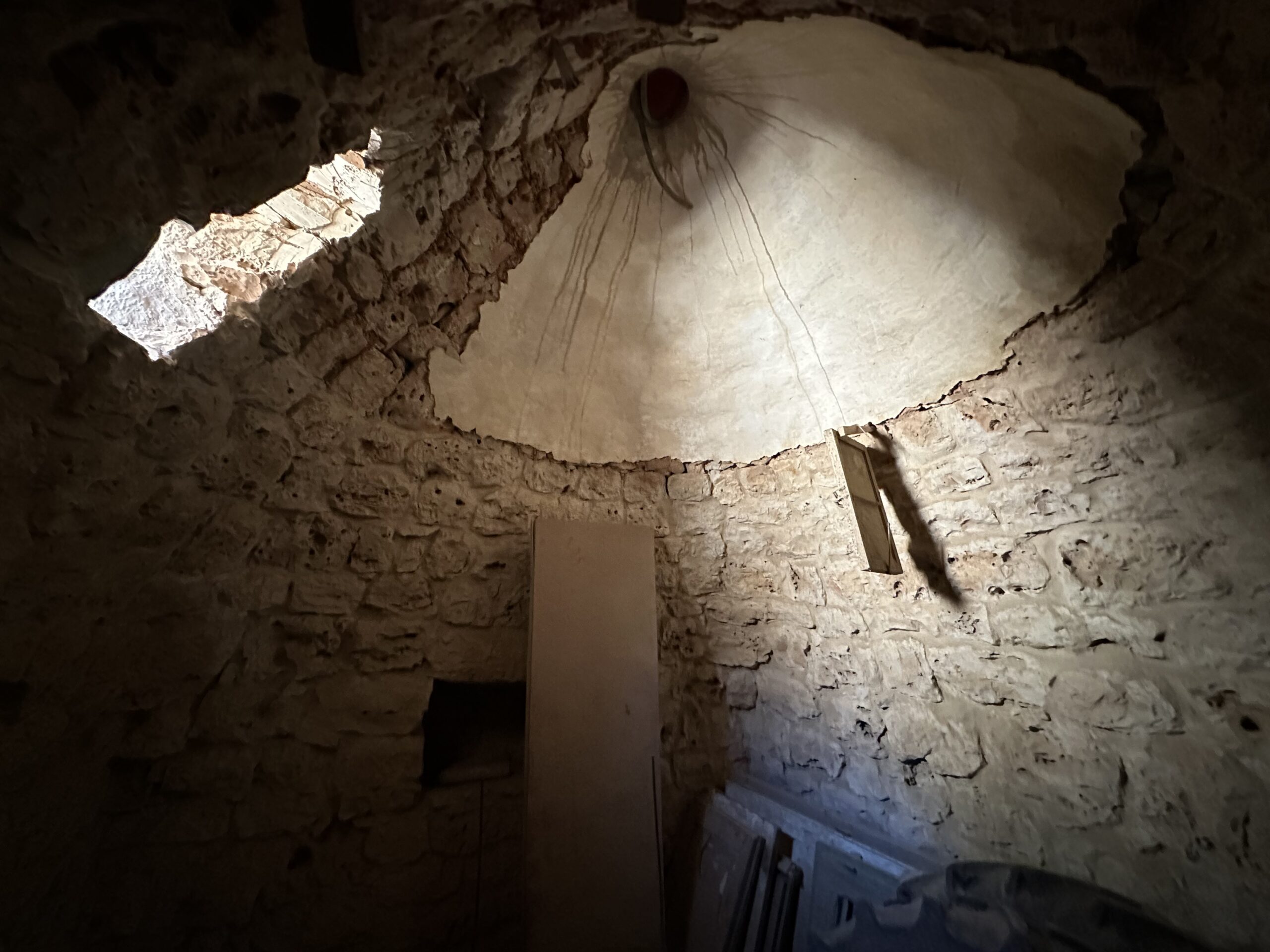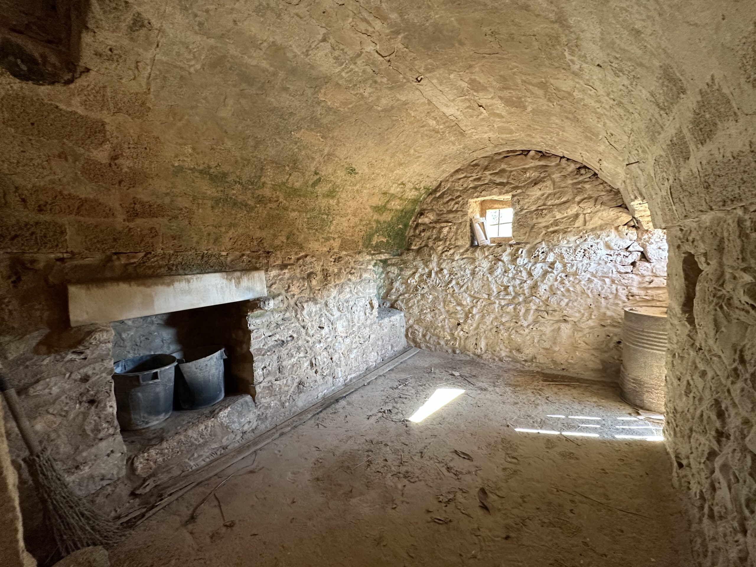 L'immobile di 90 mq e' composto da 4 coni con diverse alcove ed un camino e 3 lamie con camino. La parte antistante del fabbricato e' pavimentata da chianche originali. Dispone di cisterna.