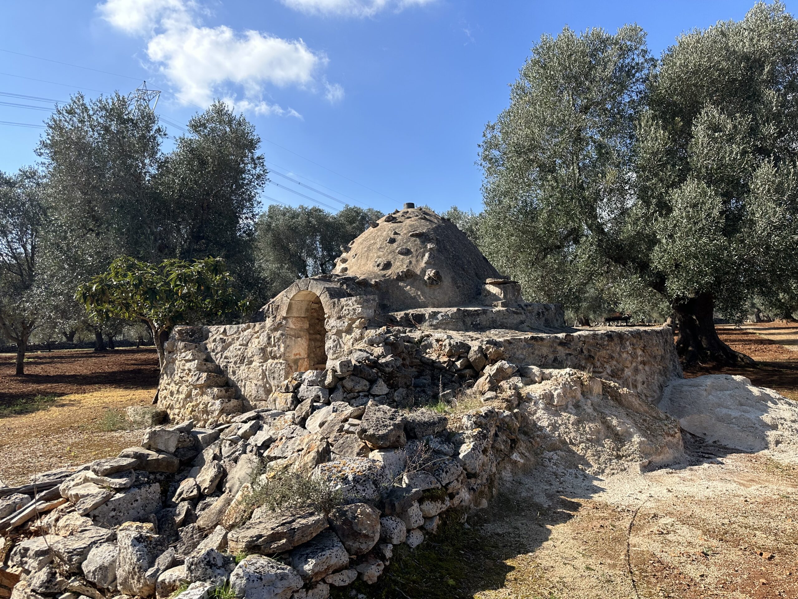 I 2 trulli di 20 mq ciascuno sono composti da una sala con 2 alcove, circondati da un terreno di 24000 mq con 80 ulivi secolari e 100 ulivi giovani.