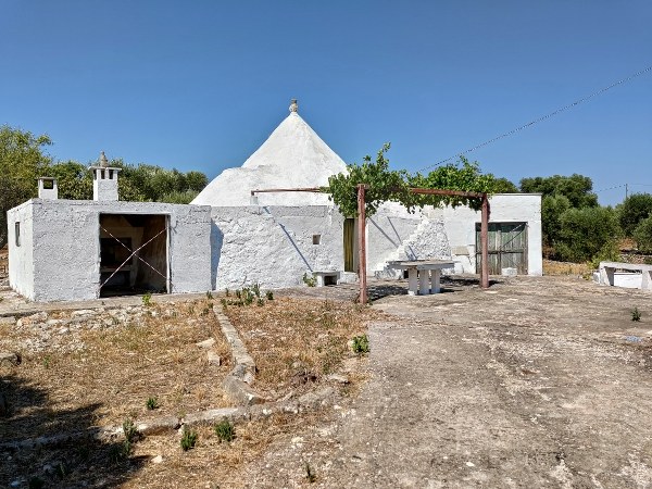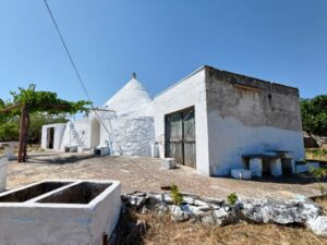 Proponiamo in vendita in agro di Ceglie Messapica, a meno di 2 km dal centro abitato, un trullo a 3 coni + 2 lamie adiacenti di recente costruzione.