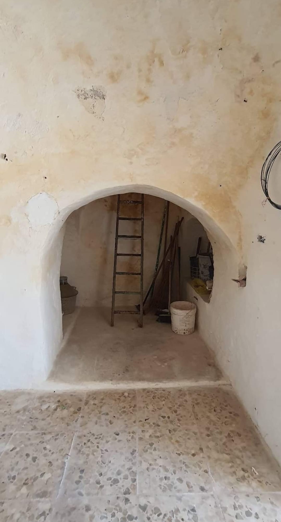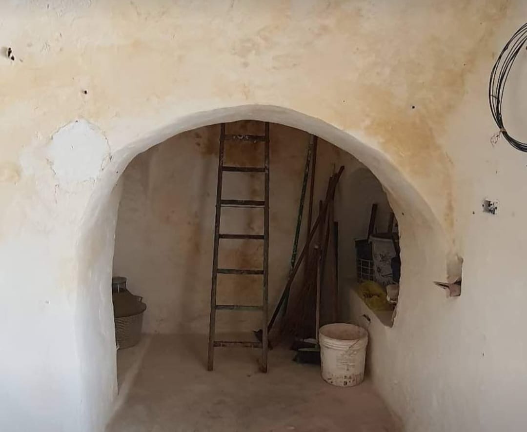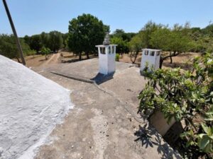 Circondato da un un bel terreno sollevato di 4000 mq, con la presenza di ulivi. Dispone di forno e cisterne.