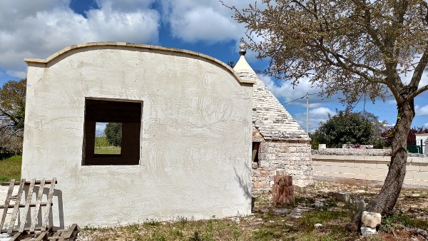 Proponiamo in vendita nella zona di Cisternino, una struttura, in fase di ristrutturazione, di 45 mq composta un trullo a 1 cono completamente rimesso a nuovo e con realizzazione, adiacente, di una lamia nuova, per un totale di 45 mq.