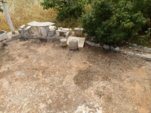 L'immobile del 1800 e' composto da una sala con 2 alcove laterali e una cucina esterna, circondato da un terreno di 10000 mq ad uliveto con circa 70 piante, che da la possibilita' di realizzare una villa di circa 90 mq.
