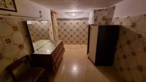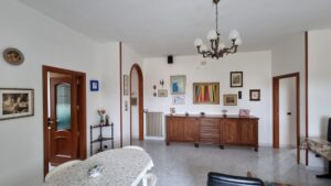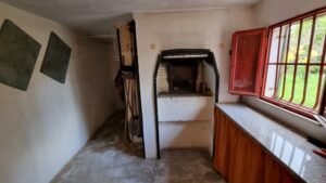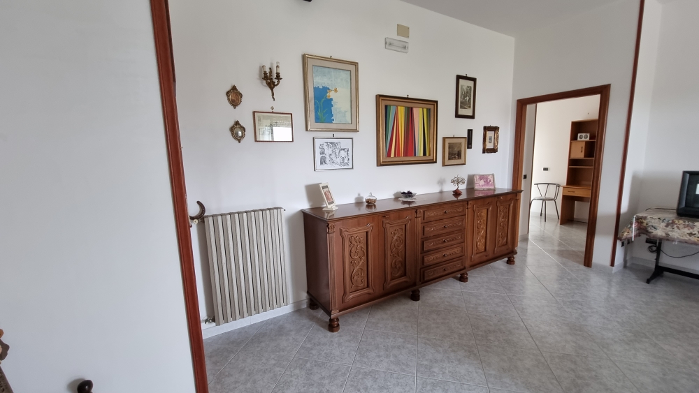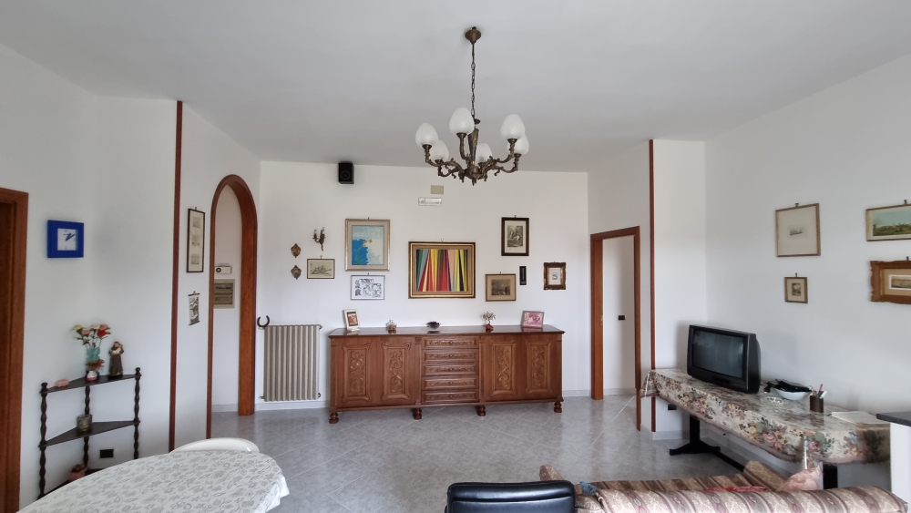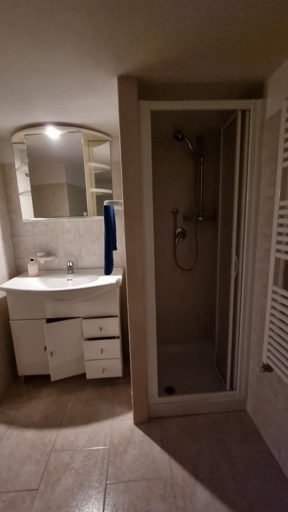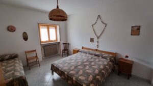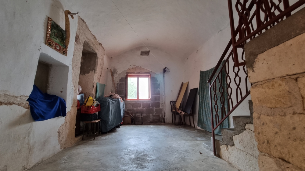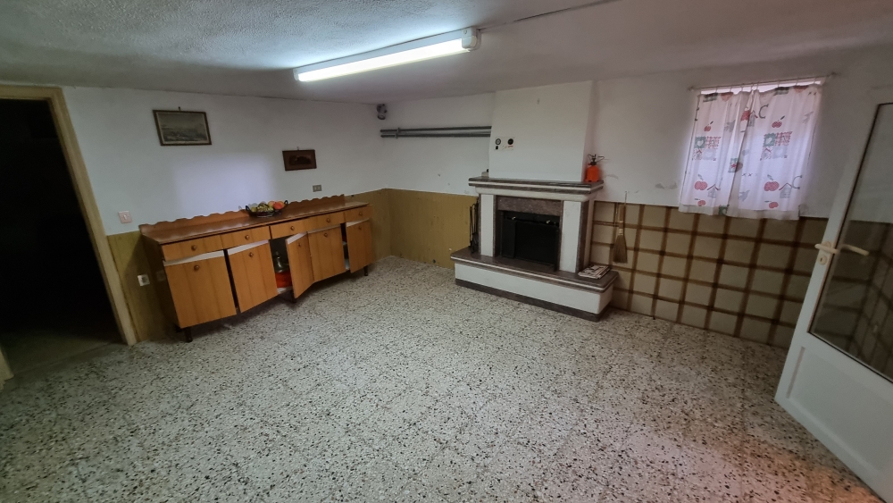 Il piano interrato, vi e' la possibilita' di accedere sia dall'interno che dall'esterno, e' composto da un locale in pietra, una veranda, un ripostiglio, un salone con camino, un cucinino, un bagno con doccia, una camera da letto e un garage. Dispone di riscaldamento autonomo a metano e di 1000 mq di terreno.