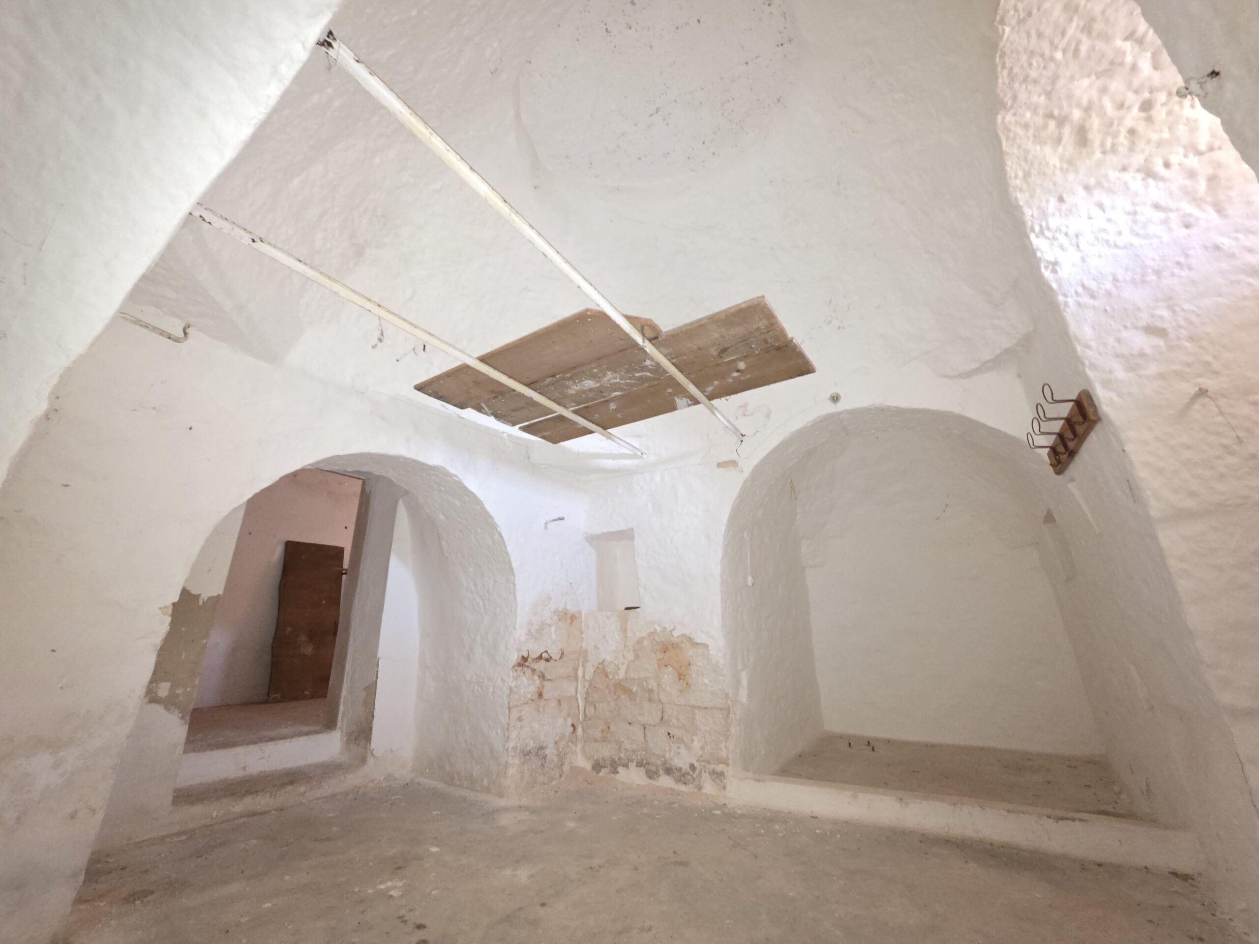 Internamente e' composto da sala, 3 camere da letto, un bagno, una cucina con forno e in aderenza un trullo saraceno collegato internamente che dispone di una sala con 3 alcove.