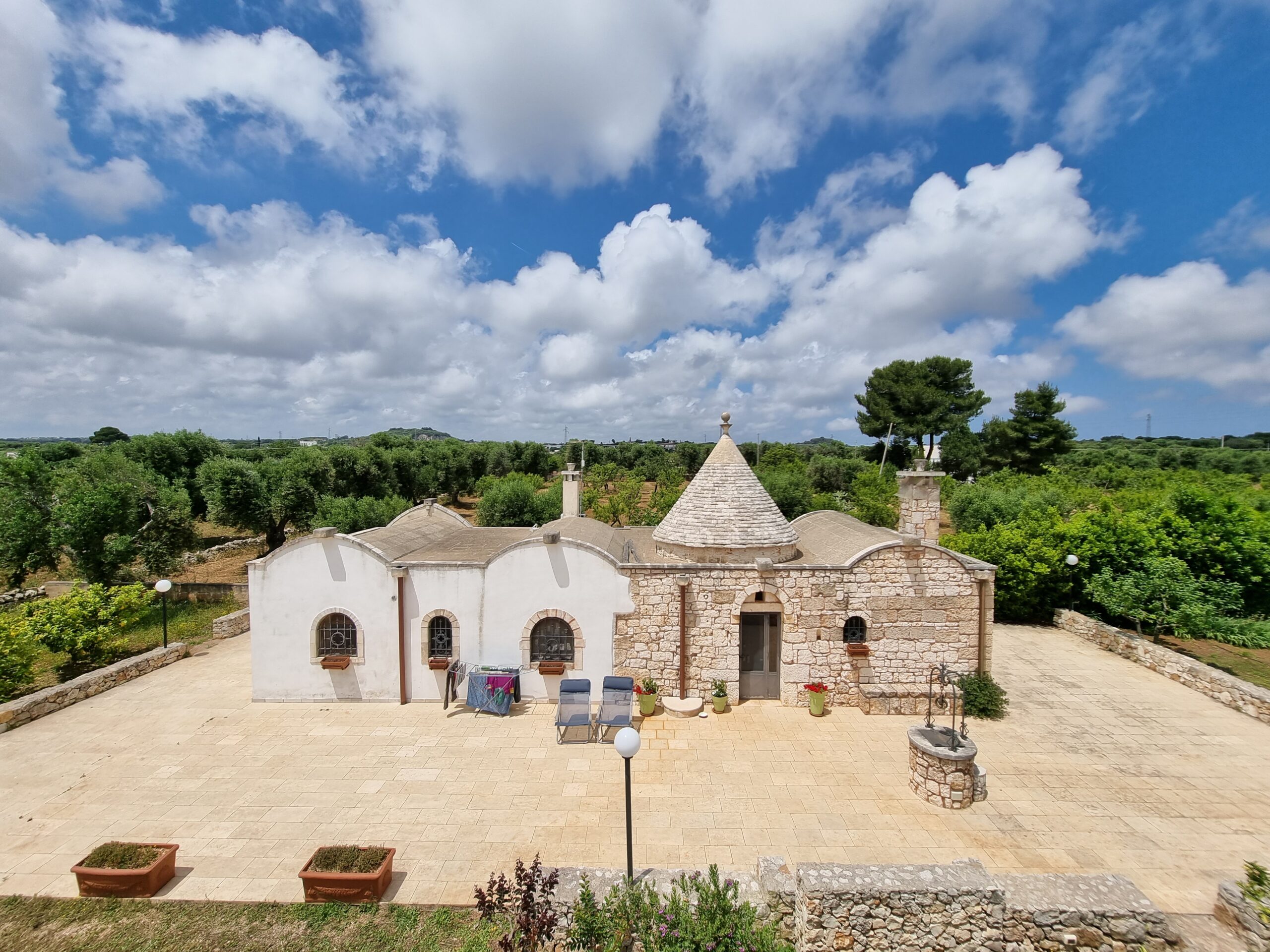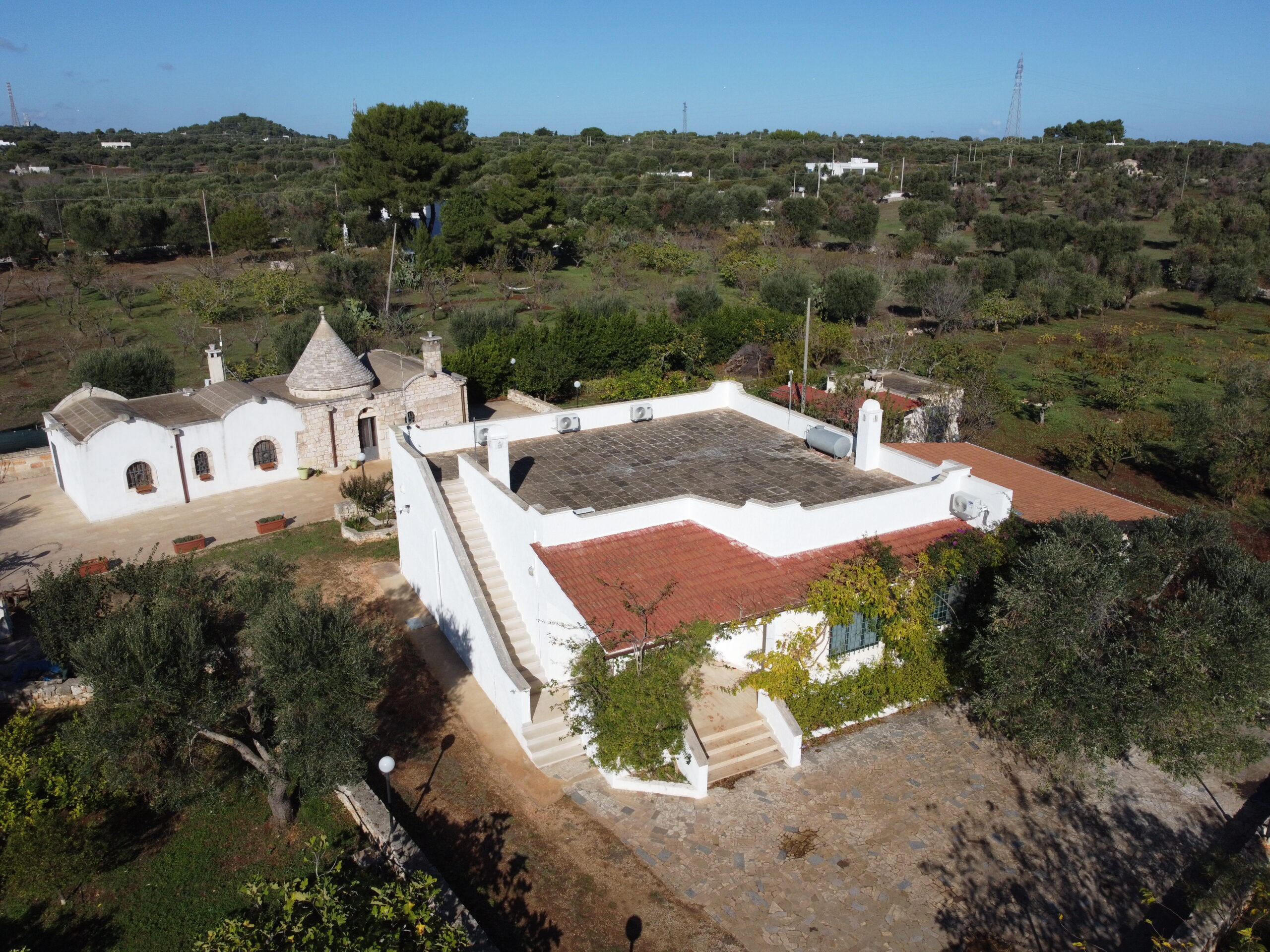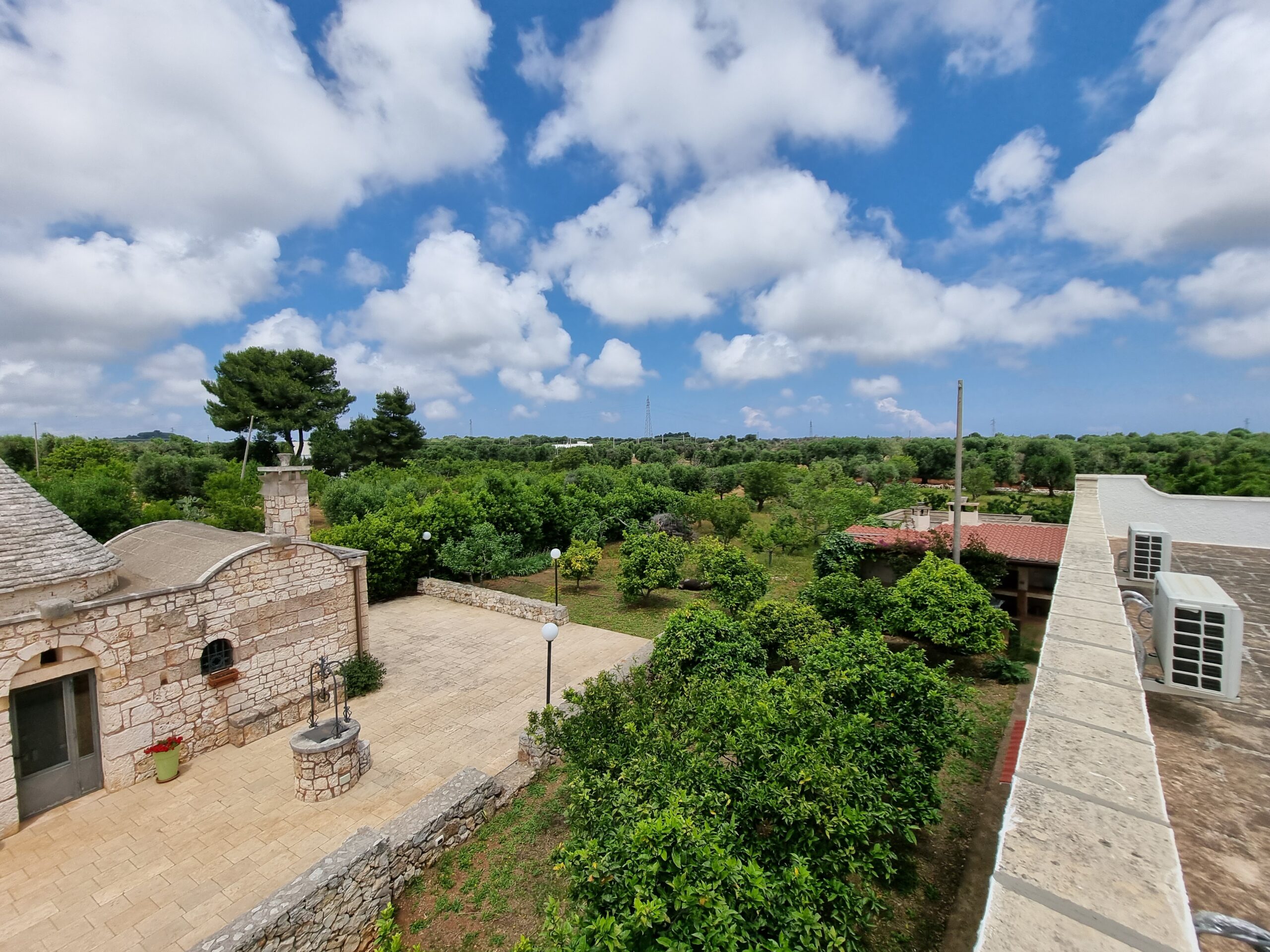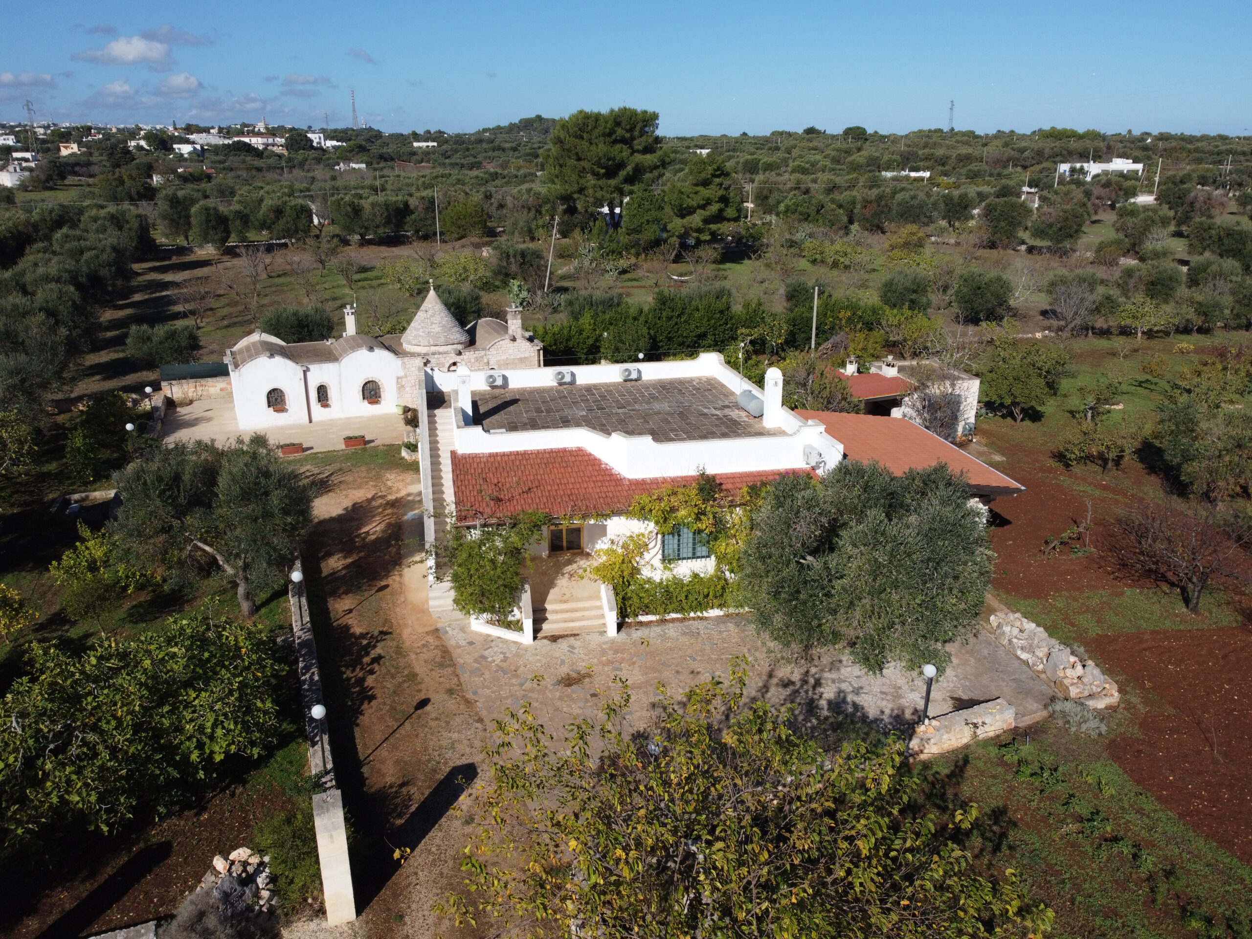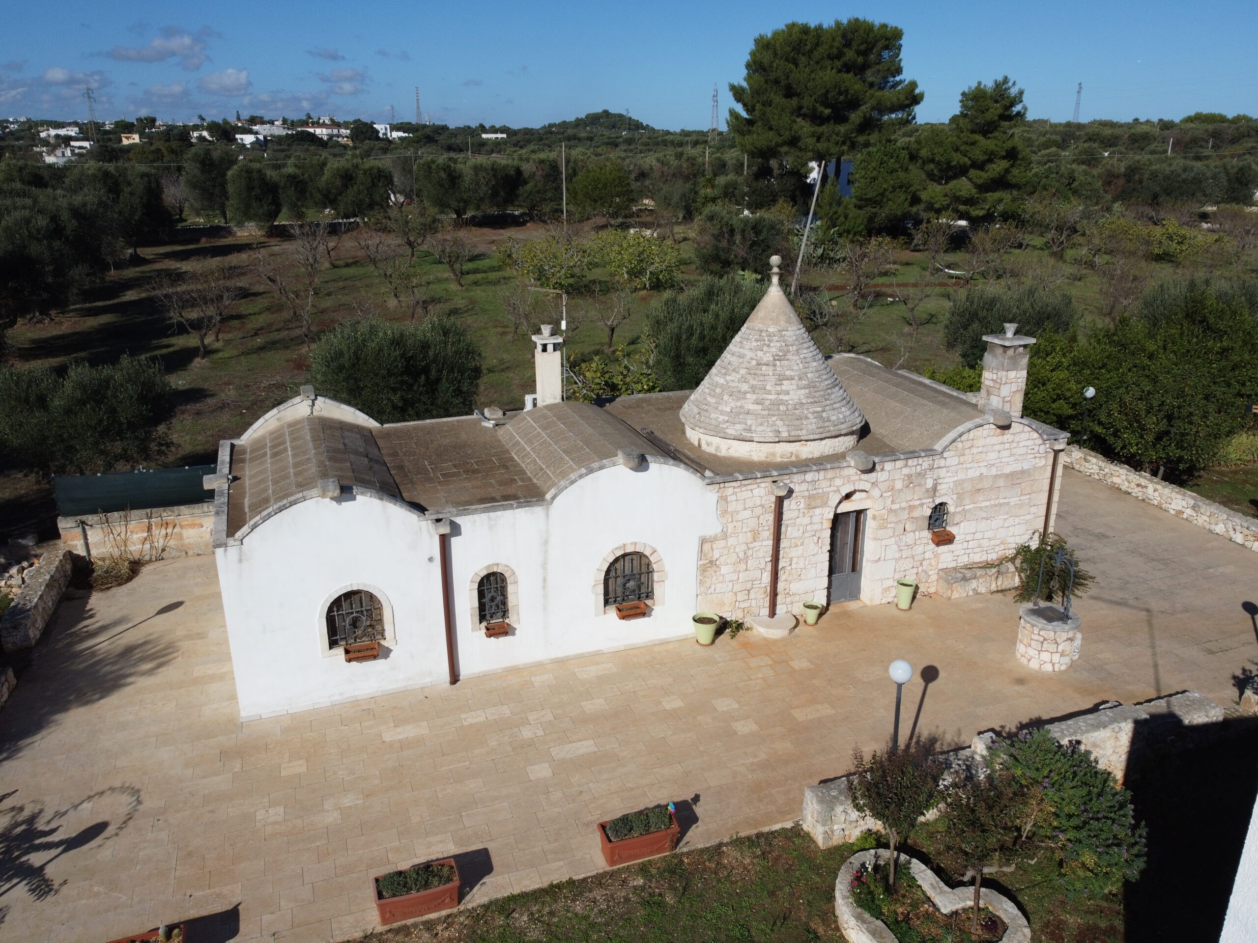 Tutta la proprieta' dispone di vari accessori come impianto allarme totale collegato al pronto intervento, impianto di irrigazione per orto e uliveto, impianto illuminazione esterna lungo il viale, impianto wi-fi, impianto Tv in tutte le costruzioni,impianto aria condizionata inverter nel trullo e nell'abitazione piu' grande, fossa imhoff regolare per tutte le abitazioni. Vano sottoscala con le varie centraline, una doccia estevia esterna indipendente, pozzo artesiano a 180 m di profondita' regolarmente denunciato e un pozzo stagno di 800/900q per la distribuzione di acqua sulle due cas, piu' un pozzo da 200q per la distribuzione dell'acqua nel trullo.