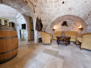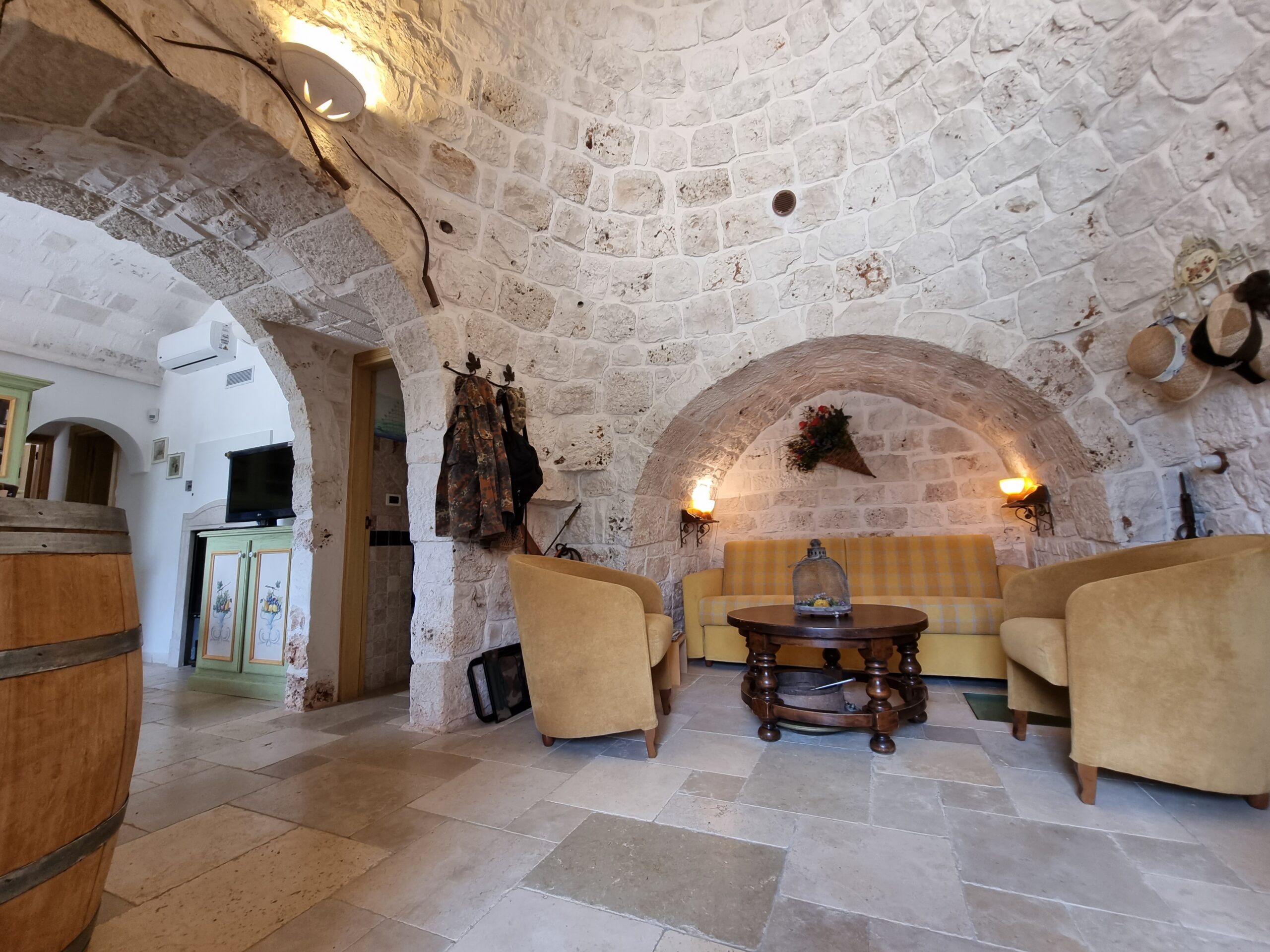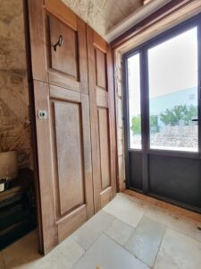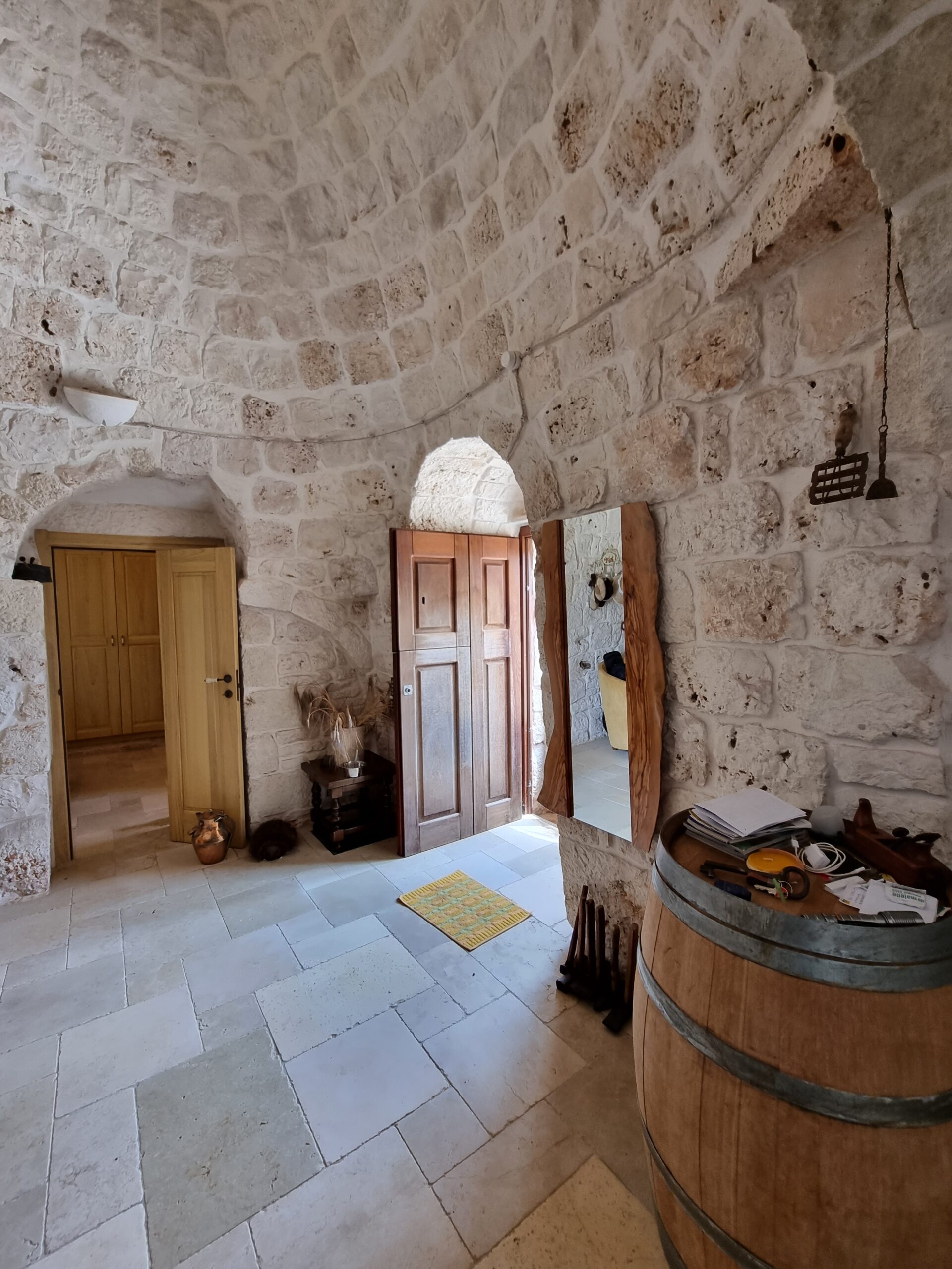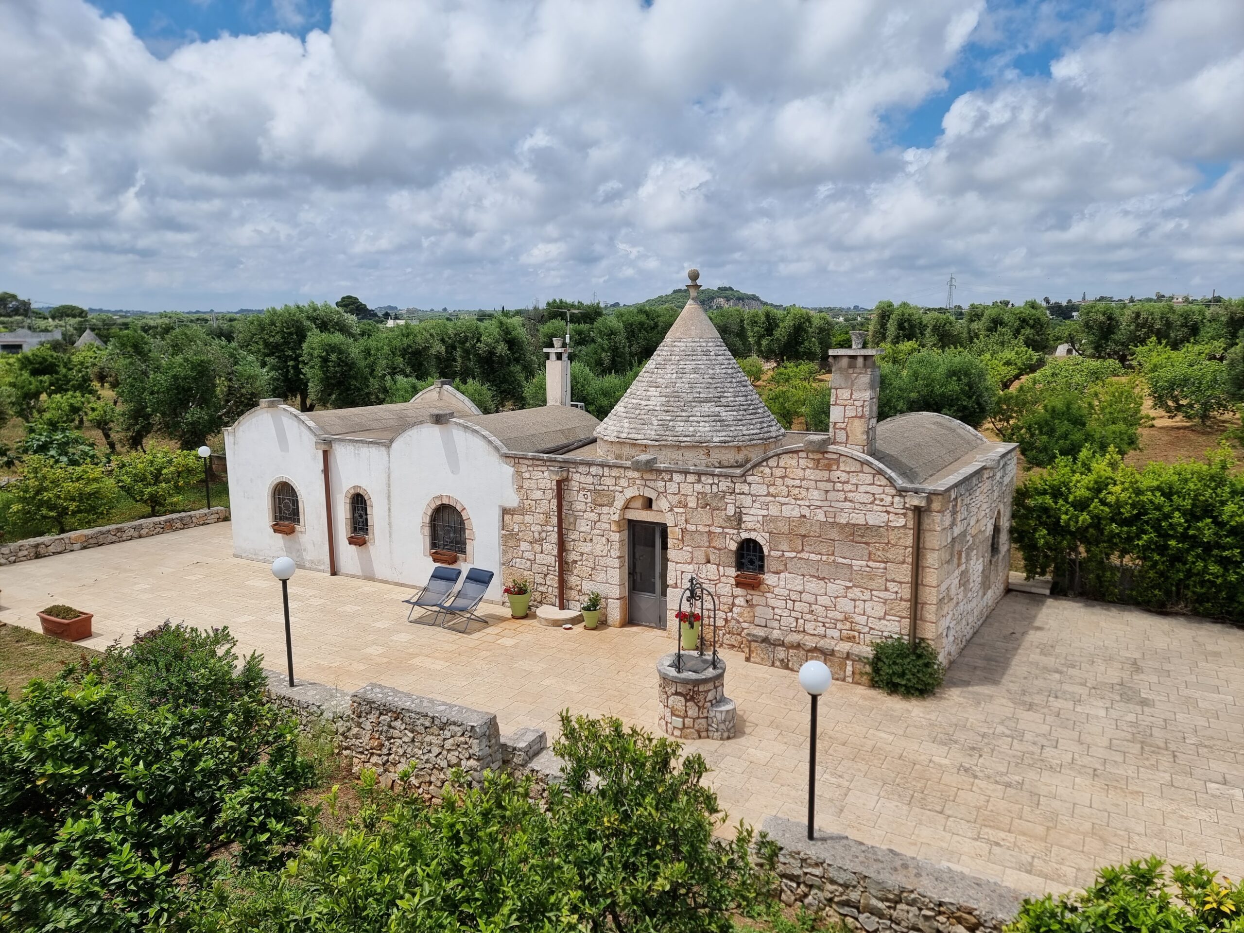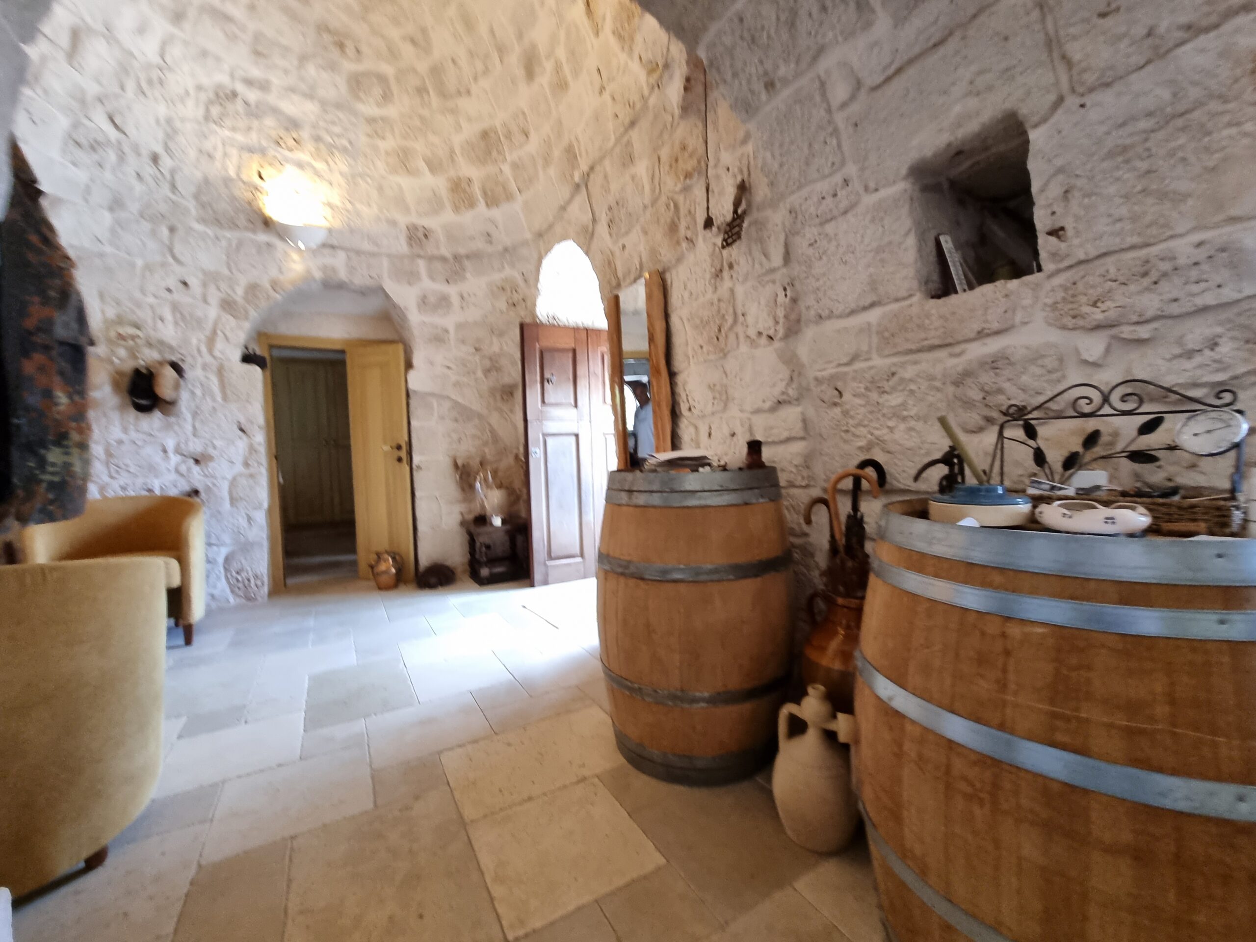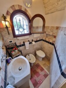Tutta la proprieta' dispone di vari accessori come impianto allarme totale collegato al pronto intervento, impianto di irrigazione per orto e uliveto, impianto illuminazione esterna lungo il viale, impianto wi-fi, impianto Tv in tutte le costruzioni,impianto aria condizionata inverter nel trullo e nell'abitazione piu' grande, fossa imhoff regolare per tutte le abitazioni. Vano sottoscala con le varie centraline, una doccia estevia esterna indipendente, pozzo artesiano a 180 m di profondita' regolarmente denunciato e un pozzo stagno di 800/900q per la distribuzione di acqua sulle due cas, piu' un pozzo da 200q per la distribuzione dell'acqua nel trullo.