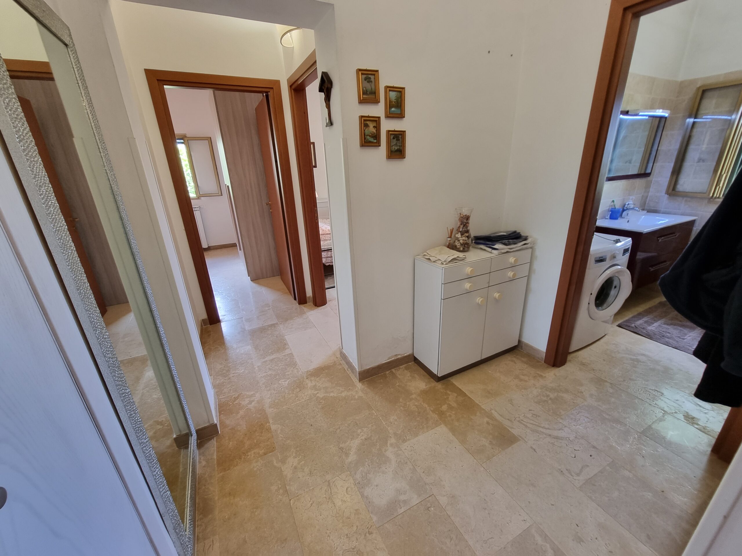 La prima soluzione, la villa, costruita nel 1980 e' completamente ristrutturata ed e' composta da 2 appartamenti, il primo dispone di una bella veranda che fa da ingresso al salone con angolo cottura, una camera matrimoniale e un bagno con doccia, mentre il secondo e' composto da da un altro salone, cucinino, disimpegno, 2 camere matrimoniali, bagno con doccia e altra veranda in legno.