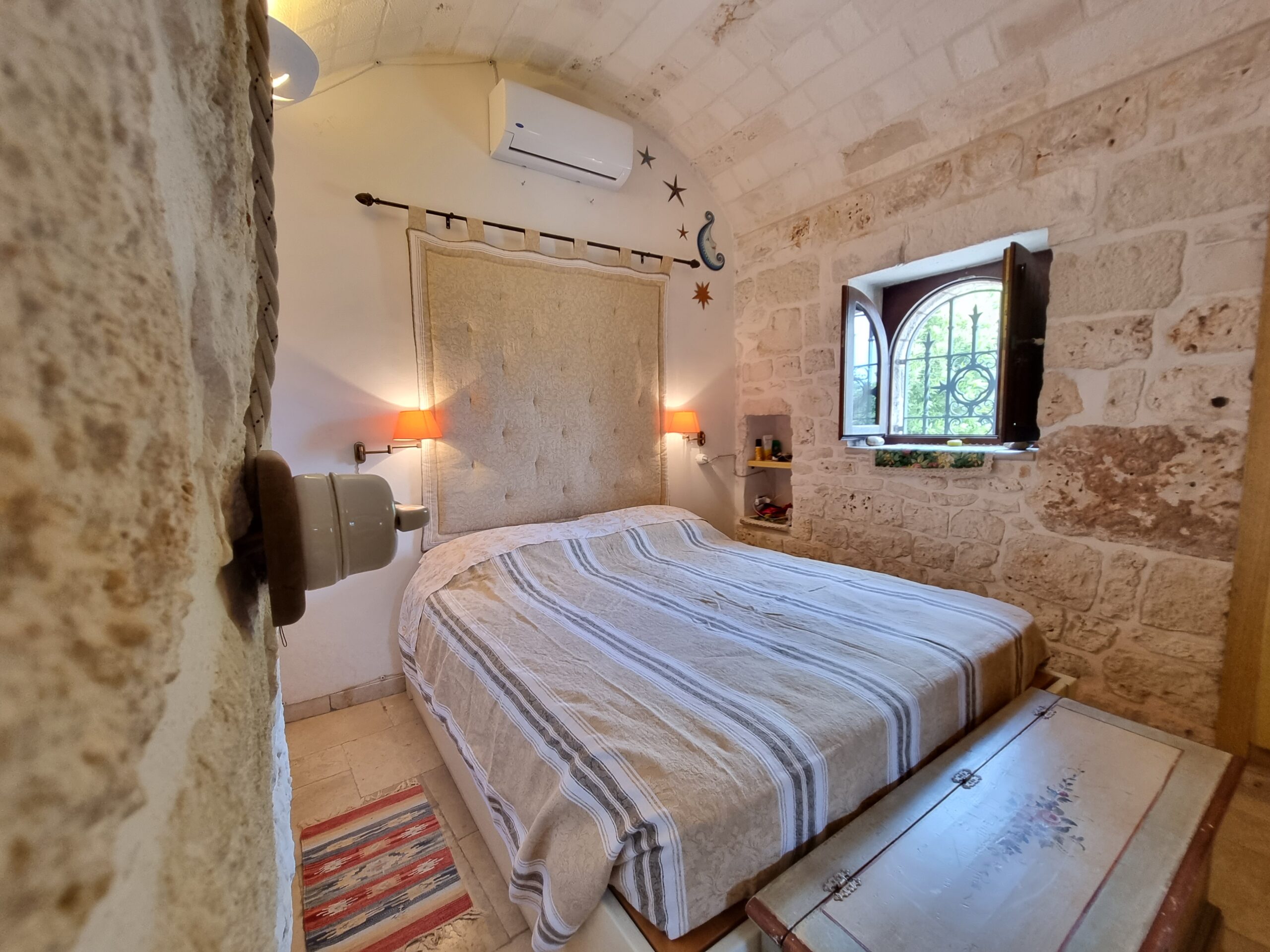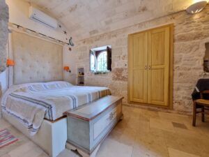 La seconda soluzione e' un bellissimo trullo del 1800 con lamia, finemente ristrutturato ed e' composto da un bellissima sala trullo, una cucina con camino, un cucinino, 2 camere da letto, 2 bagni di cui uno in camera e un ripostiglio - lavanderia. Vi e' anche un'altra costruzione dove vi e' un grande camino, un forno a legna e un'officina.