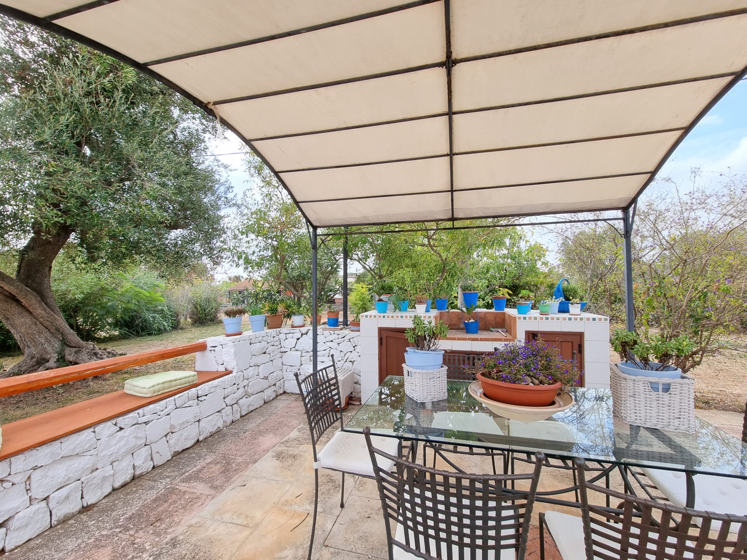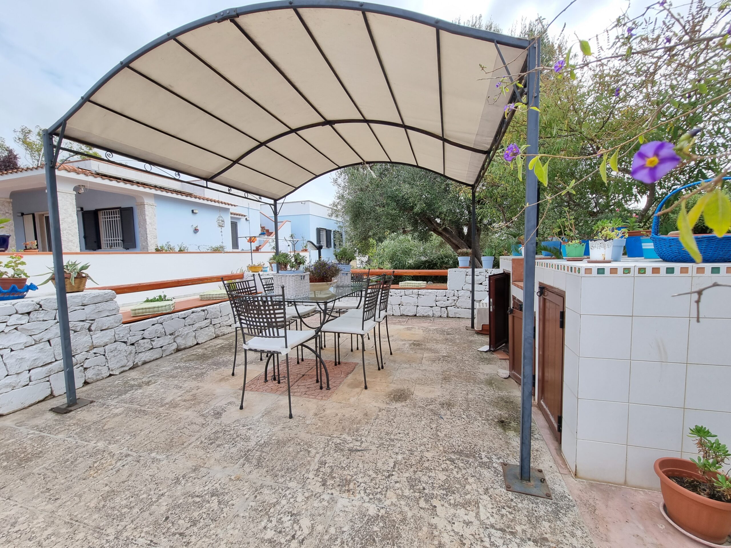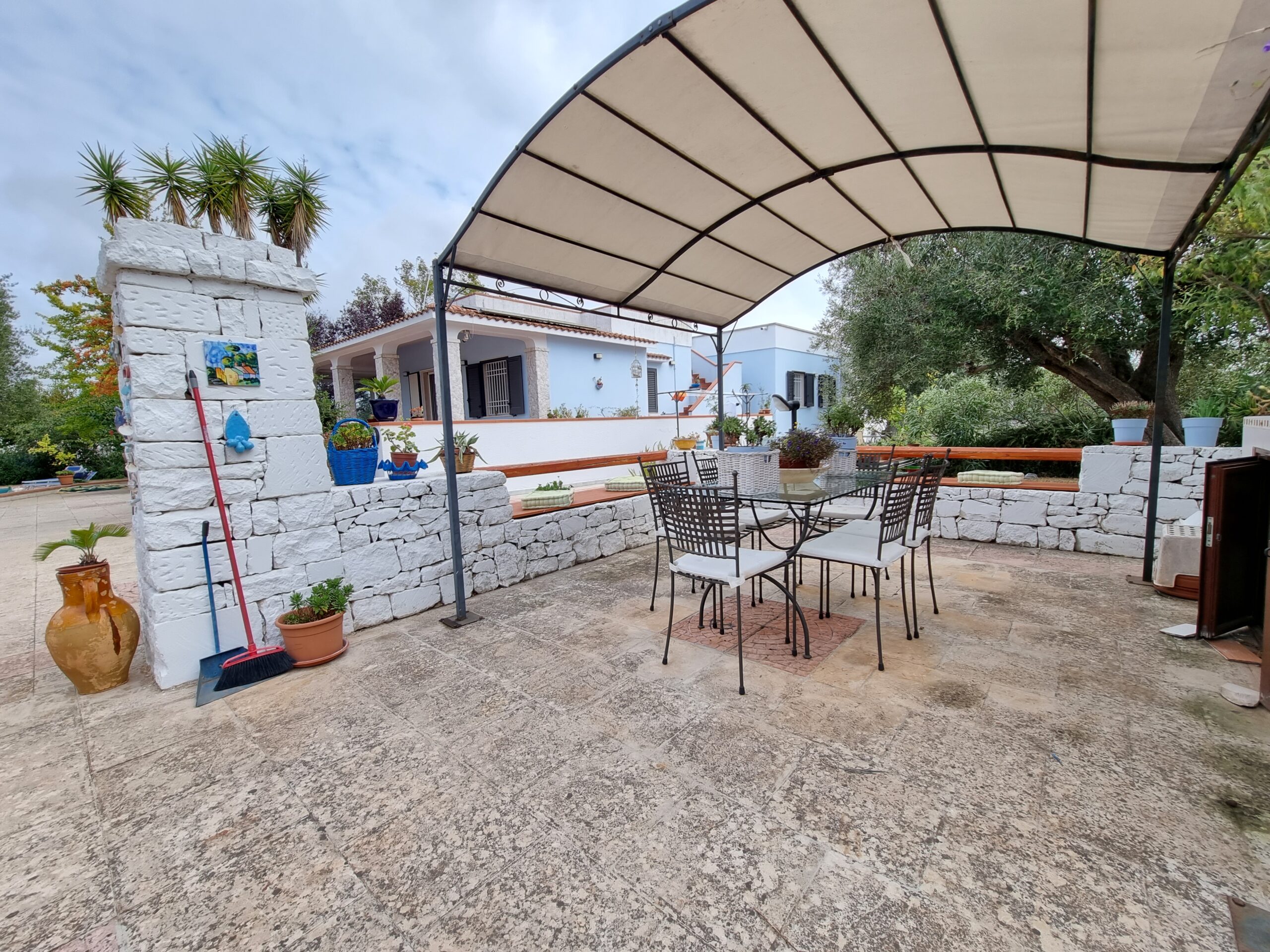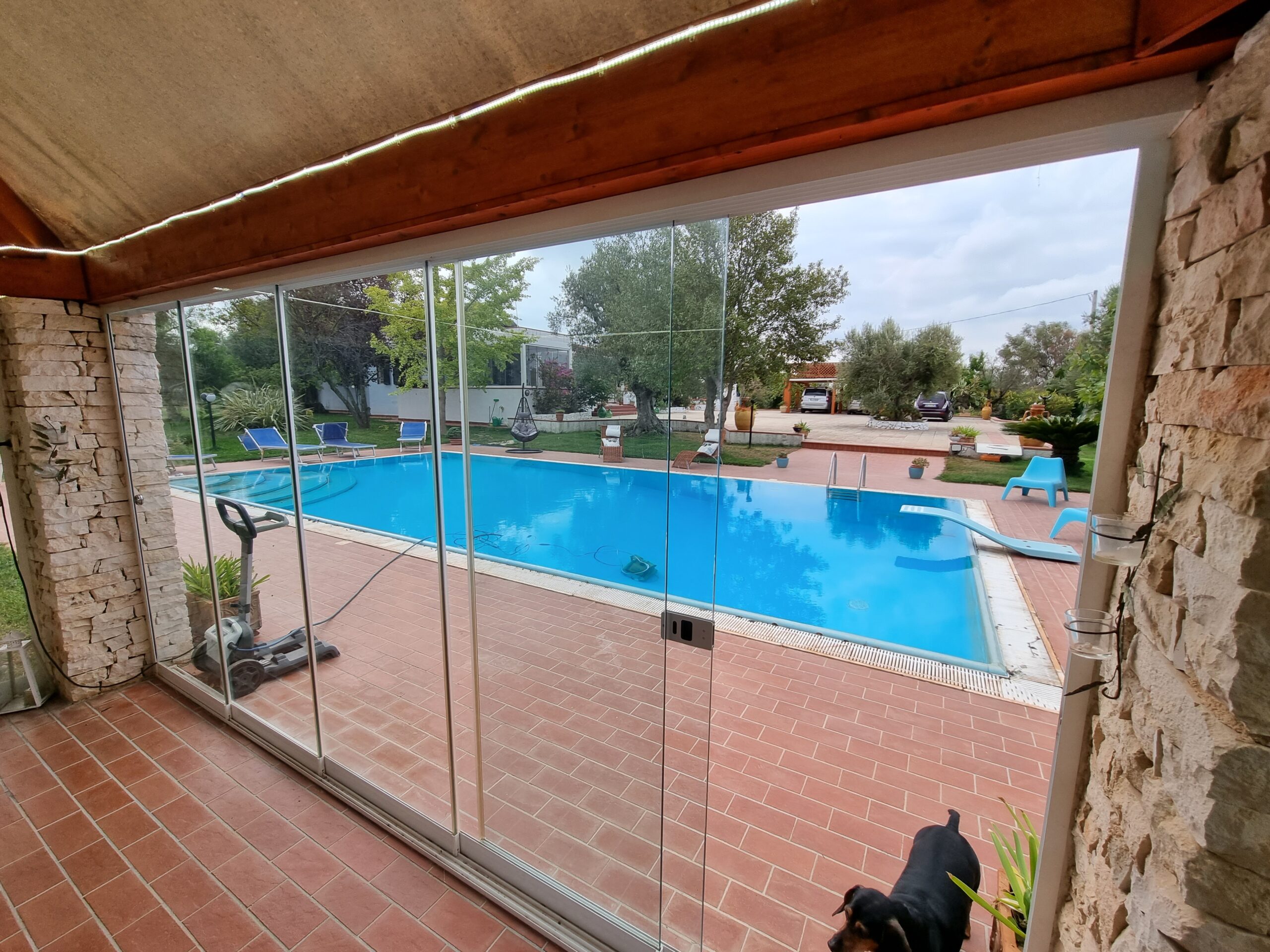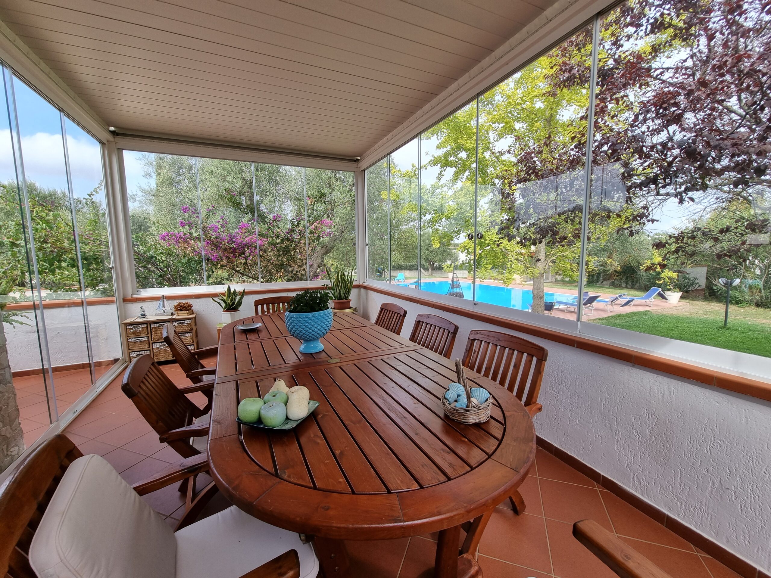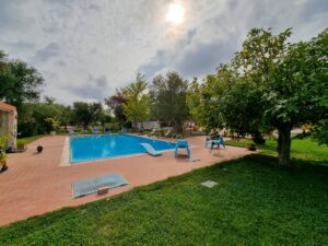 La proprieta' e' composta da un'abitazione di 140 mq con 2 verande di cui una sul lato ingresso di 16 mq e una nella parte posteriore dell'abitazione di 29 mq, vi sono 2 bei gazebo di cui uno con vetri scorrevoli e tetto apribile di 29 mq e uno solo con vetri scorrevoli di 20 mq sul lato della piscina, un ampio piazzale pavimentato, una postazione parcheggio con tettoia e una piscina .