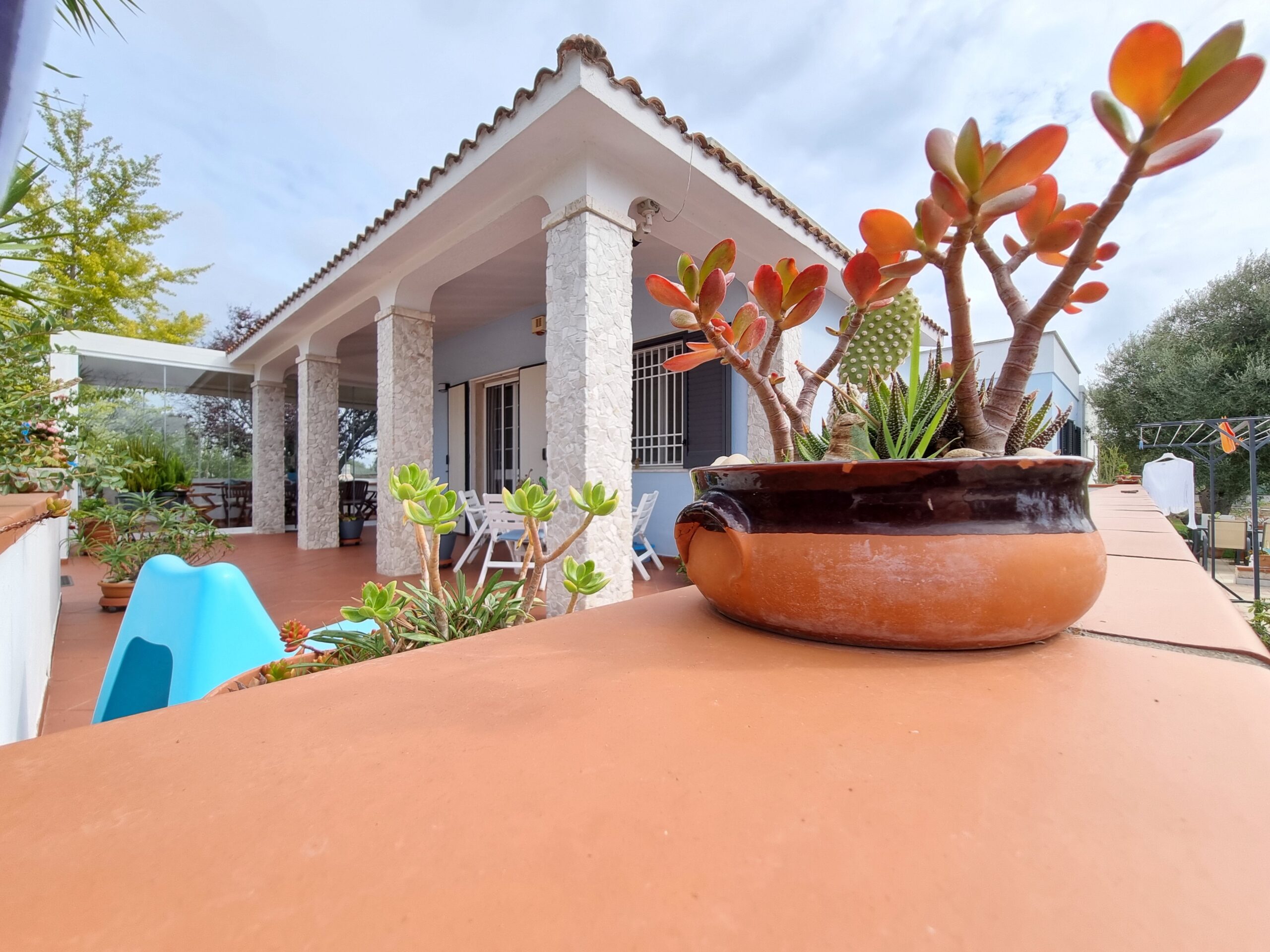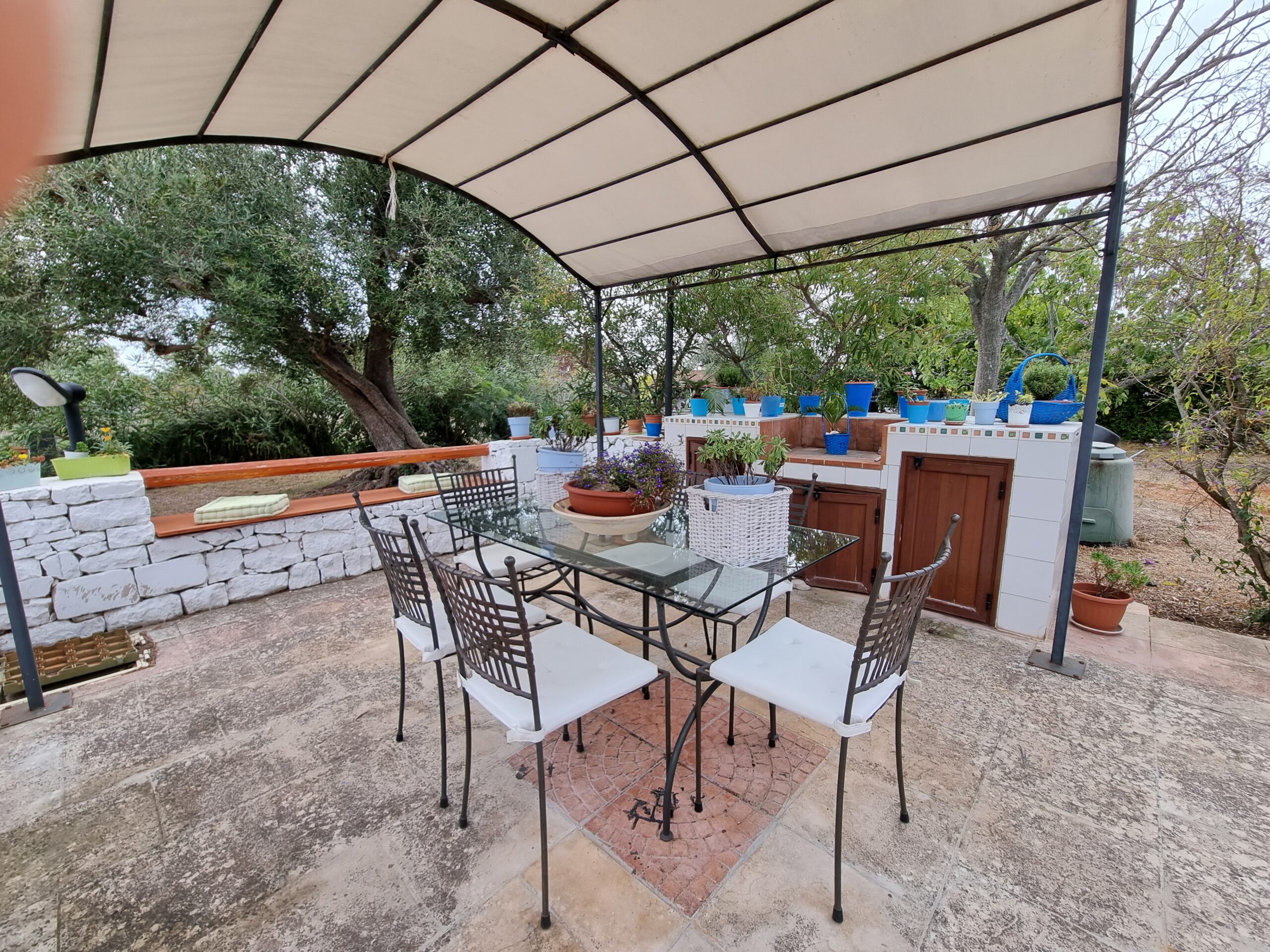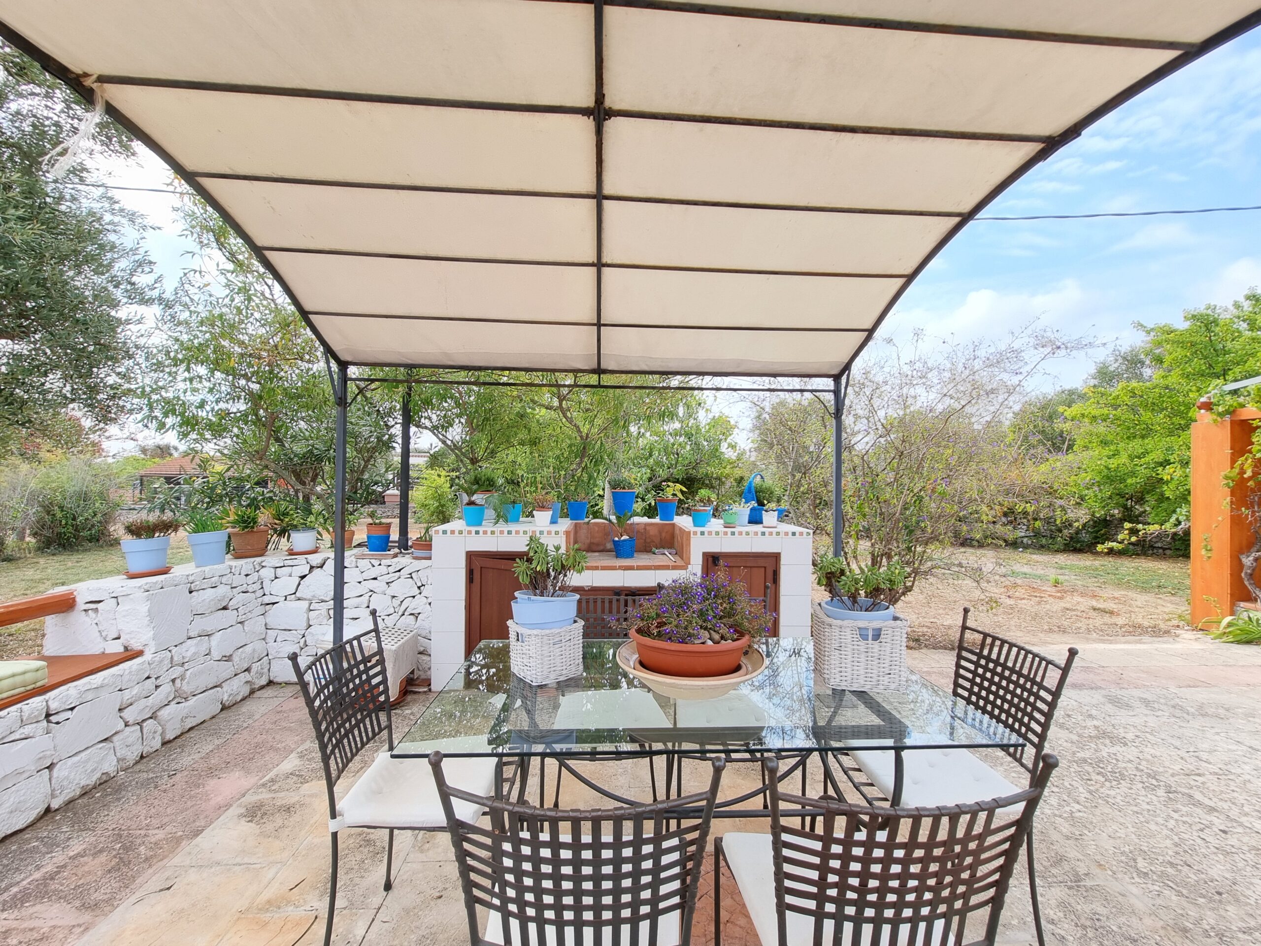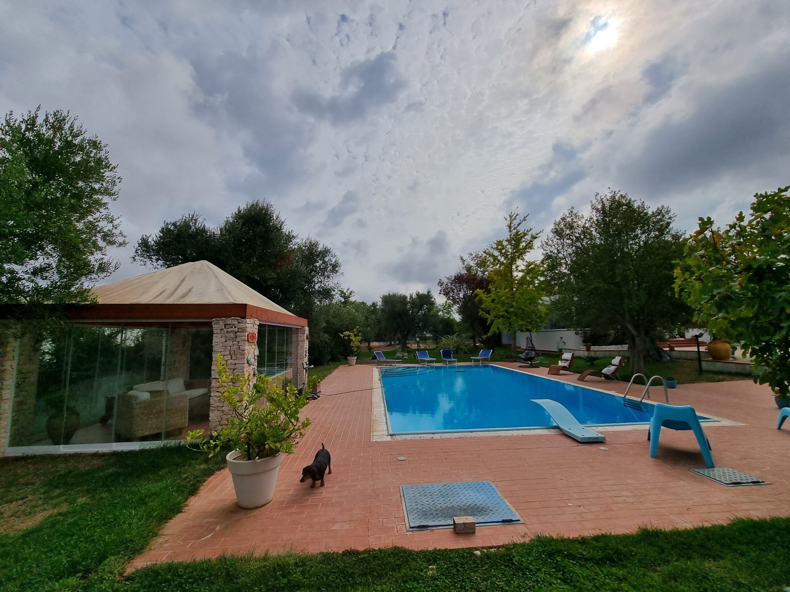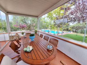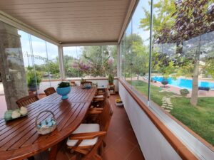 La proprieta' e' composta da un'abitazione di 140 mq con 2 verande di cui una sul lato ingresso di 16 mq e una nella parte posteriore dell'abitazione di 29 mq, vi sono 2 bei gazebo di cui uno con vetri scorrevoli e tetto apribile di 29 mq e uno solo con vetri scorrevoli di 20 mq sul lato della piscina, un ampio piazzale pavimentato, una postazione parcheggio con tettoia e una piscina .