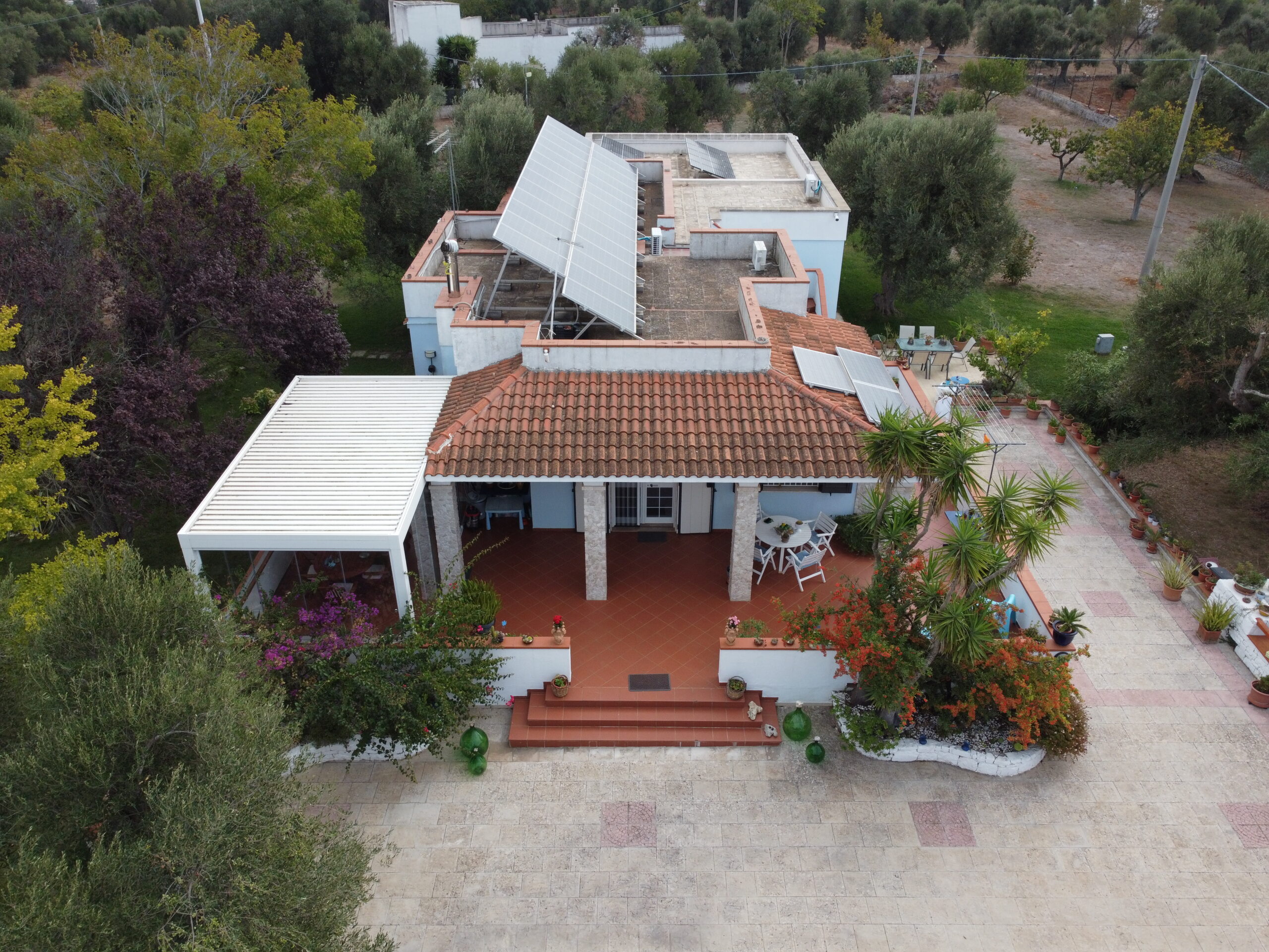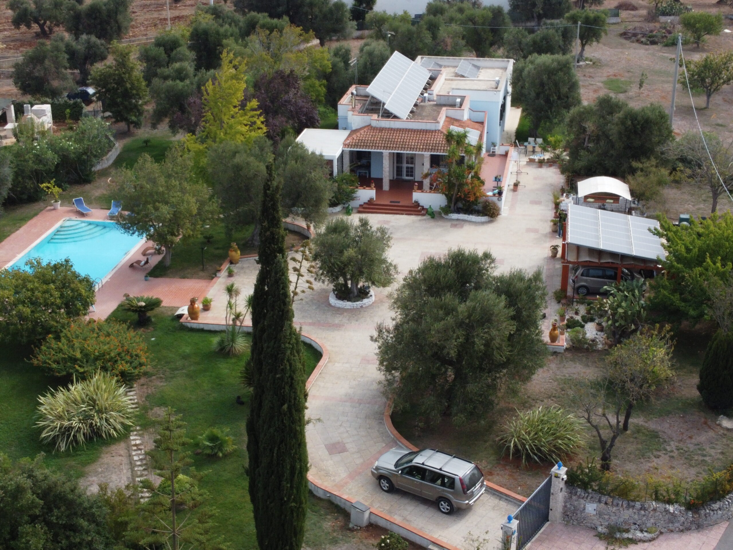 L'intera proprieta' dispone di impianto di riscaldamento a pellet, impianto di riscaldamento a gas con bombolone, impianto di condizionatori inverter, impianto fotovoltaico con batteria di accumulo energia , impianto di allarme su finestre e porte, impianto telecamere per esterno, impianto di irrigazione, impianto addolcitore acqua, impianto illuminazione esterna e prato, vi e' un pozzo artesiano (con profondita' di 270 metri), cisterna di accumulo acqua, n 2 tagliaerba automatici per prato, n 2 robottini pulisci fondo piscina e un cancello scorrevole elettrico.