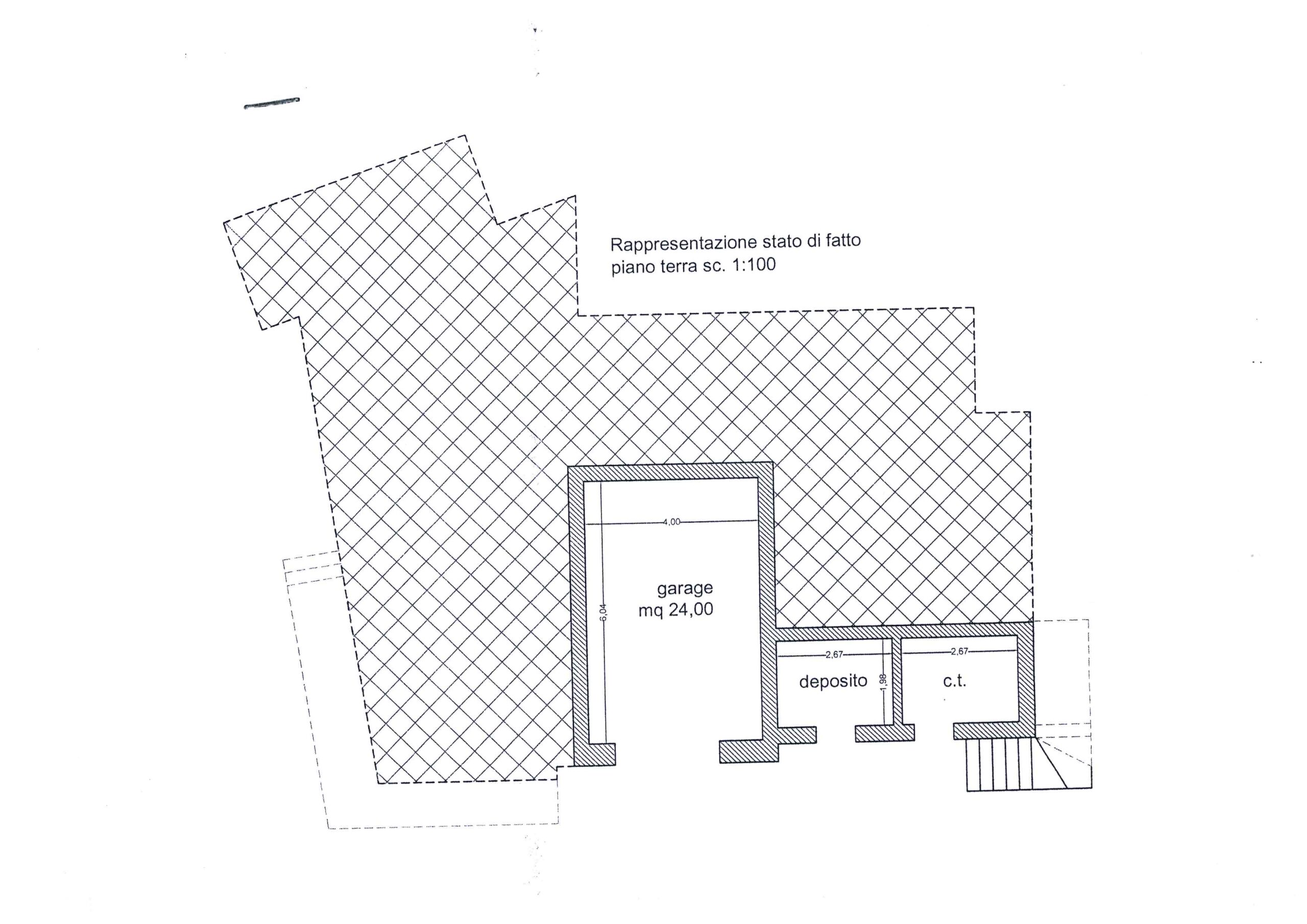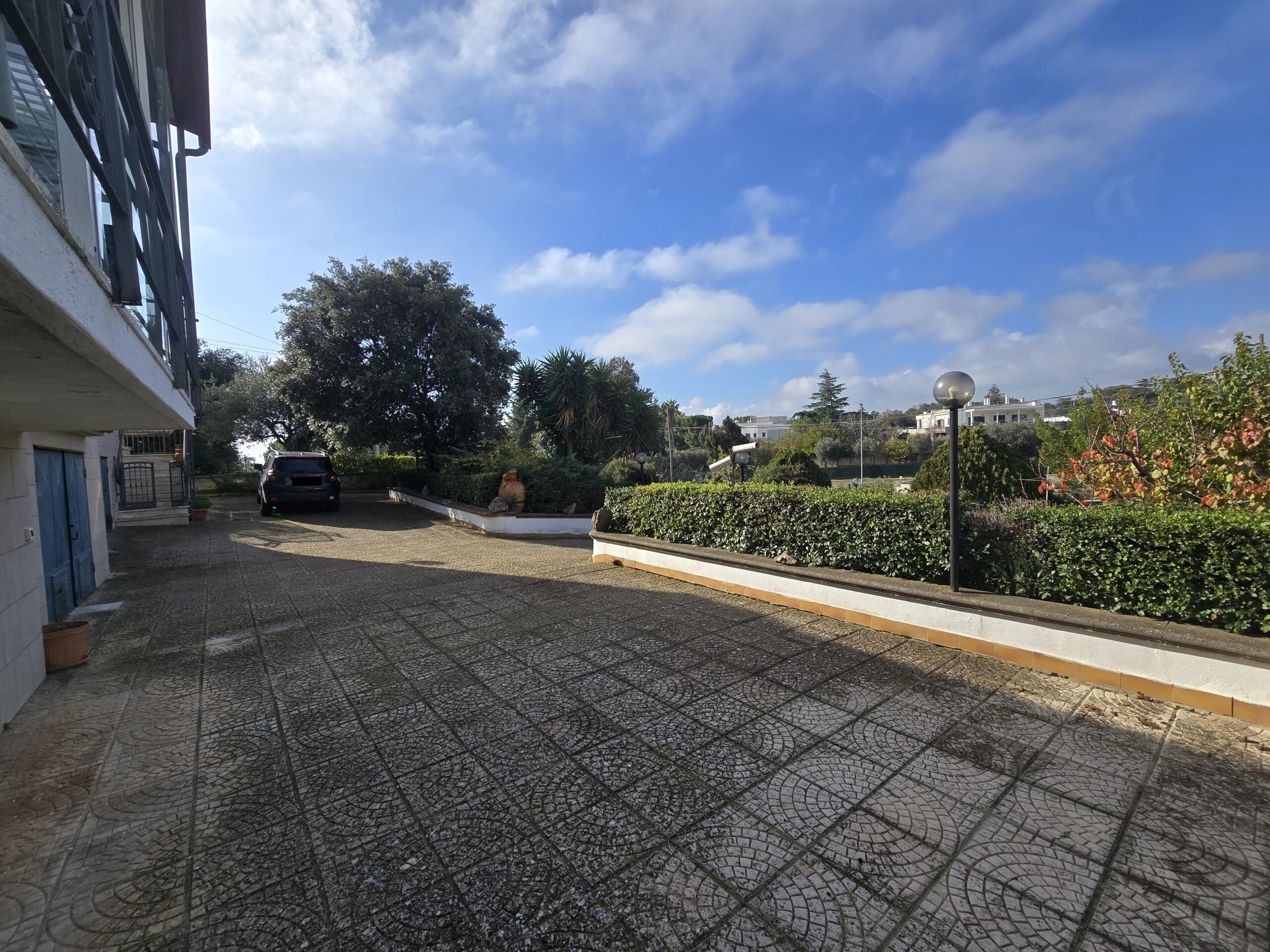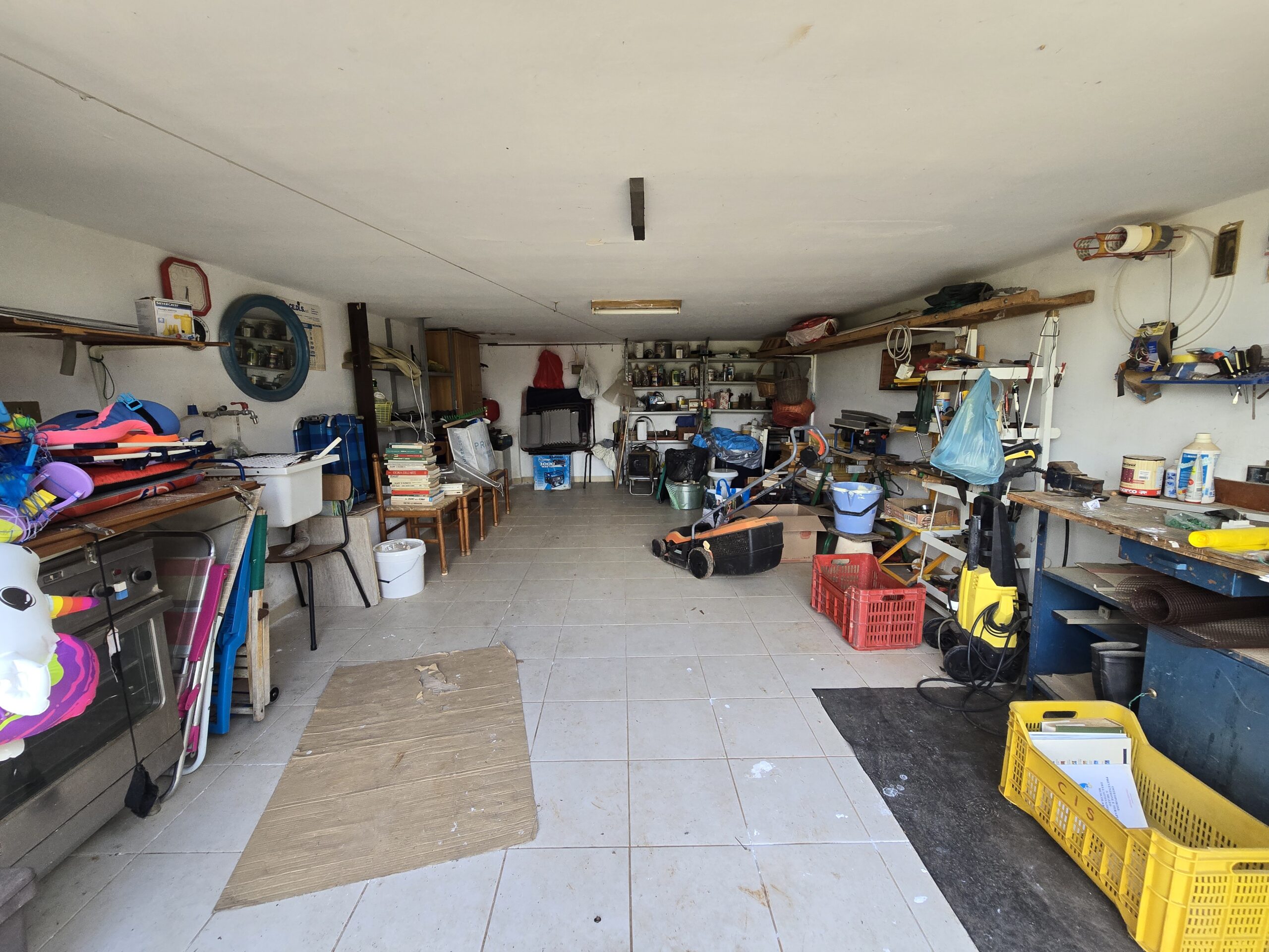 La proprietà e' costituita da un vialetto privato che conduce al piano terra, dove trovano spazio un ampio garage centrale di 26 mq, un vano caldaia e comodo ripostiglio e una generosa cisterna a servizio dell’abitazione.
