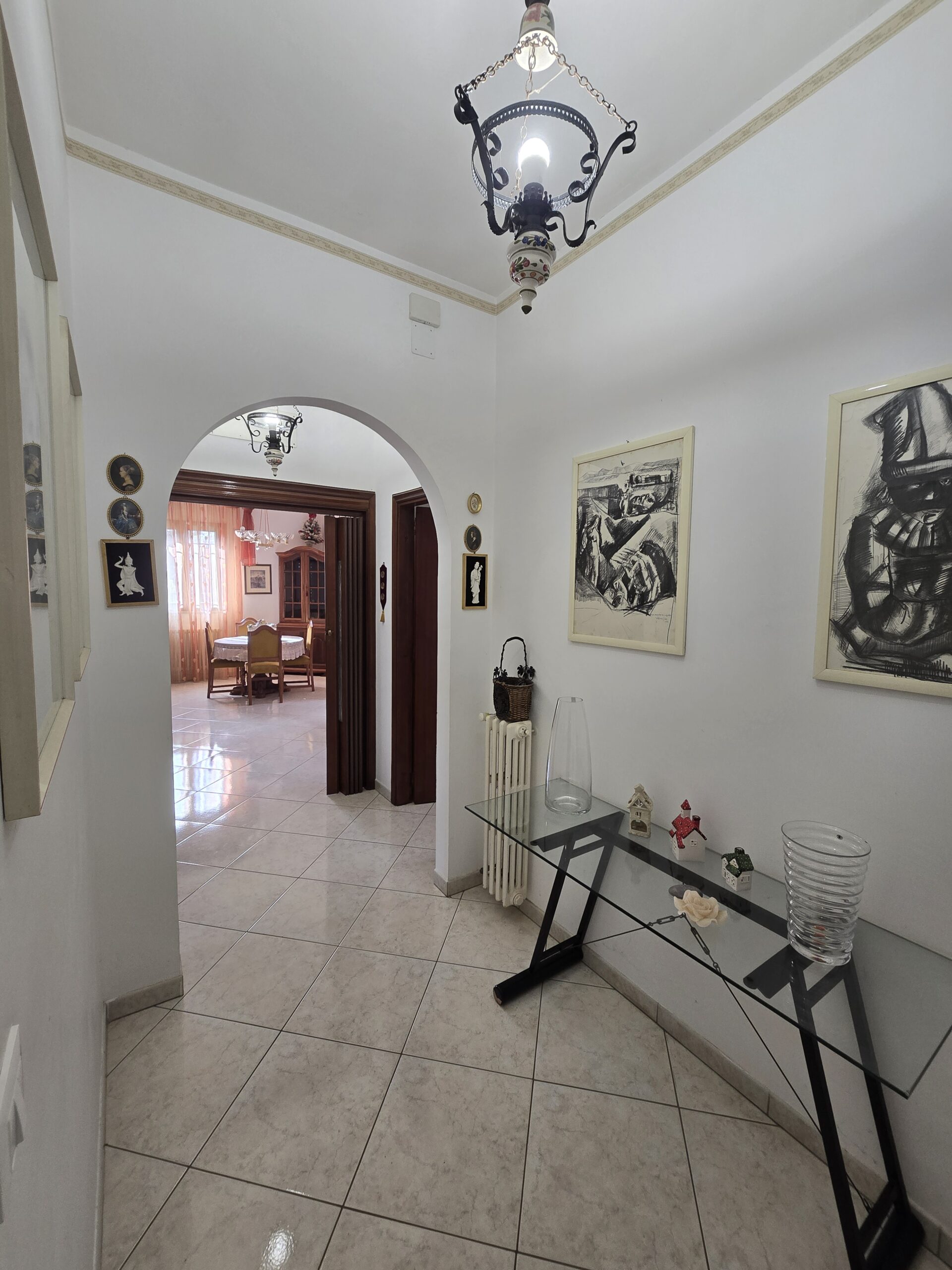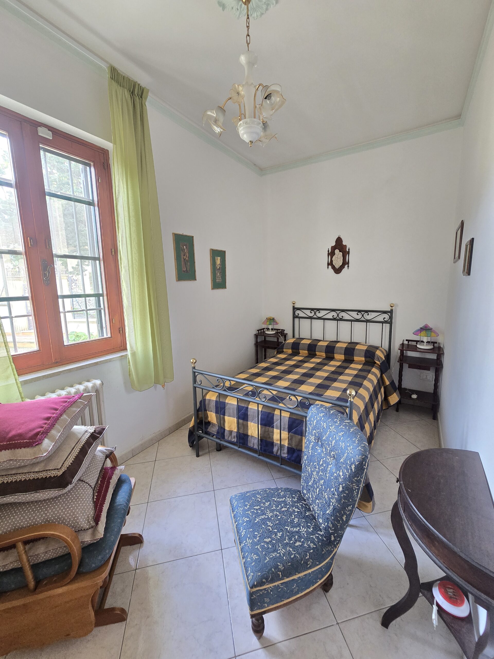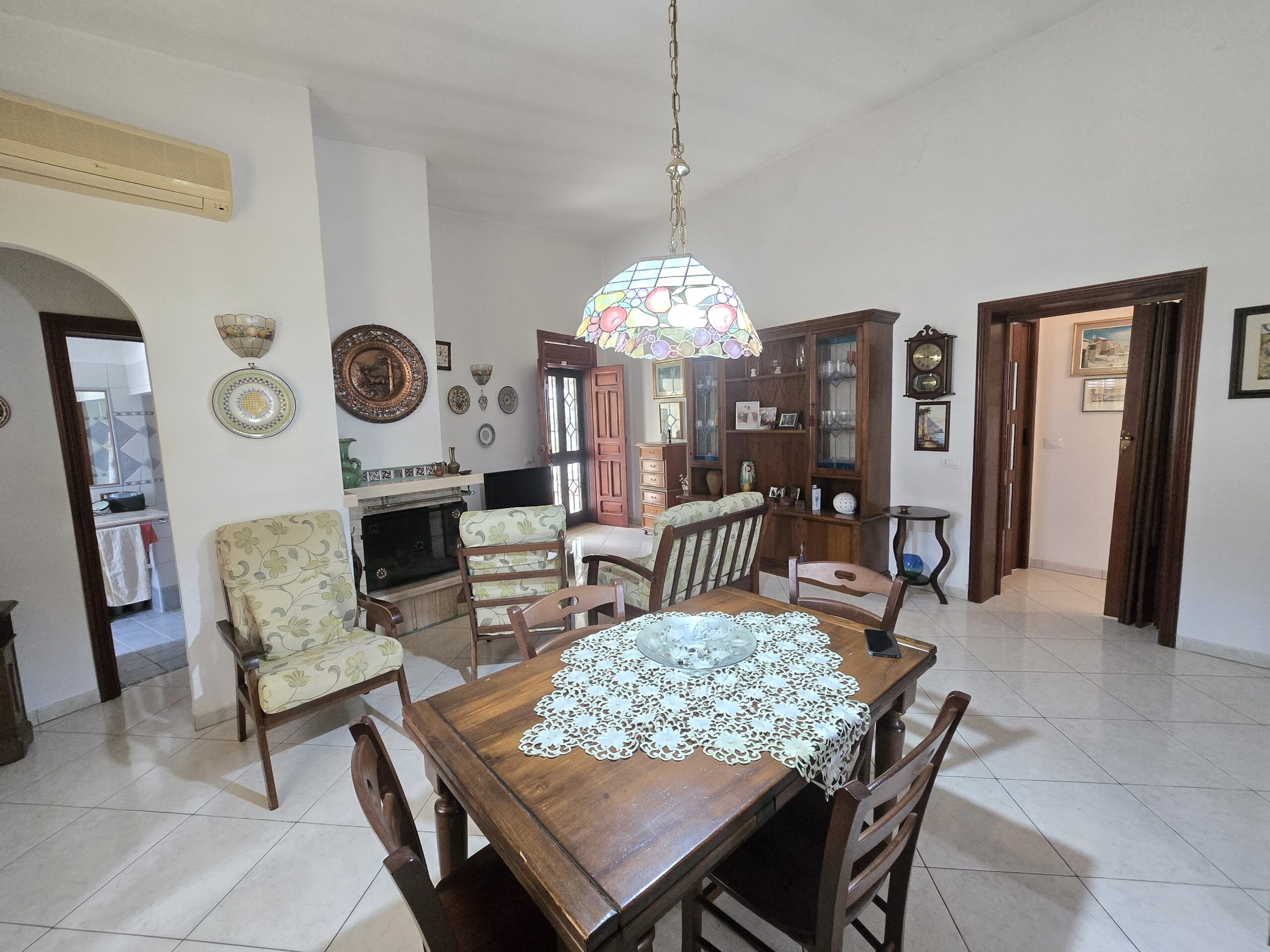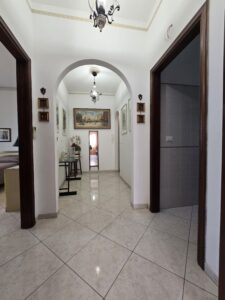 Gli interni, ariosi e ben distribuiti, comprendono un accogliente soggiorno ampio e luminoso, una caamera matrimoniale, due stanzette, perfette come camere ospiti o studio, un elegante corridoio di collegamento, un'mponente salone con camino, ideale per momenti conviviali, ampio bagno finestrato con doccia e vasca, una cucina abitabile con balcone e secondo ingresso ed un secondo bagno.