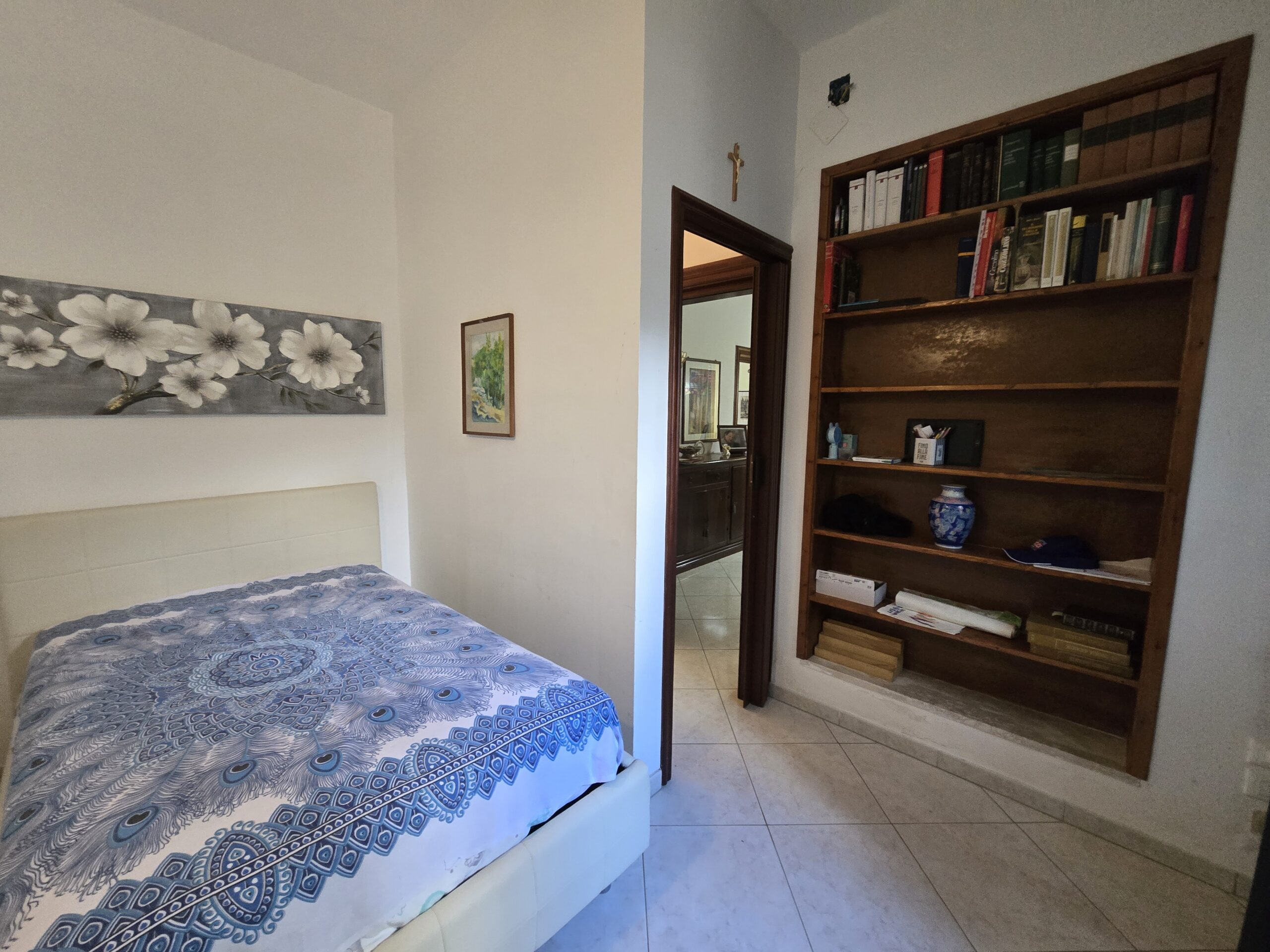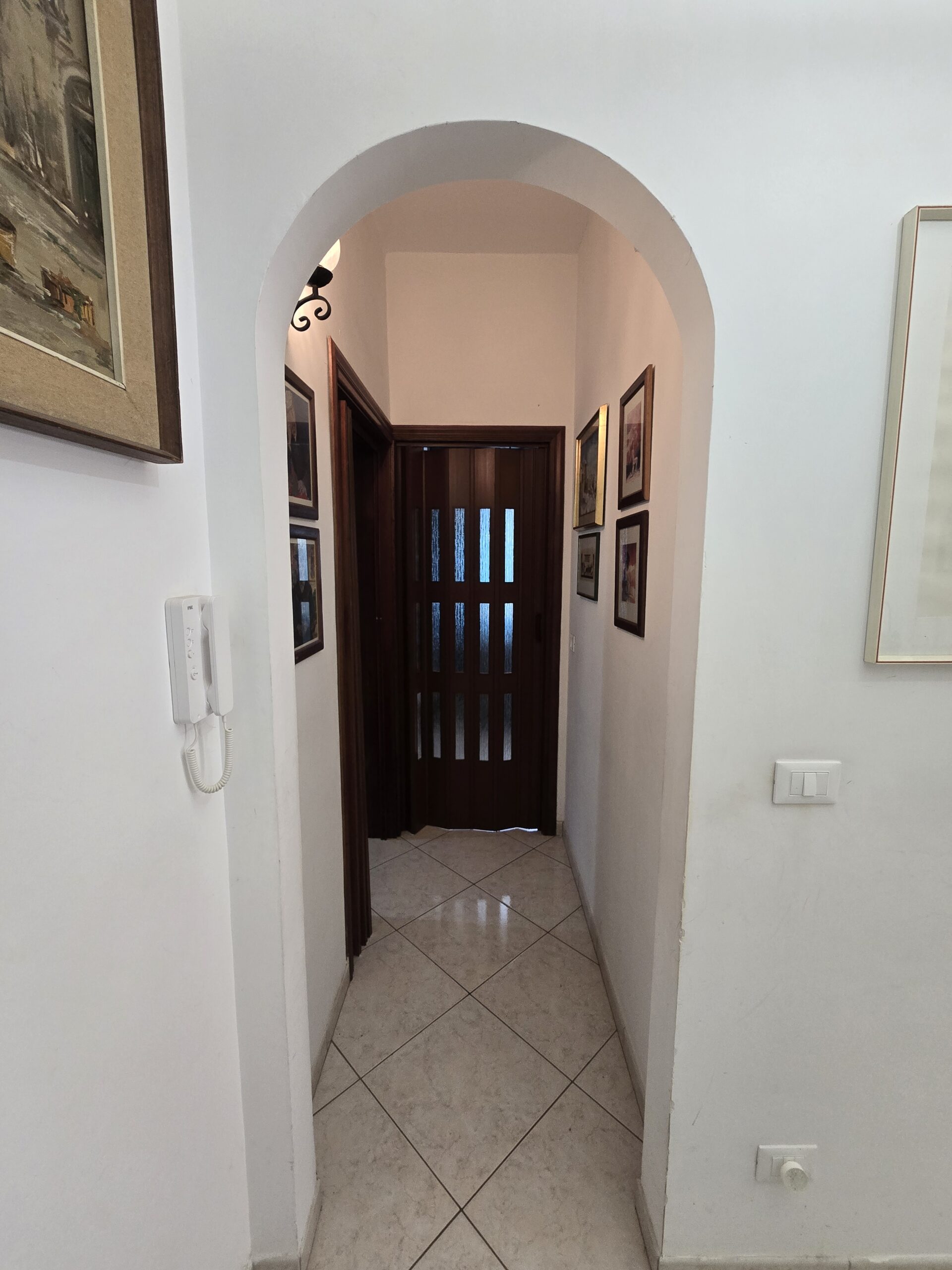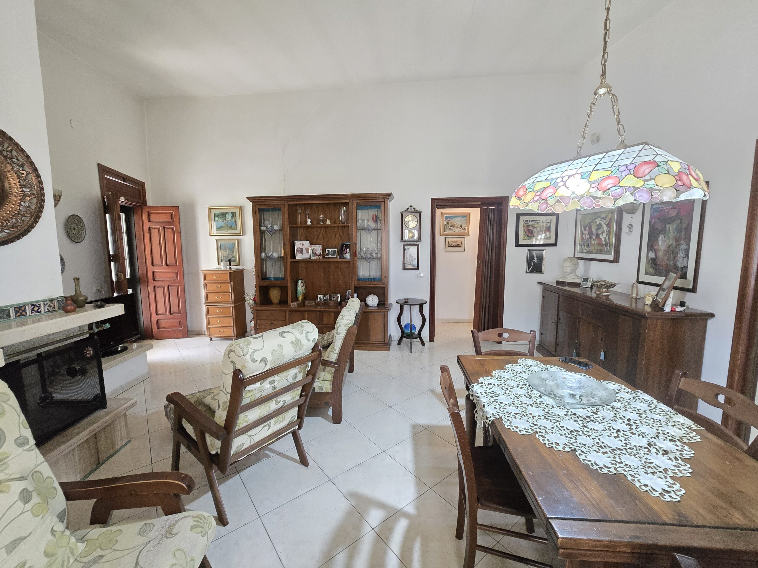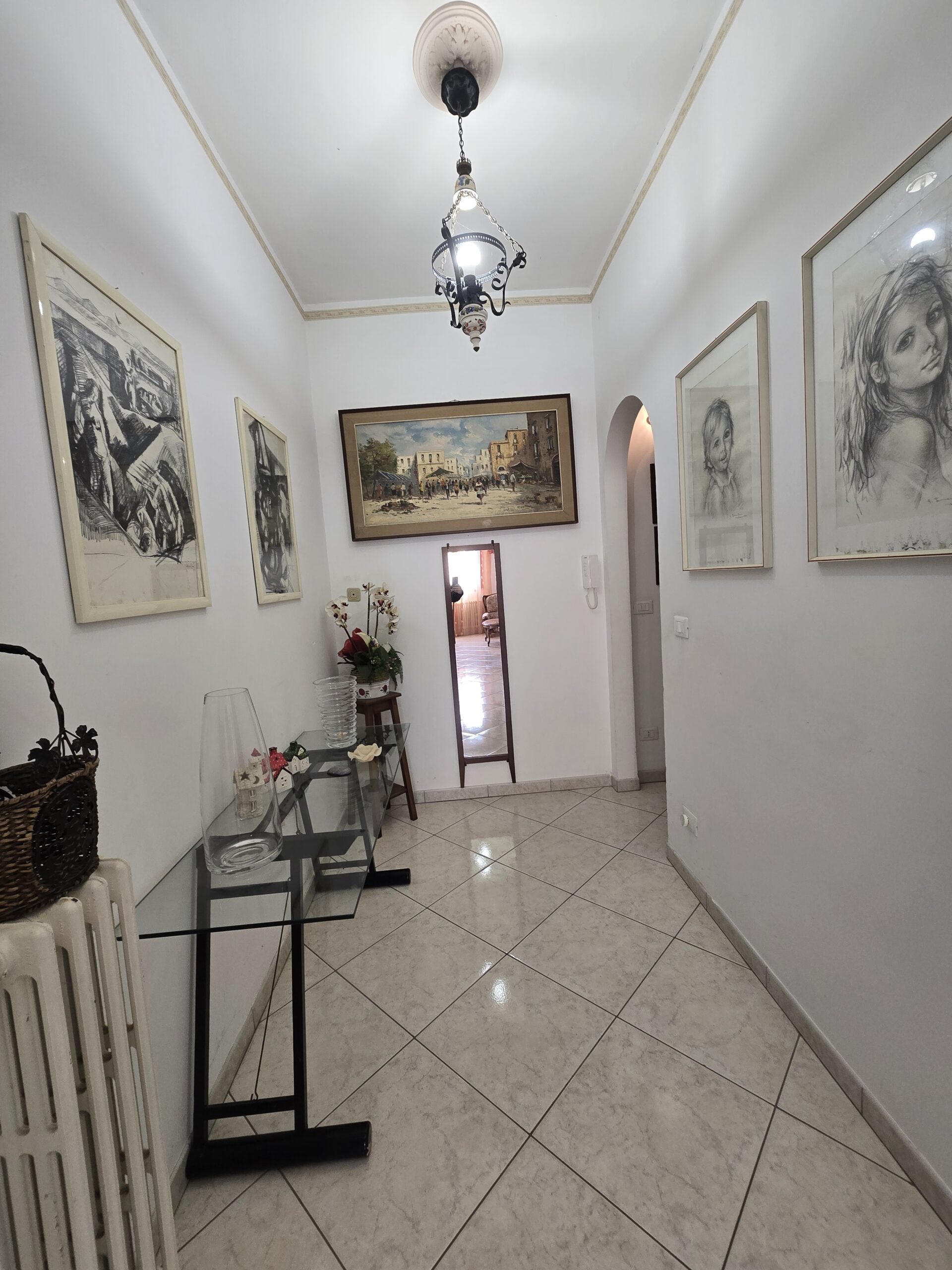 Gli interni, ariosi e ben distribuiti, comprendono un accogliente soggiorno ampio e luminoso, una caamera matrimoniale, due stanzette, perfette come camere ospiti o studio, un elegante corridoio di collegamento, un'mponente salone con camino, ideale per momenti conviviali, ampio bagno finestrato con doccia e vasca, una cucina abitabile con balcone e secondo ingresso ed un secondo bagno.