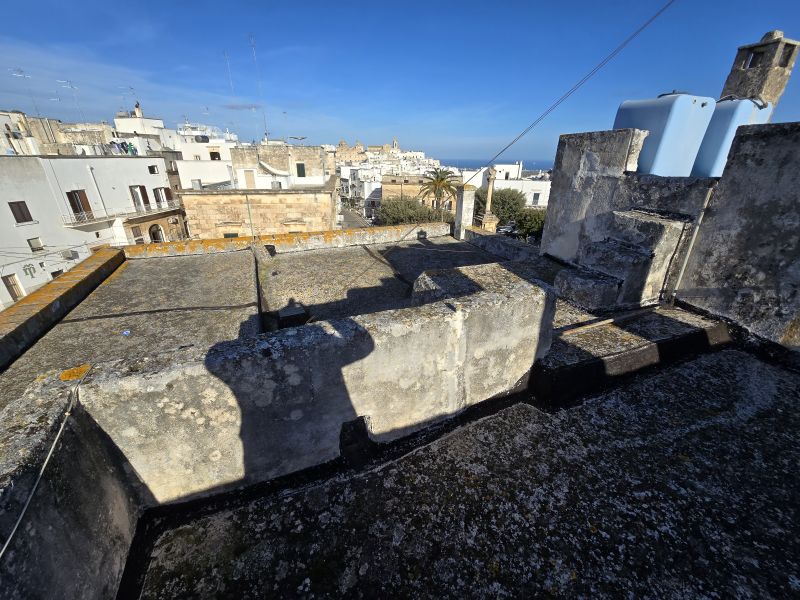 Al secondo livello vi un altro bagno, altro ripostiglio, una bella stanza con camino e l'uscita su una meravigliosa terrazza di circa 150mq con panoramica vista mare e vista sul centro storico.